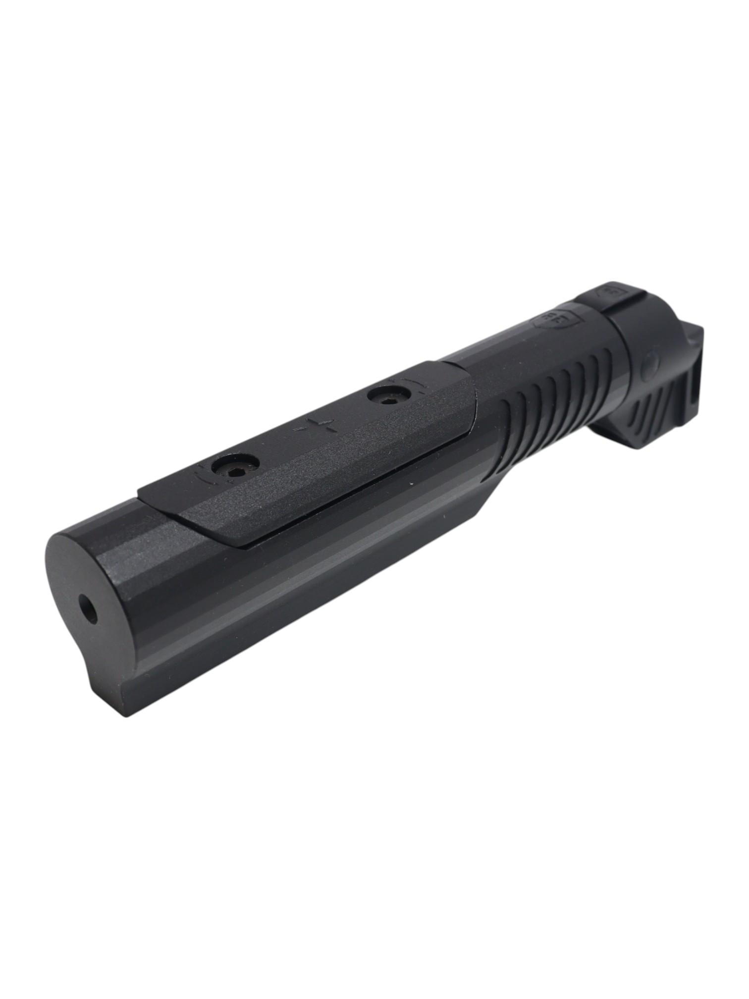 Цельнометаллический переходник повышает общую жесткость системы, улучшает баланс и упрощает управление оружием, сокращая время наведения на цель и повышая устойчивость при удержании.
