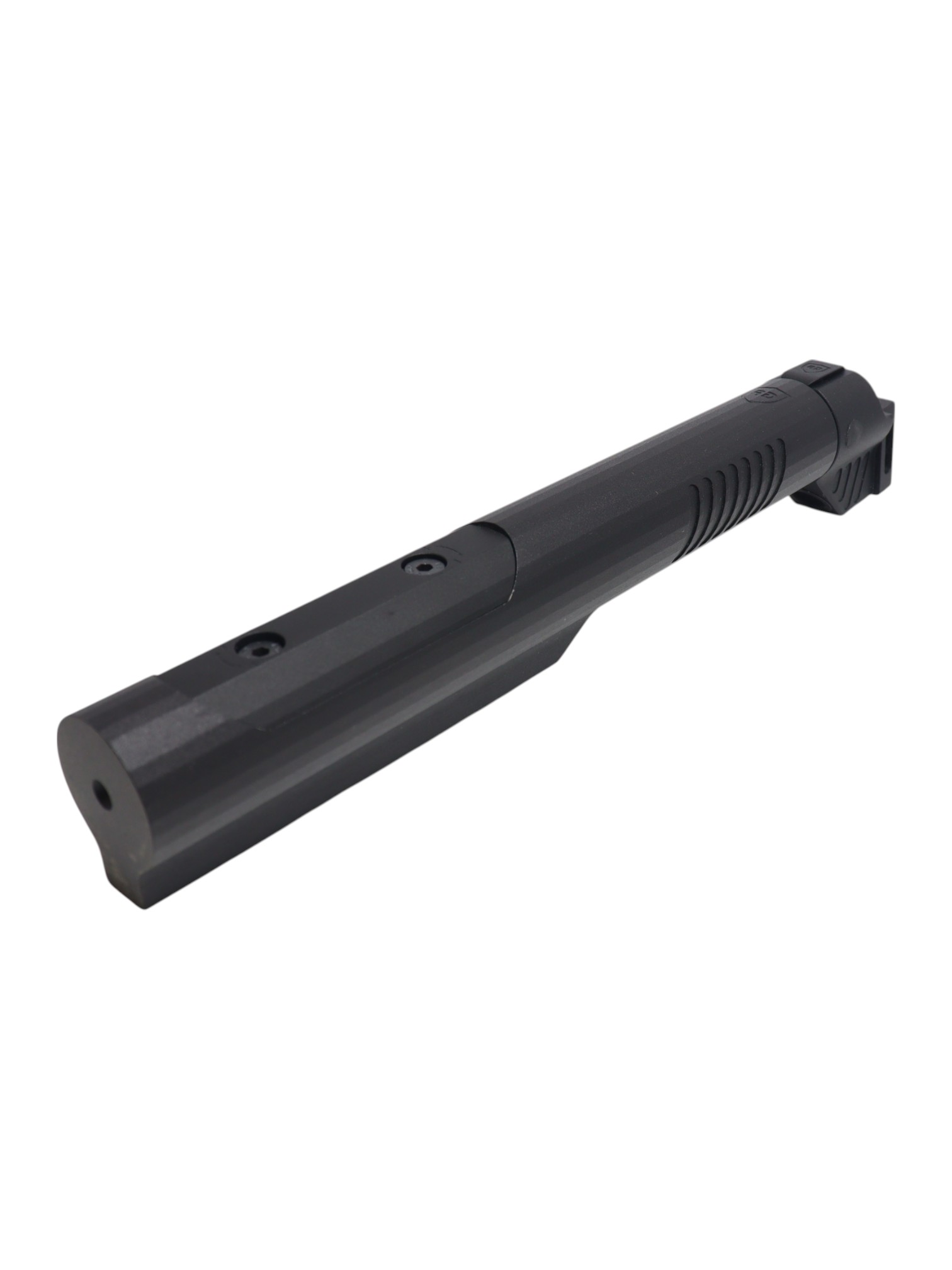 Масса адаптера и удлинённой трубы специально подобрана так, чтобы сместить центр тяжести оружия ближе к прикладу. Это особенно актуально при использовании длинных стволов или глушителей («банок»), когда важно сохранить баланс и контроль над оружием.