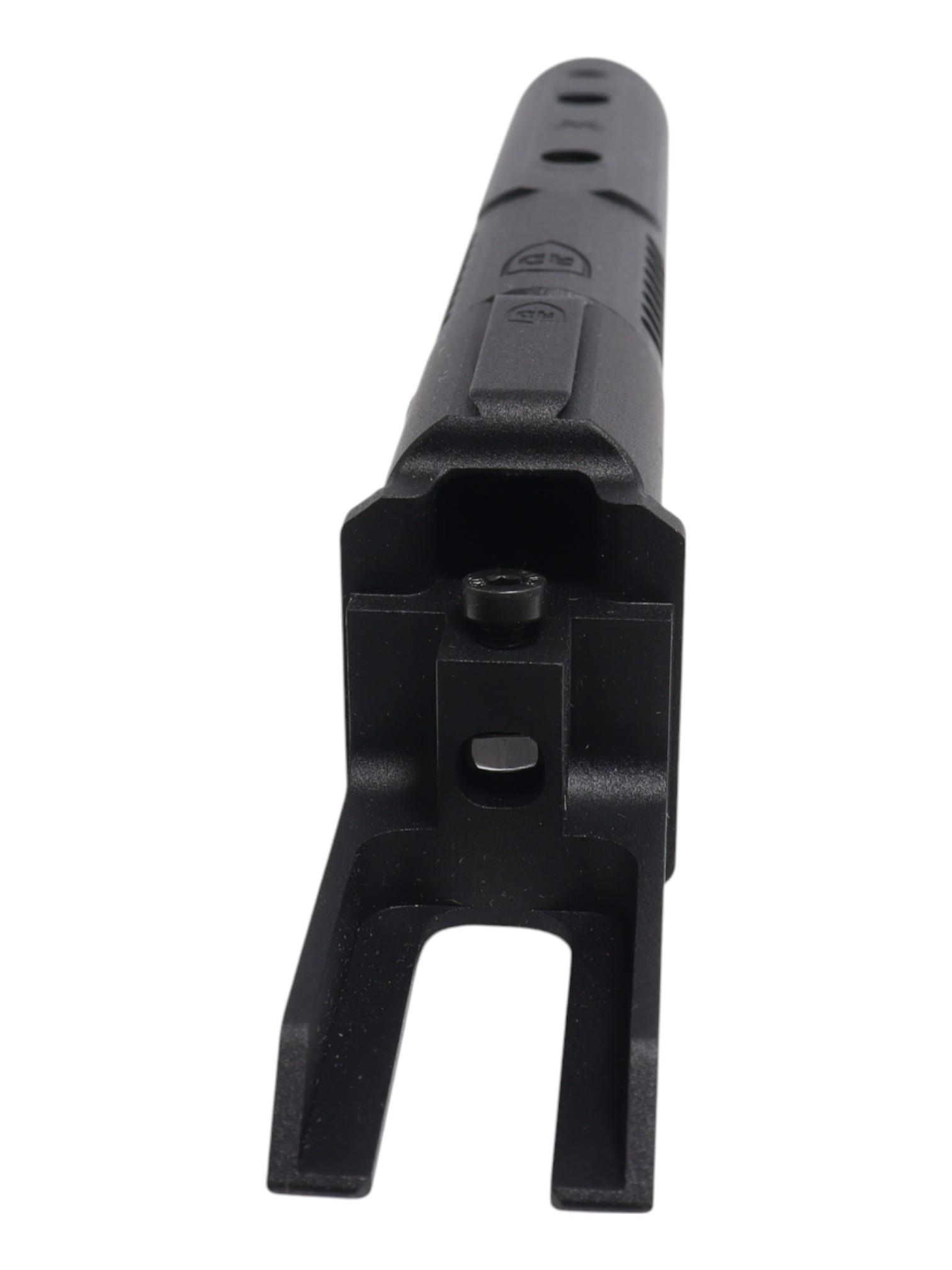 - Встроенная подпружиненная распорная площадка в задней части трубы позволяет устанавливать приклады формата Mil-Spec и Com-Spec — надёжная фиксация без люфта.