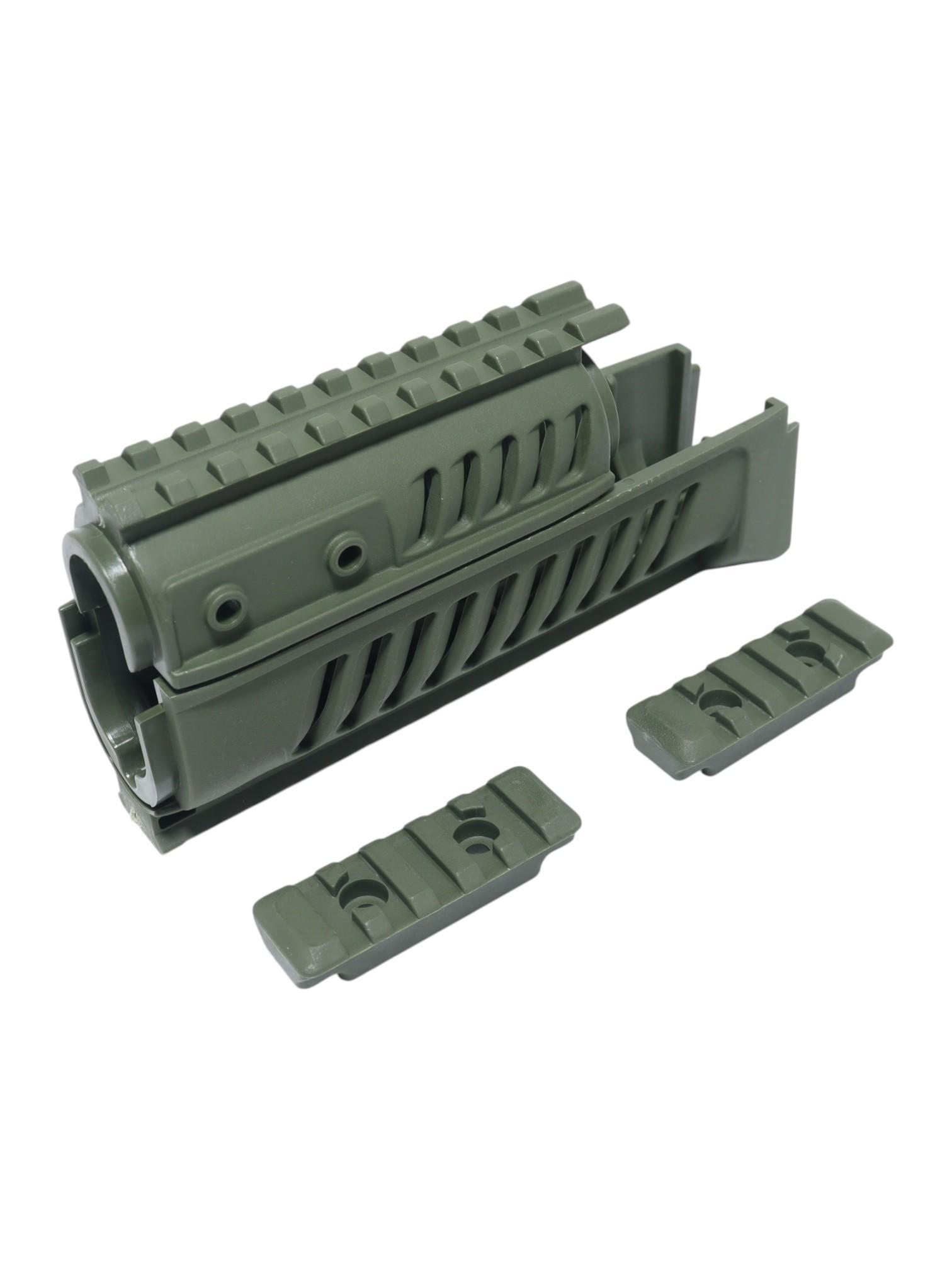Тактическое цевьё - это прочный и функциональный апгрейд для вашего автомата Калашникова. Оно полностью заменяет штатное и открывает широкие возможности для установки аксессуаров: сошек, передних рукояток, фонарей, ЛЦУ и других устройств.