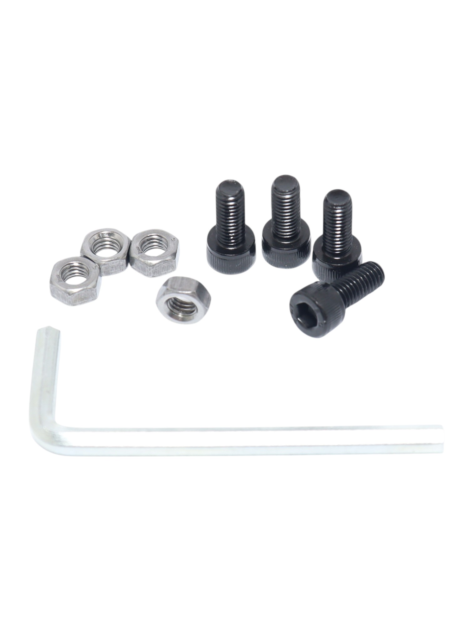 Модель выполнена в формате квадрейла с четырьмя планками Пикатинни/Вивер. Боковые планки съемные - крепятся на винтах М5х12 с гайками и снимаются шестигранником 4 мм.