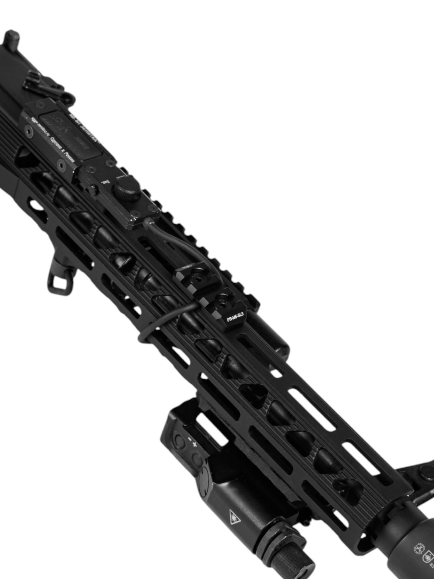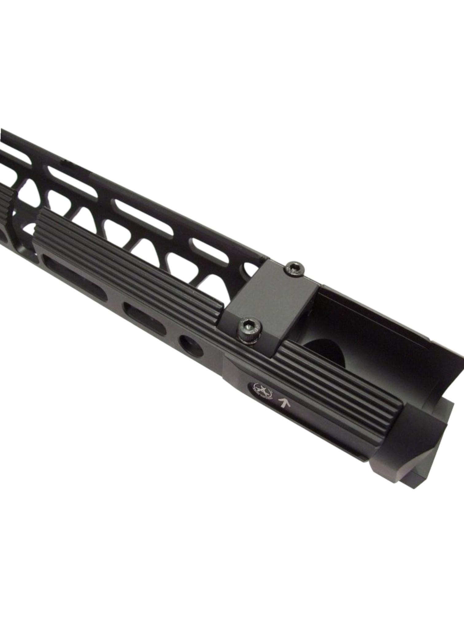 Фиксация цевья осуществляется при помощи ствольной муфты, что оставляет ствол вывешенным и предотвращает перегрев рук стрелка, поскольку значительная часть тепла сосредотачивается ближе к ствольной коробке.