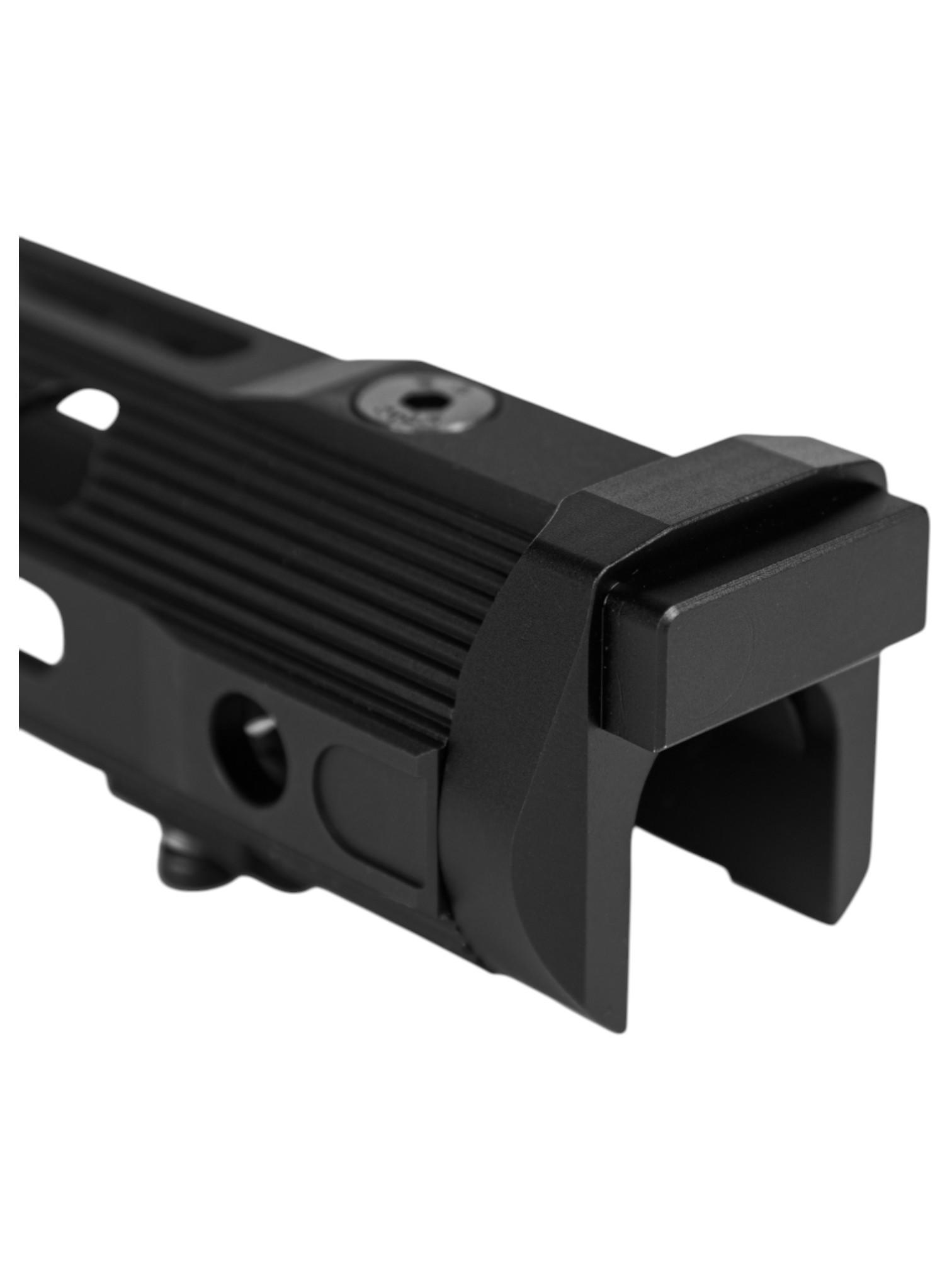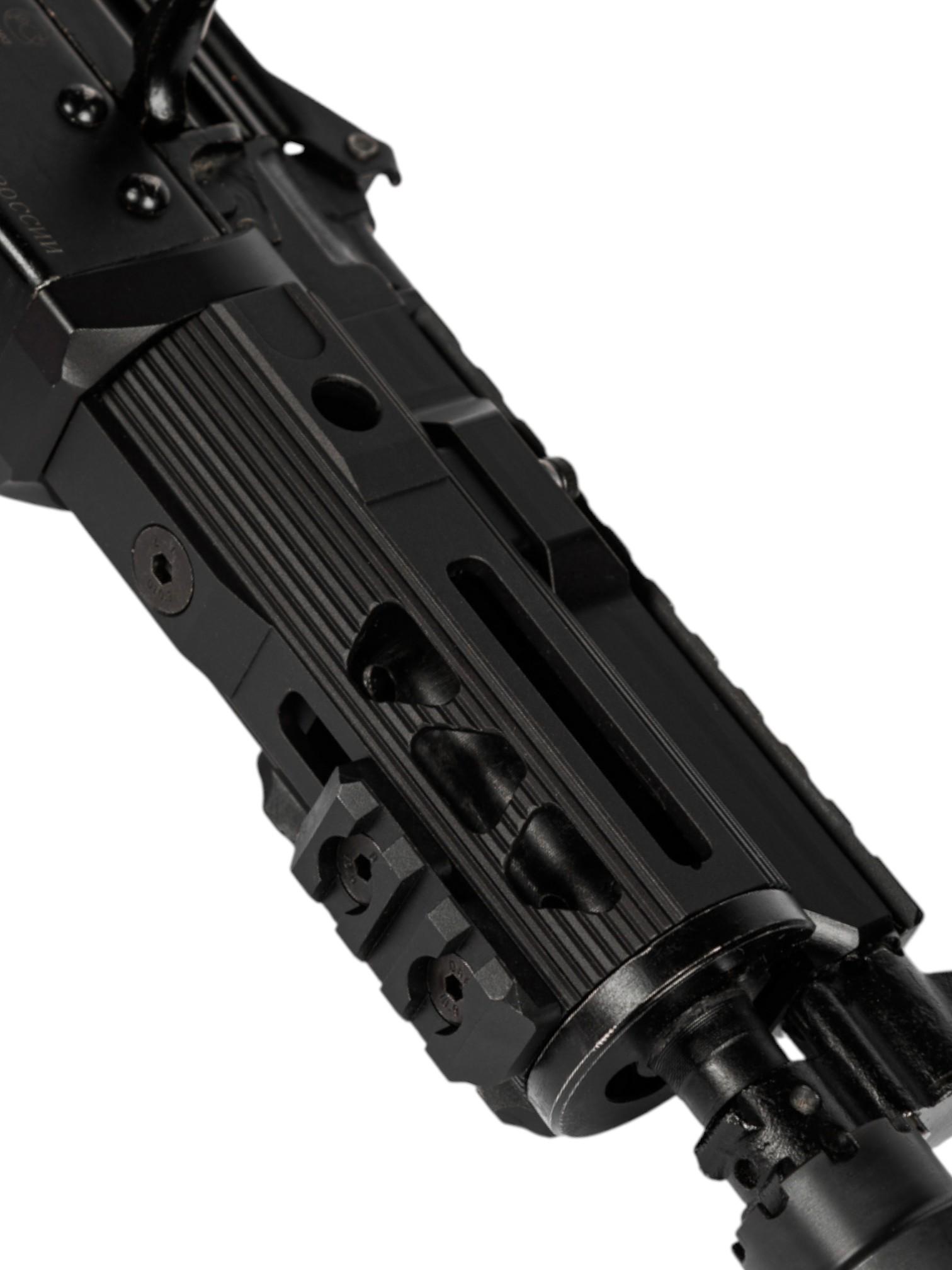 Цевье оборудовано слотами M-LOK для размещения навесного оборудования с ответными креплениями или через планки.