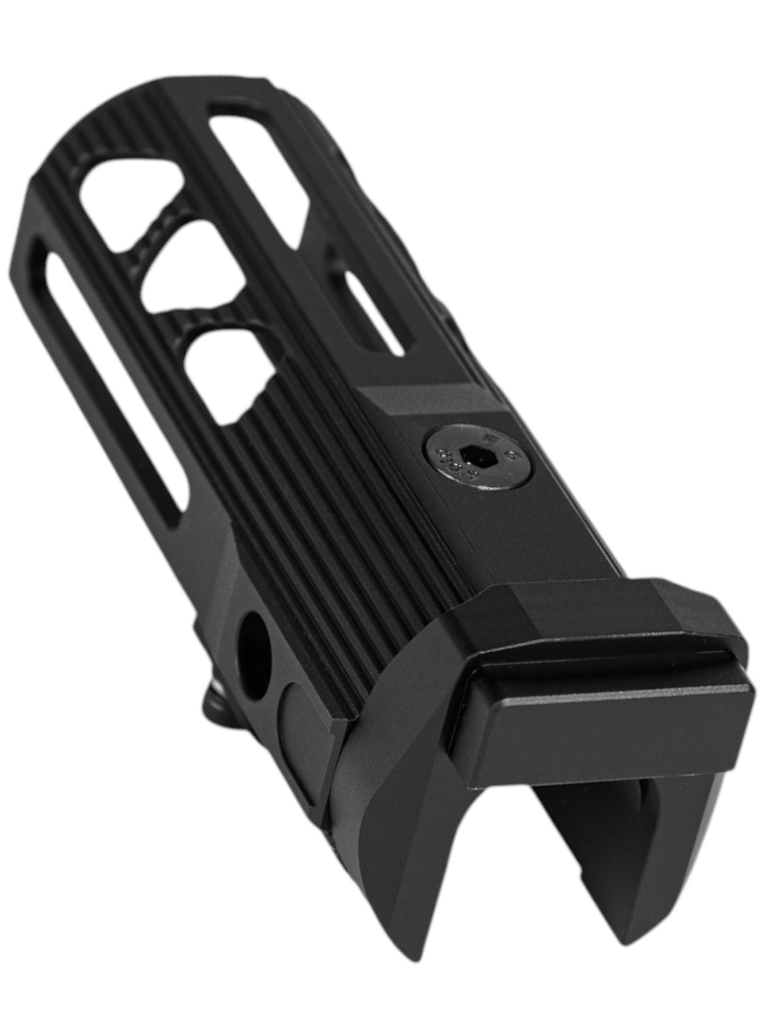 Геометрия корпуса предоставляет возможность использовать любой удобный хват. На боковых поверхностях расположены два слота для быстросъемной антабки.