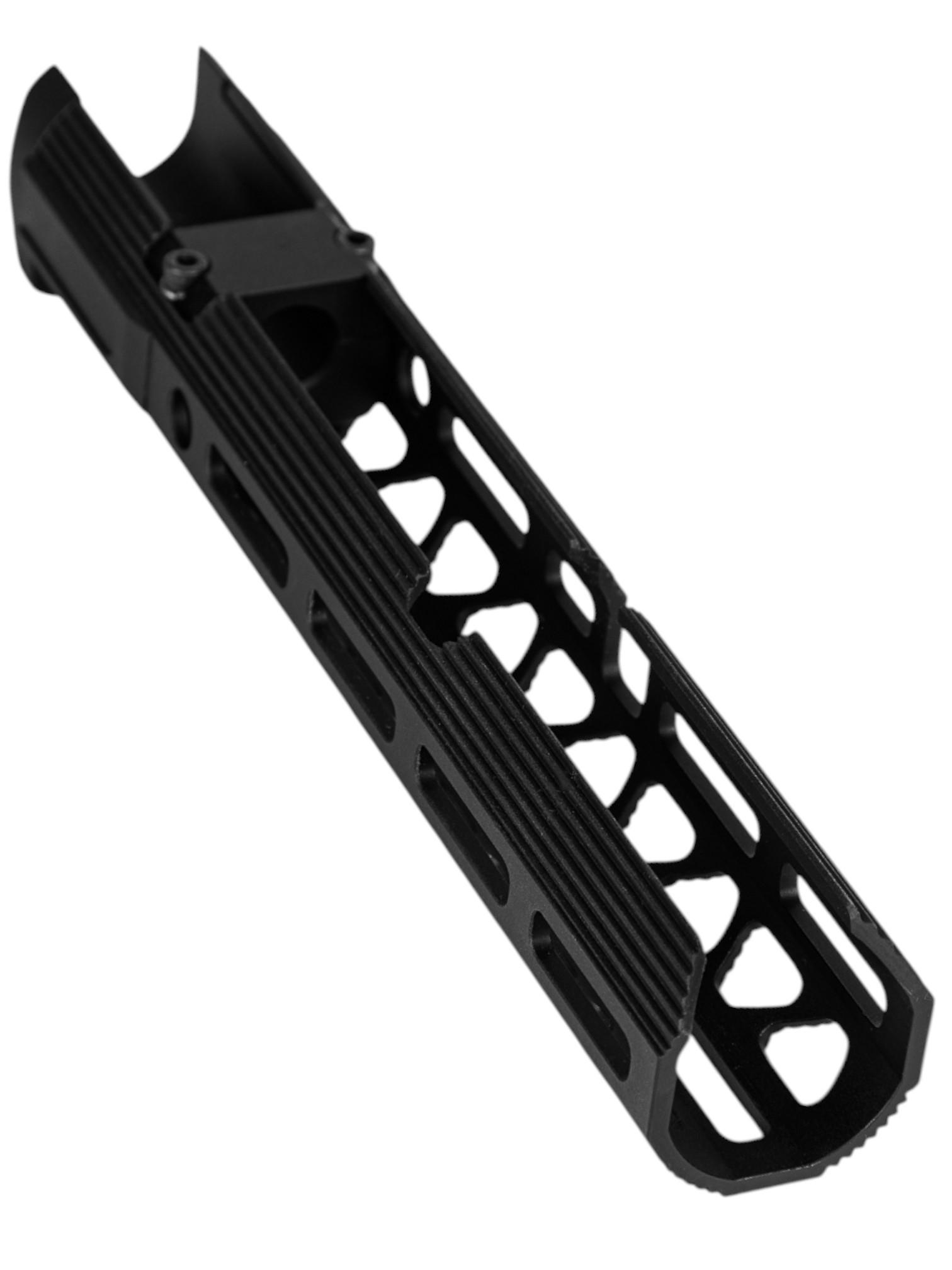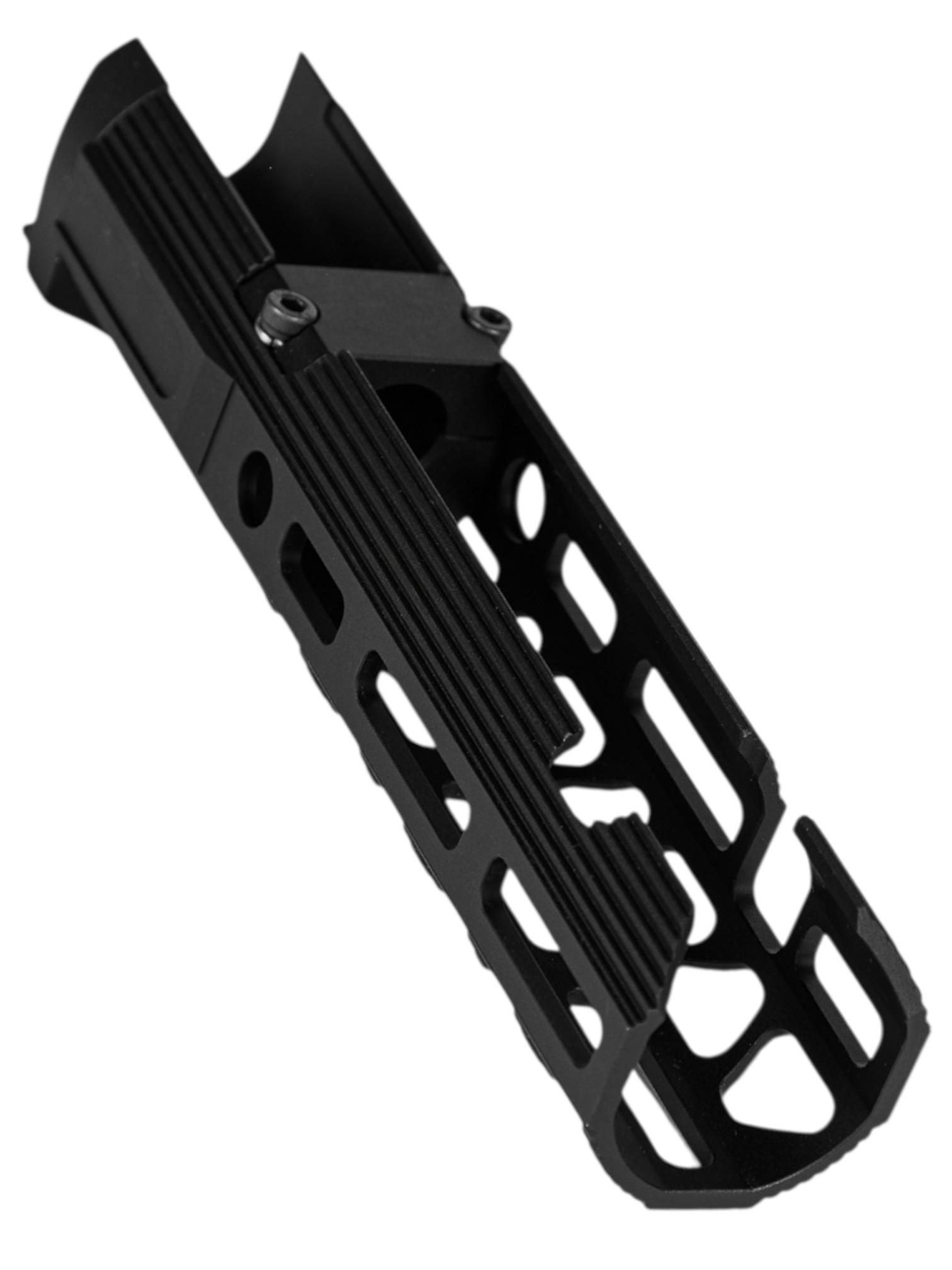 Легкая конструкция улучшает эргономику без ущерба для надёжности. Обеспечивает оптимальный хват оружия в зависимости от антропометрических данных пользователя.