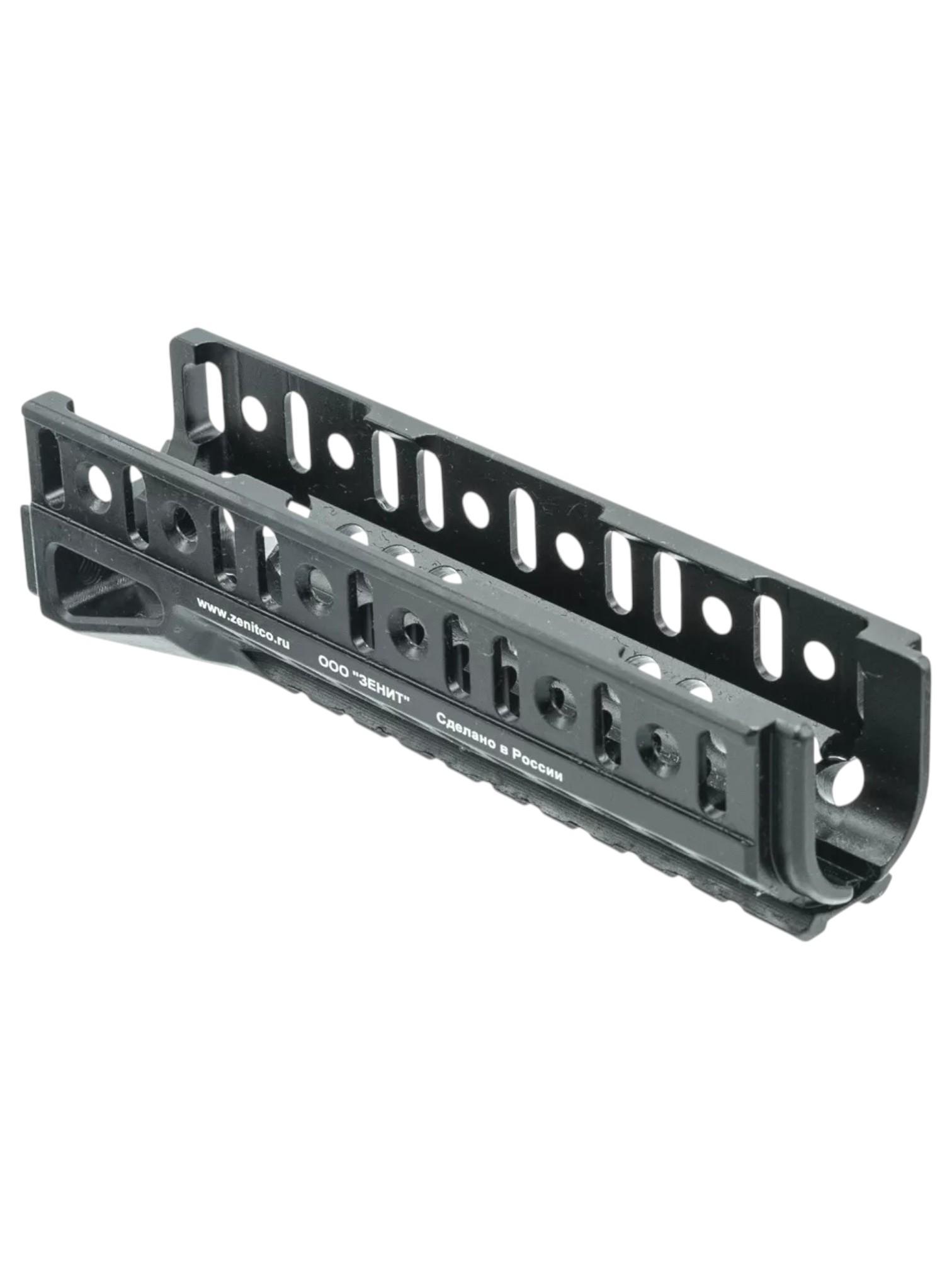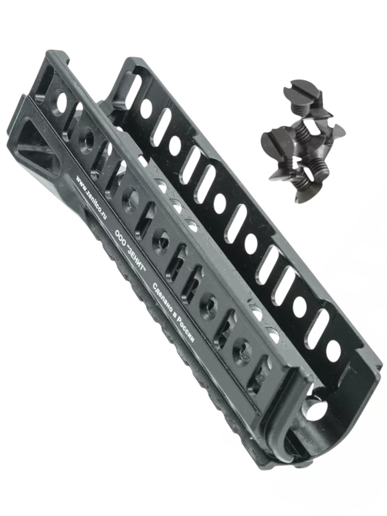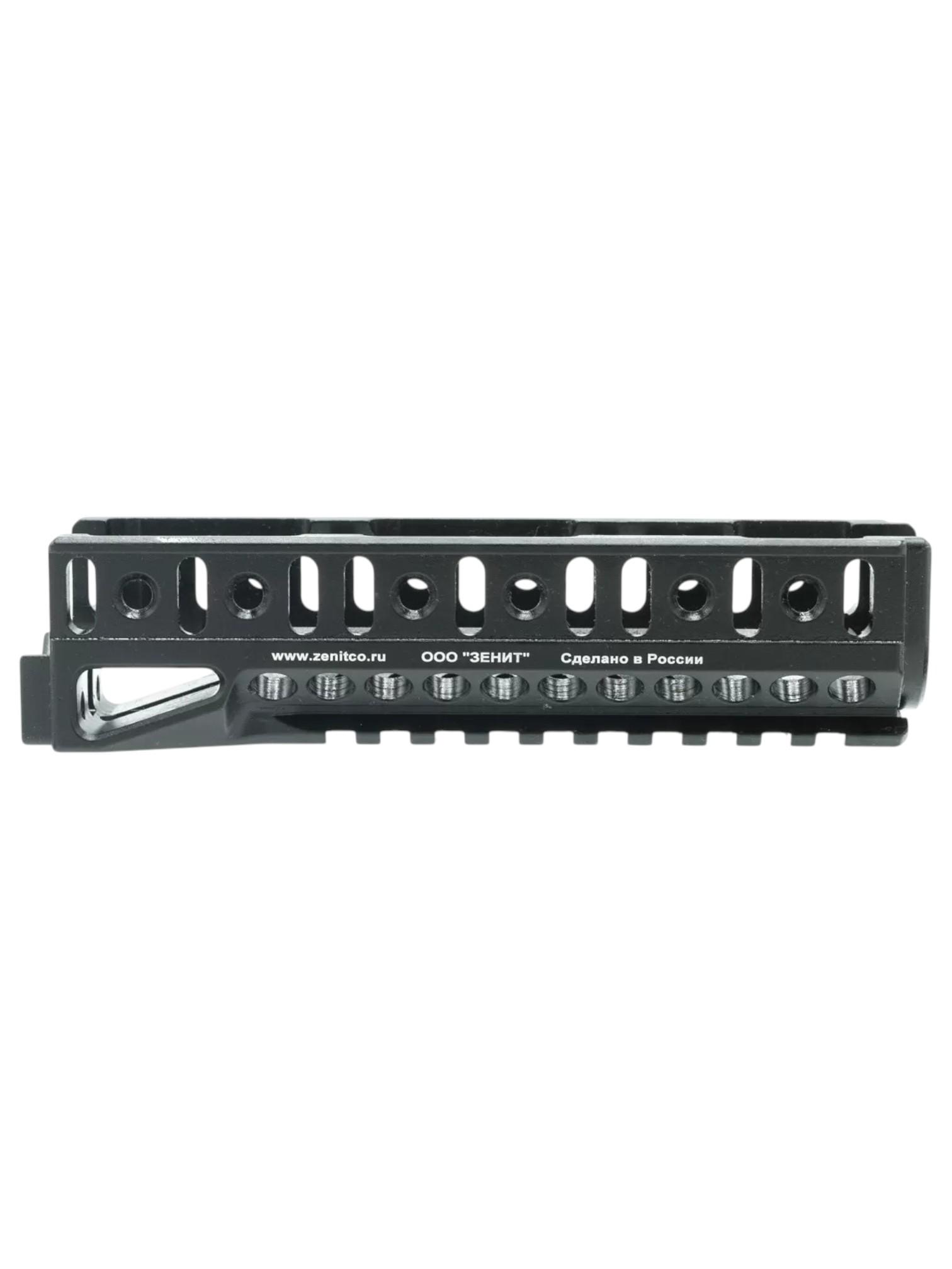 Имеет планку Пикатинни на 10 слотов (снизу) и направляющие Базис (сбоку и в нижней задней части), что позволяет устанавливать многочисленные дополнительные аксессуары – боковые планки Пикатинни, фонари, ЛЦУ, кронштейны, сошки, антабки и др.