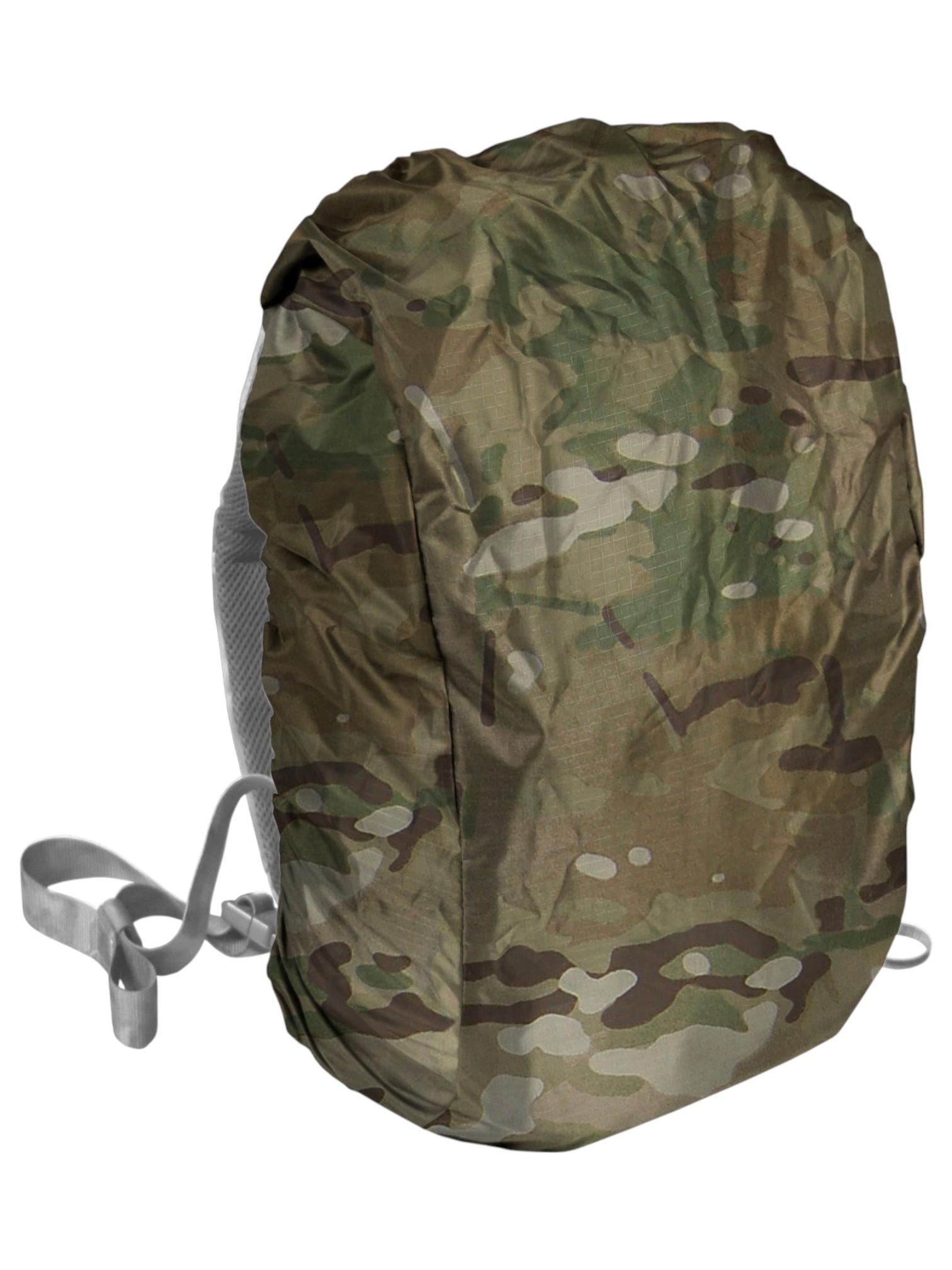 Накидка также может скрывать форму и цвет вашего рюкзака, что особенно актуально для камуфлированных моделей. Она легко надевается на рюкзак нужного объема благодаря эластичному краю, который обеспечивает надежное крепление и легкость снятия.
