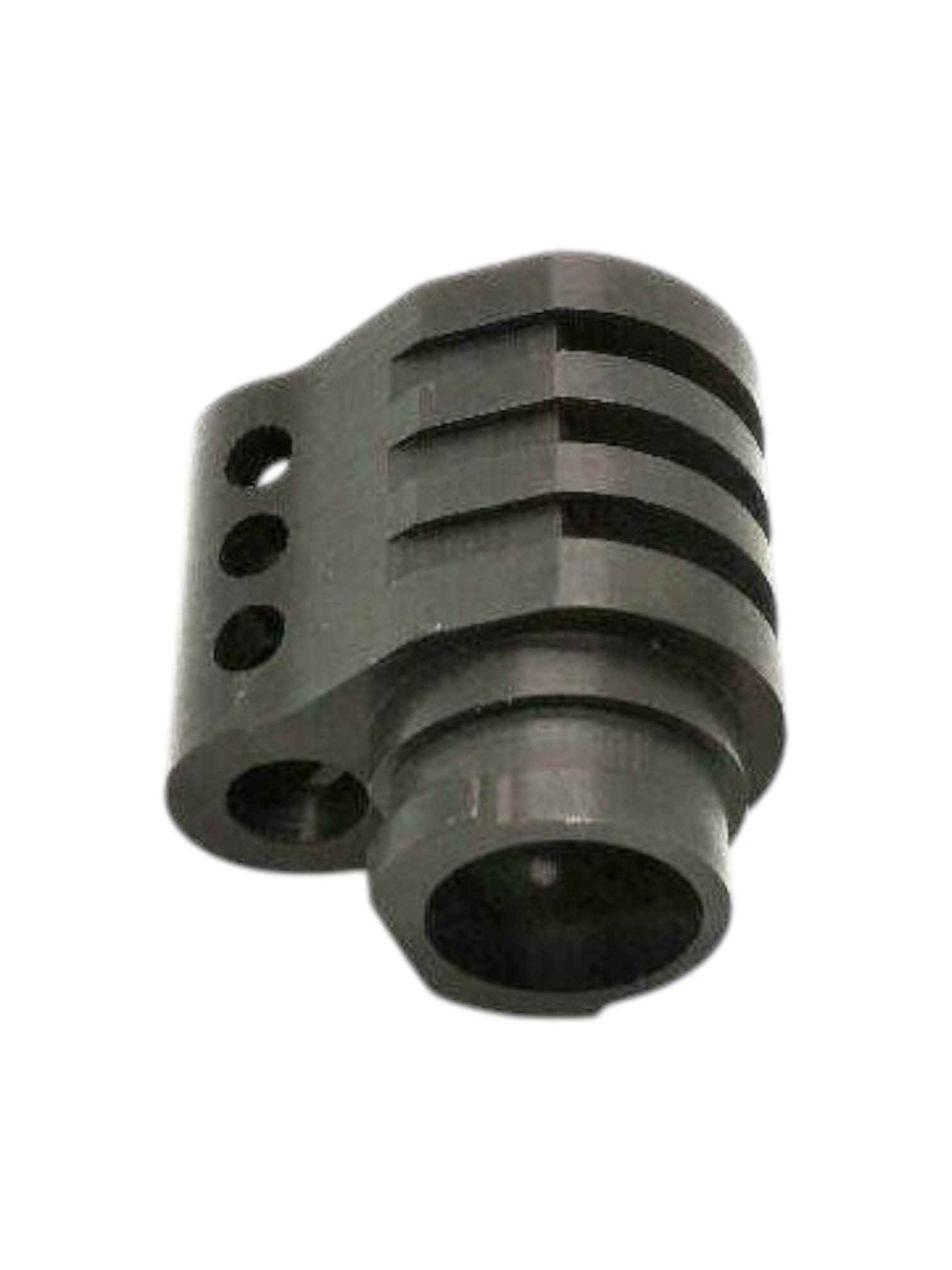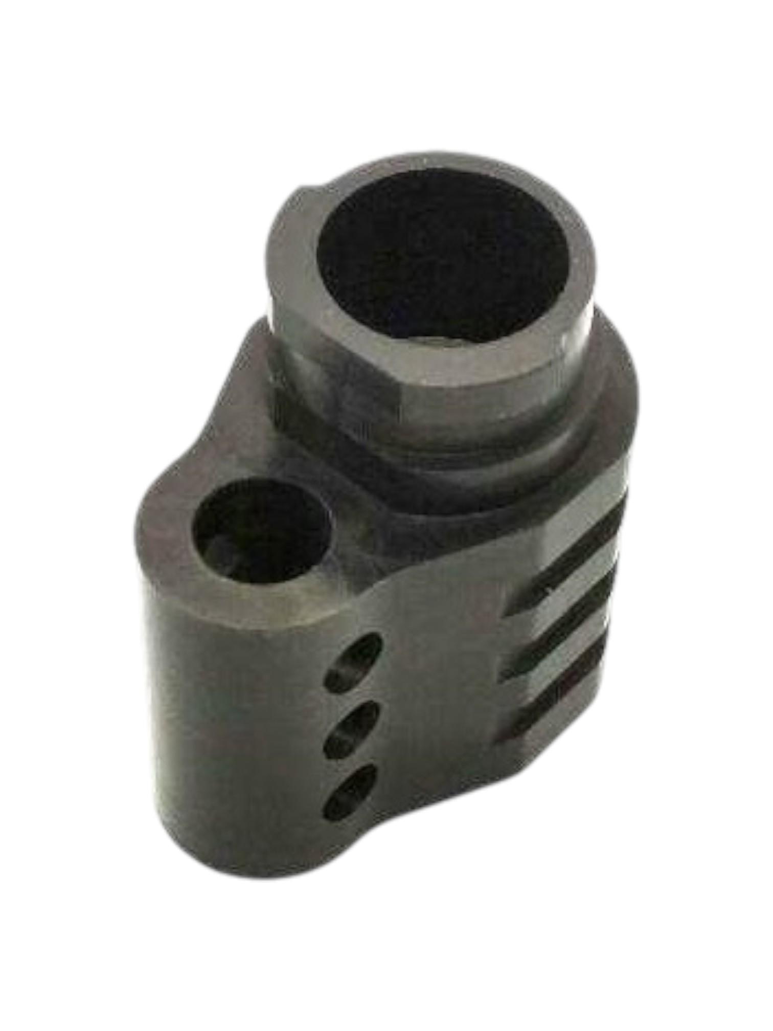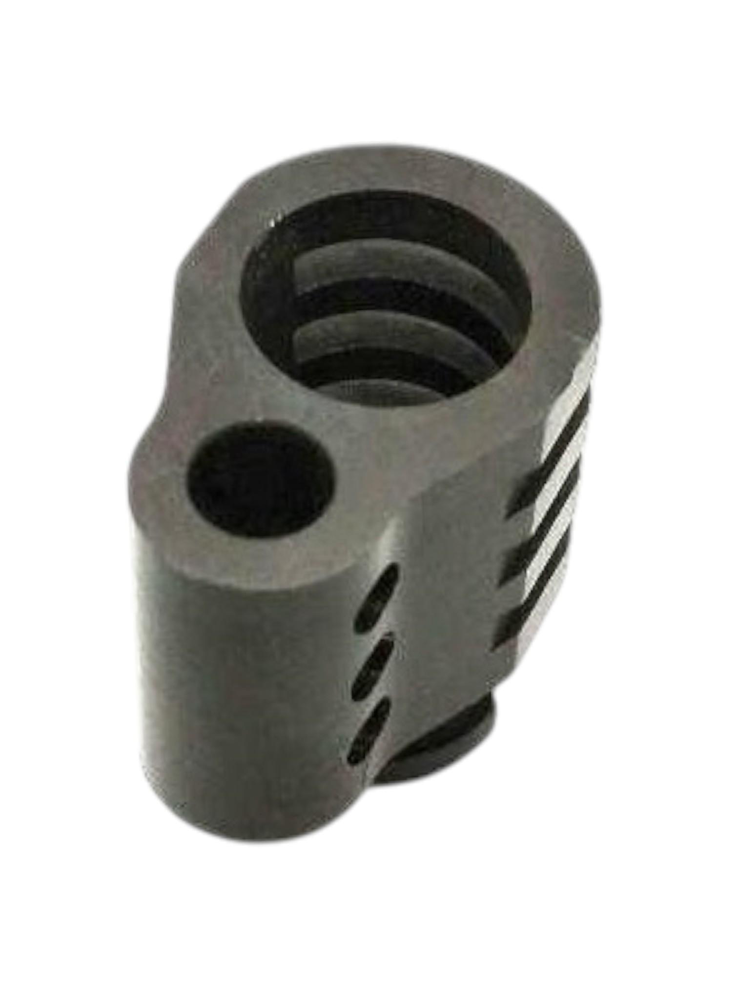 Присоединительная часть дульного тормоза соответствует штатной восьмерке Токарева. По бокам компенсатора сделаны выточки, способствующие надежному хвату, для тех, кто осуществляет досыл, удерживая затвор спереди.