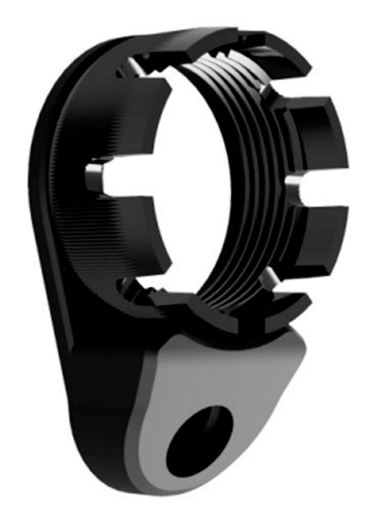 Фиксация гайки (castle nut) установочным винтом не требует кернения, обеспечивая легкость в обслуживании и возможность сборки/разборки в домашних условиях. Присутствие быстросъемного крепления антабки ремня QD обеспечивает удобство использования и быструю смену ремня.