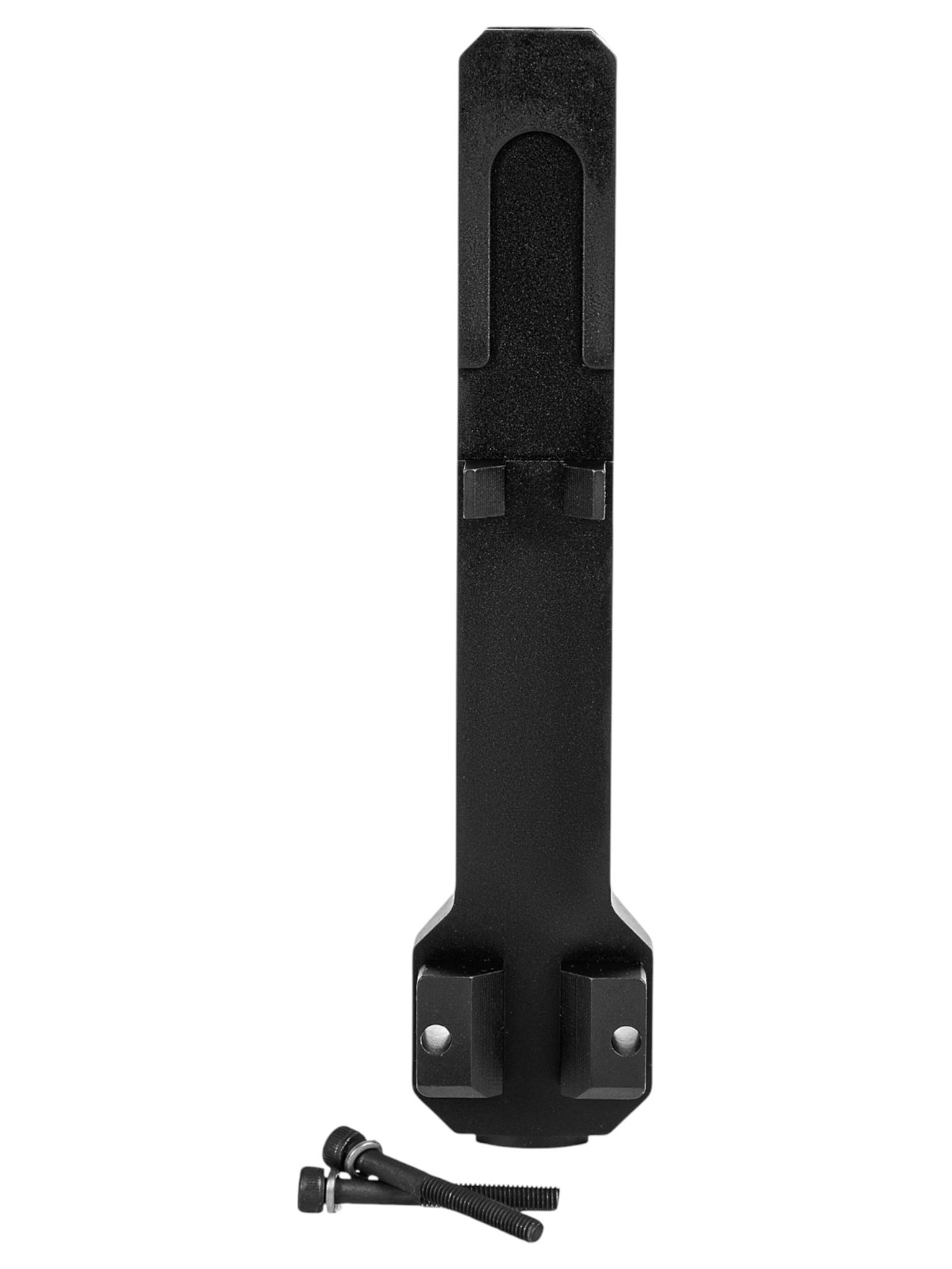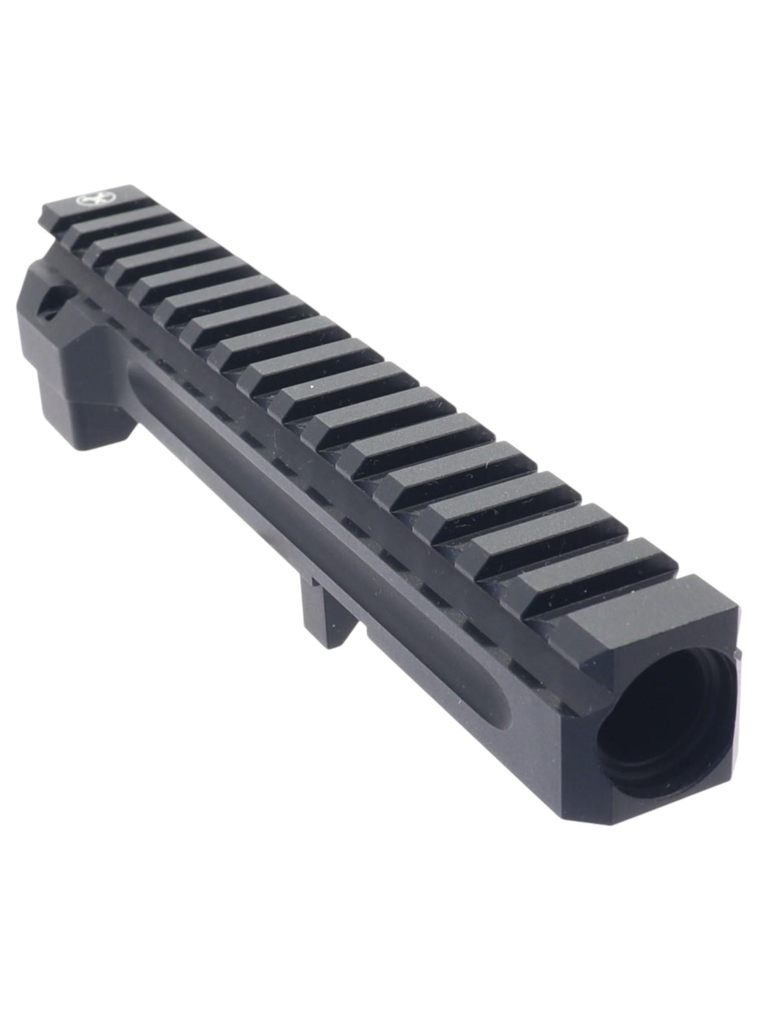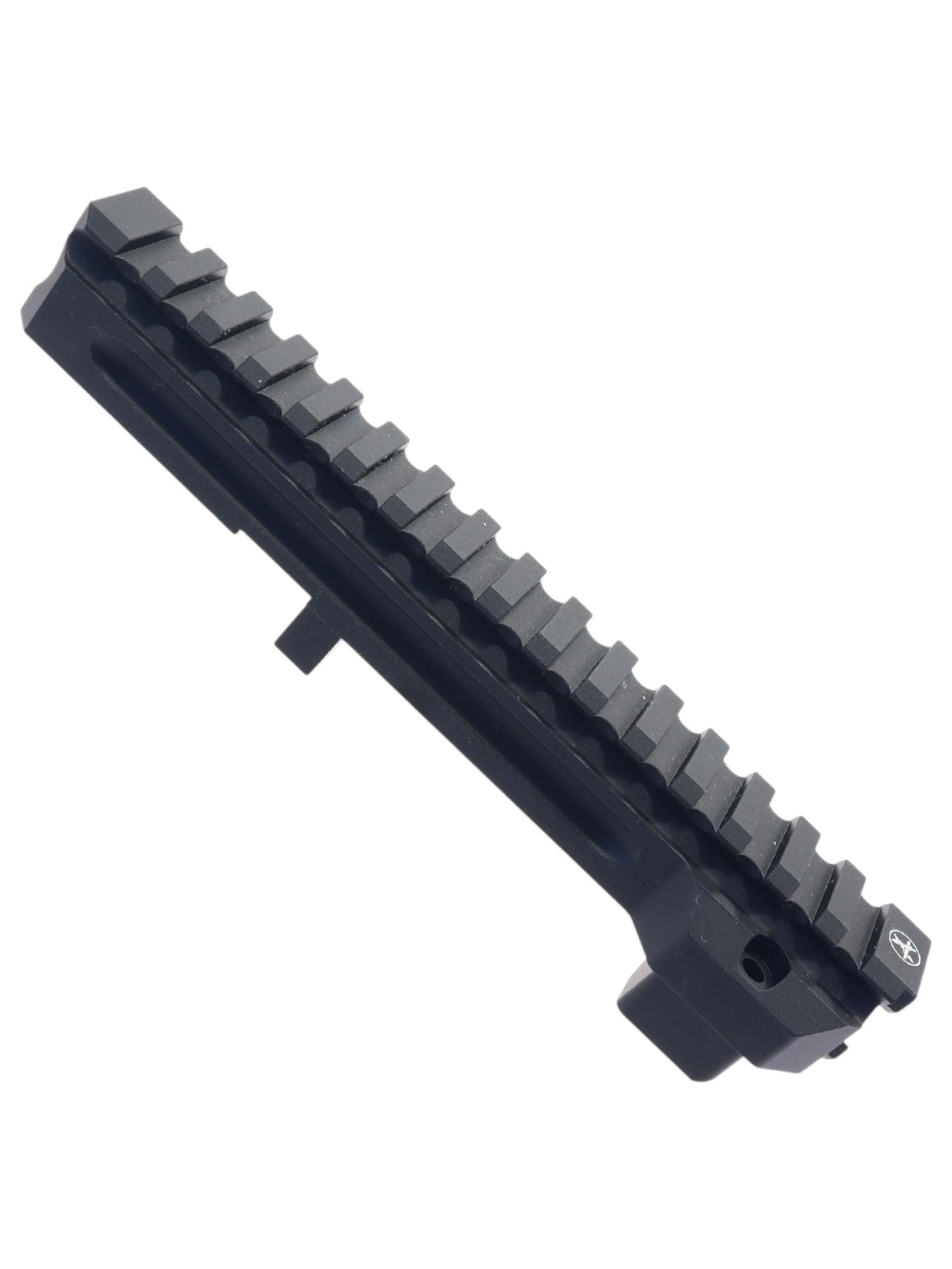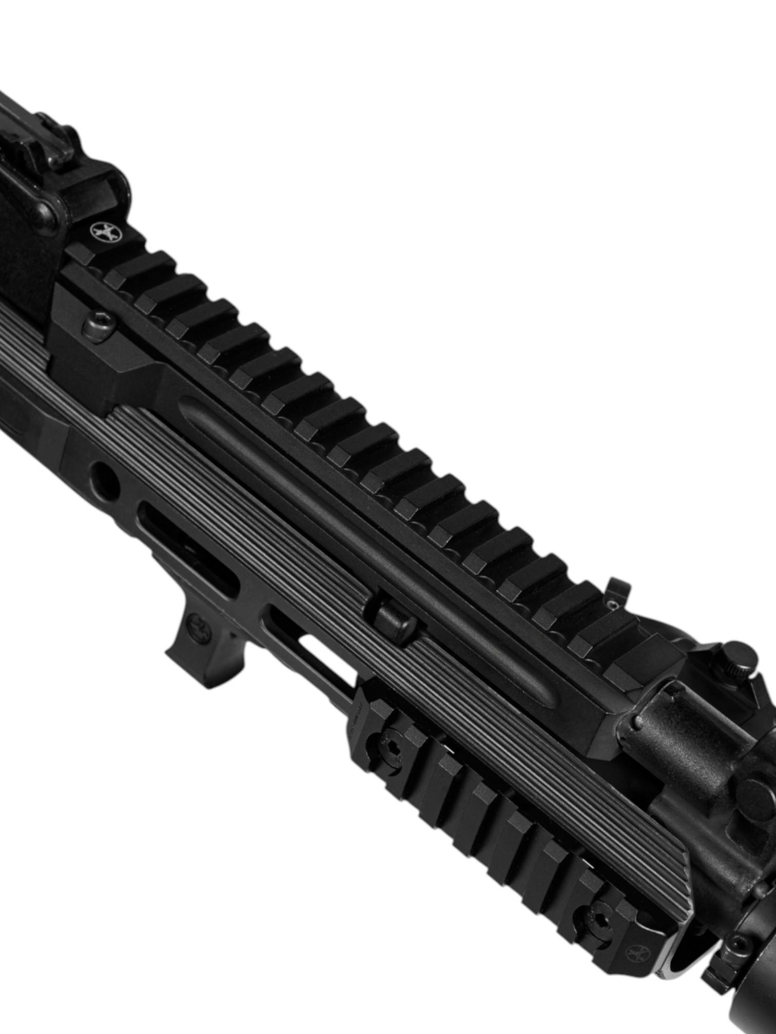 Пятидюймовая планка Пикатинни позволяет монтировать коллиматорные и оптические прицелы максимально близко к линии ствола. Возможна установка фонарей, ЛЦУ и иного навесного оборудования.