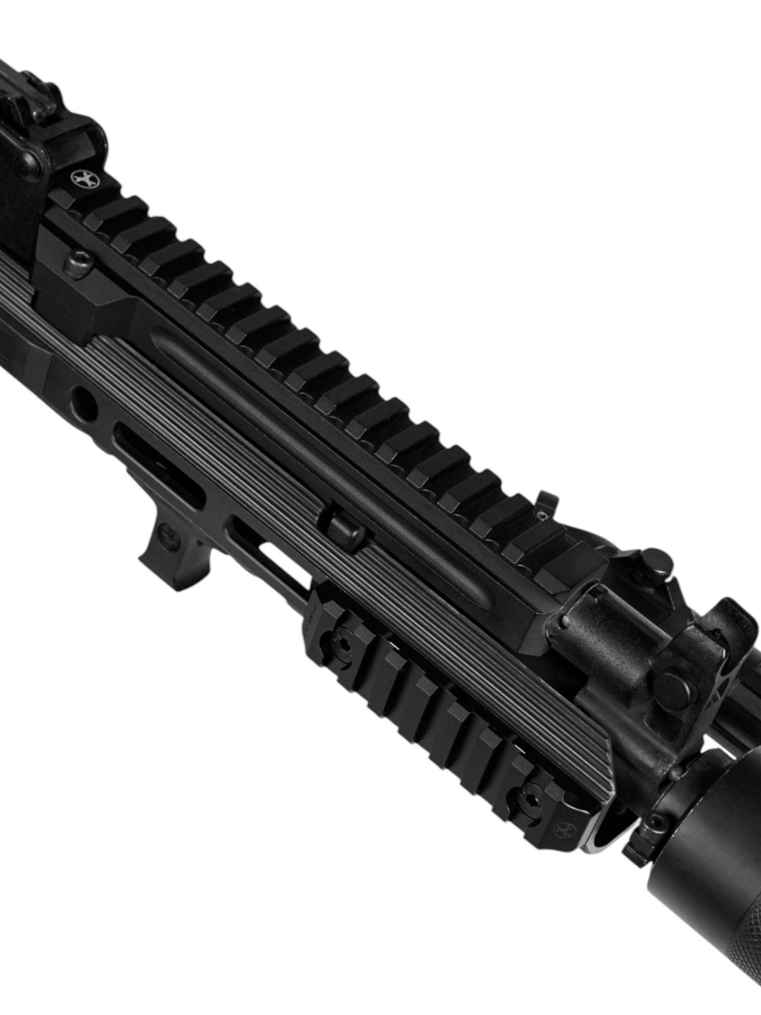 Благодаря планке Пикатинни на 16 шагов возможна установка фонарей, прицельных приспособлений (коллиматорных прицелов, тактических блоков) и других аксессуаров. Вес газовой трубки практически не отличается от штатной, поэтому баланс оружия не изменяется.