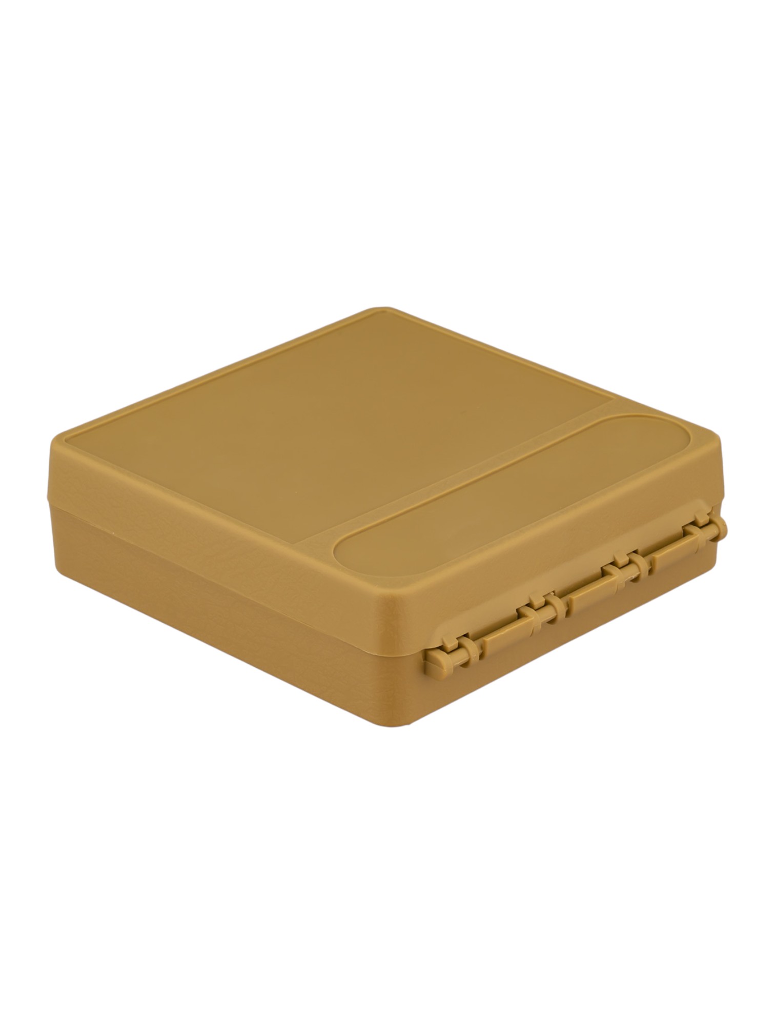 Материал корпуса - прочный полипропилен цвета койот с текстурной поверхностью: кейс удобно держать даже мокрыми руками, а внешний вид долго остаётся аккуратным. Корпус непрозрачный, содержимое не видно посторонним.