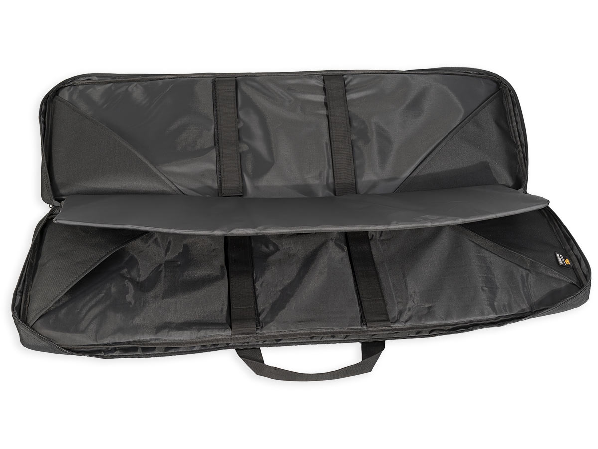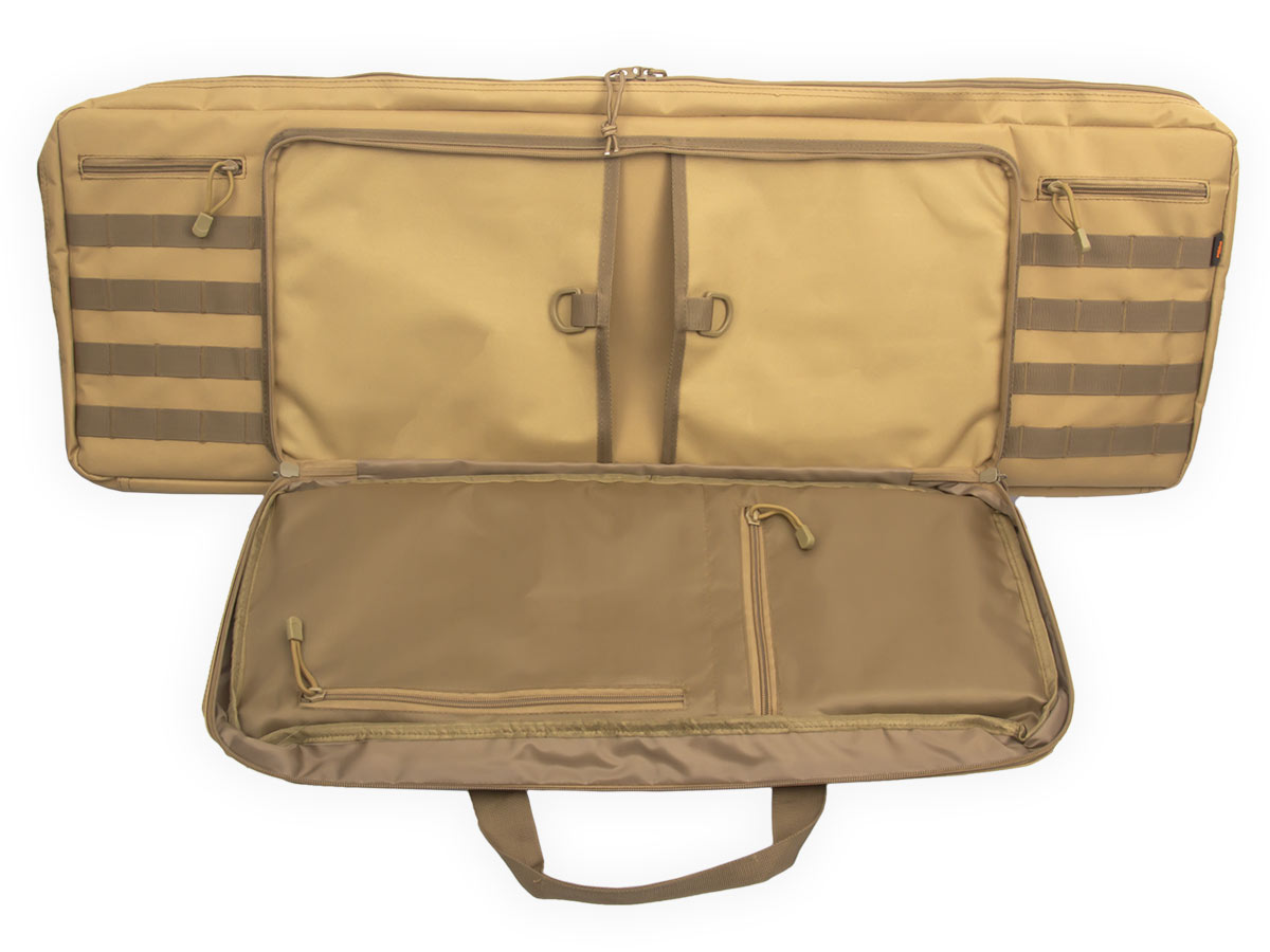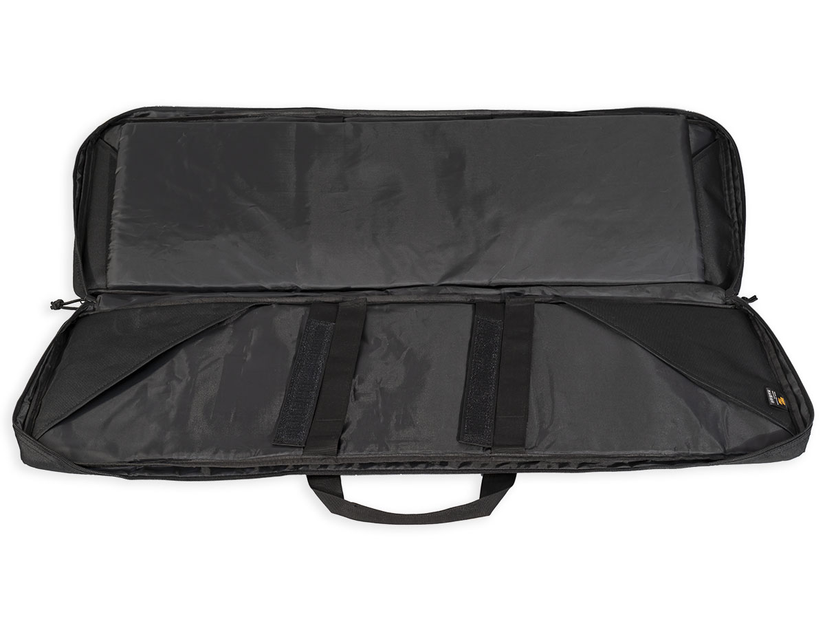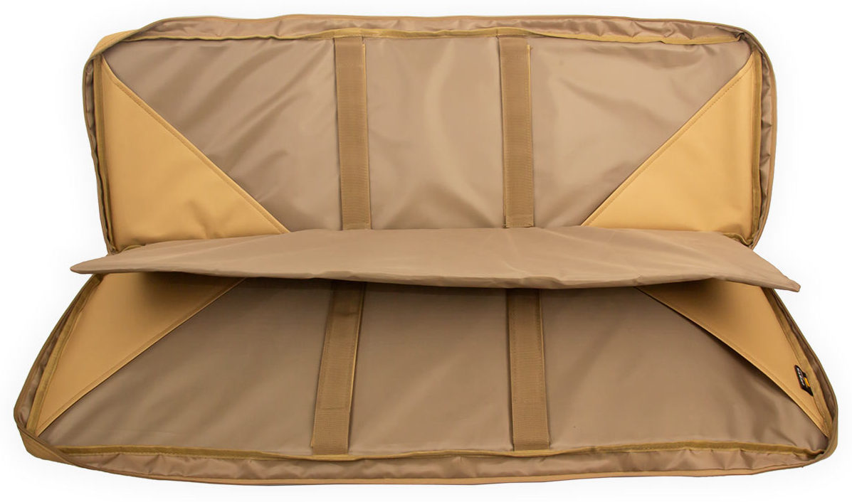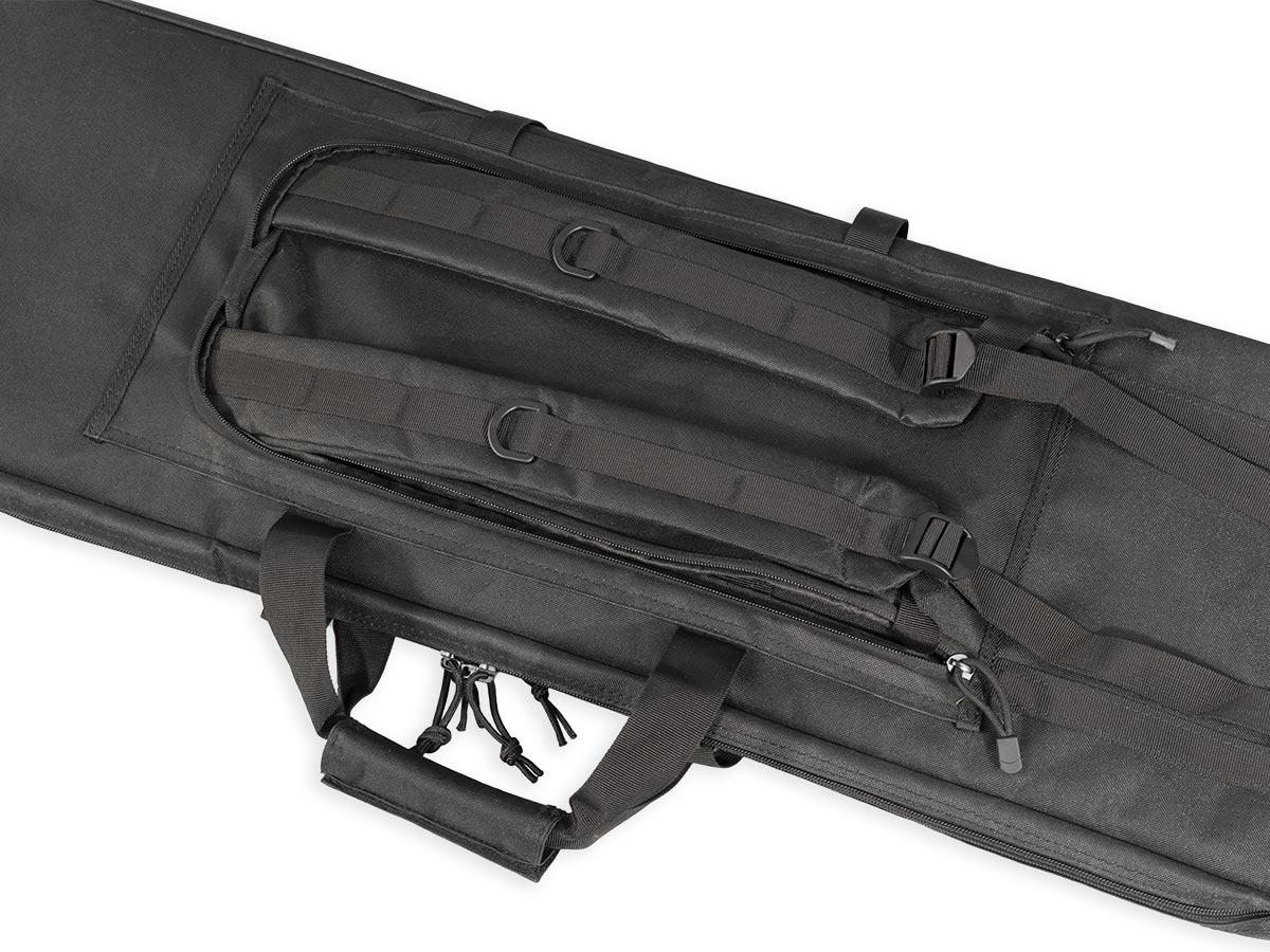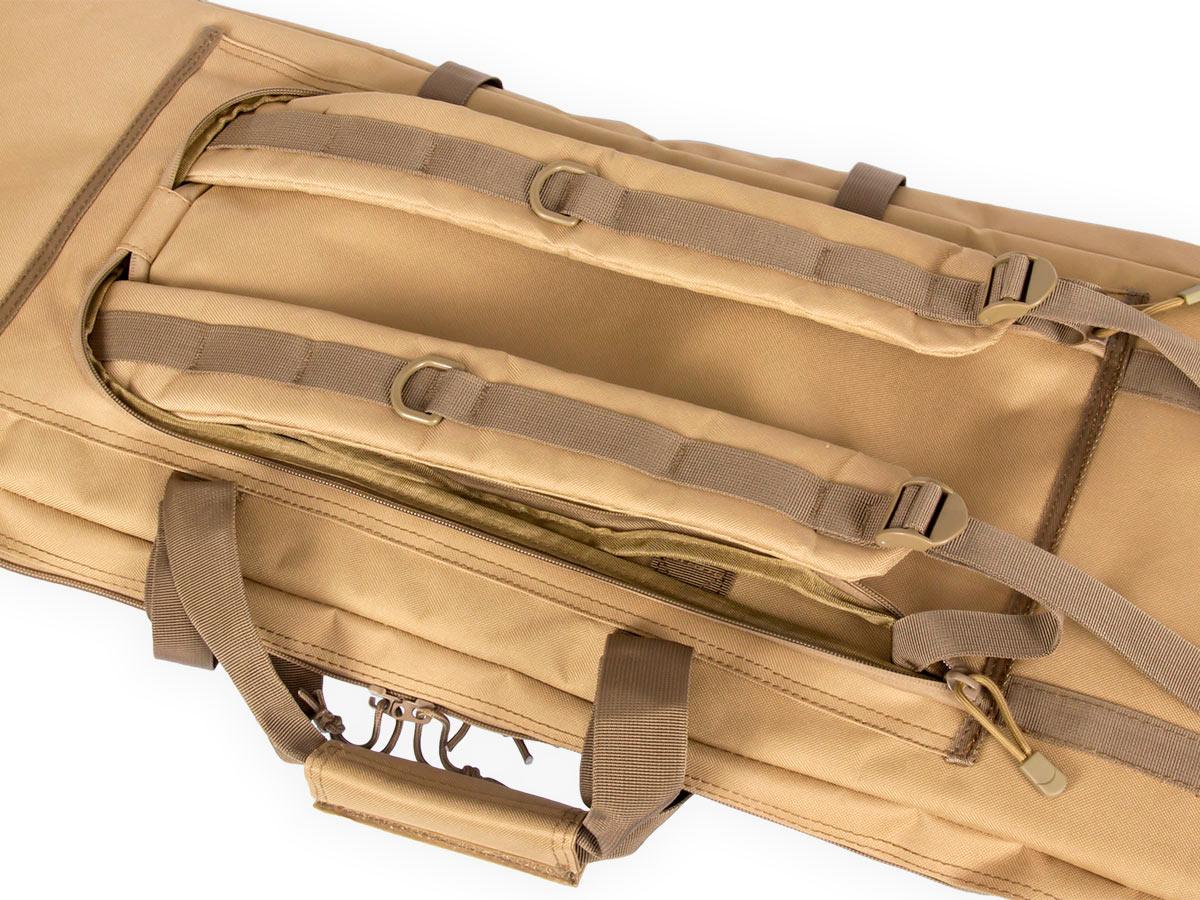 Внутренние размеры основного отделения составляют 92x29x6 см. Для размещения и фиксации оружия предусмотрены угловые карманы на торцах чехла и нейлоновые стропы с липучками Velcro. Для того, чтобы две единицы оружия не соприкасались, посередине отделения размещена амортизирующая перегородка-разделитель толщиной 8 мм из материала Eva.