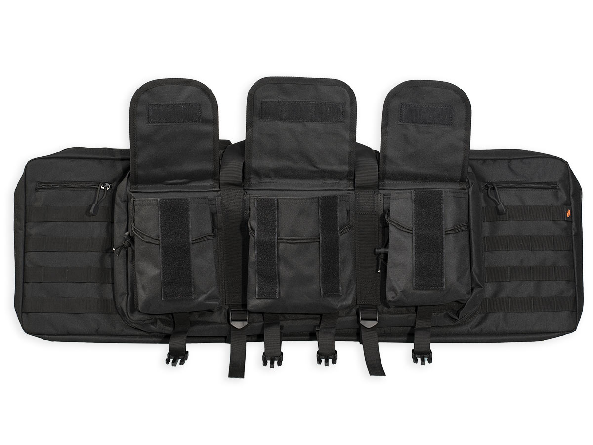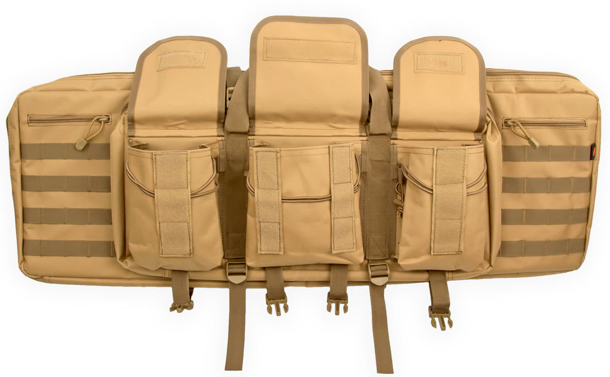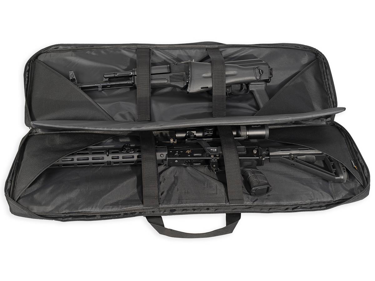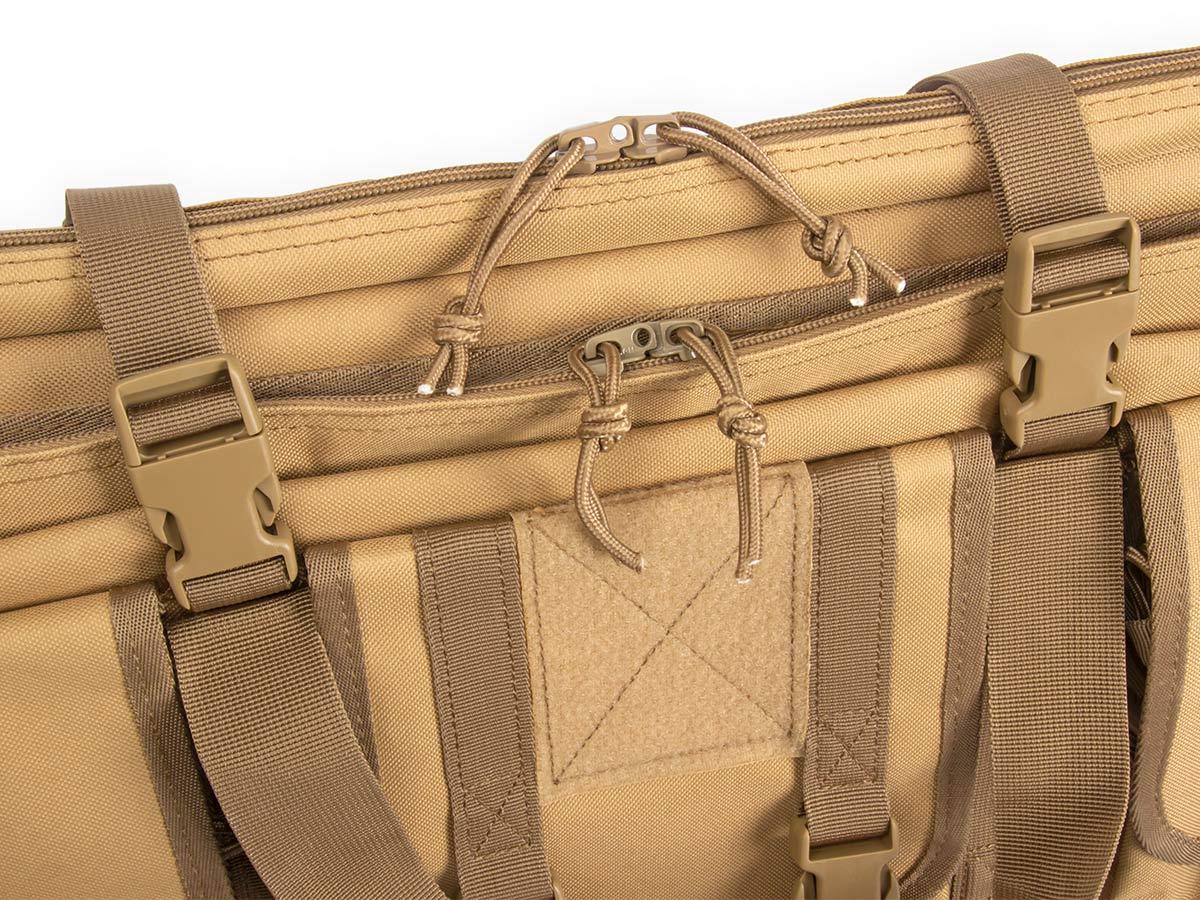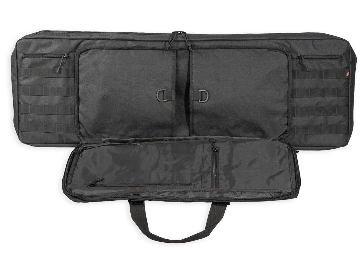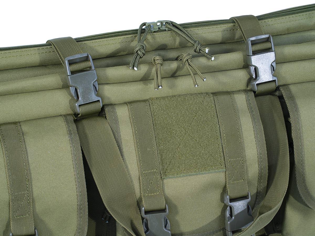 Внутренние размеры основного отделения составляют 92x29x6 см. Для размещения и фиксации оружия предусмотрены угловые карманы на торцах чехла и нейлоновые стропы с липучками Velcro. Для того, чтобы две единицы оружия не соприкасались, посередине отделения размещена амортизирующая перегородка-разделитель толщиной 8 мм из материала Eva.