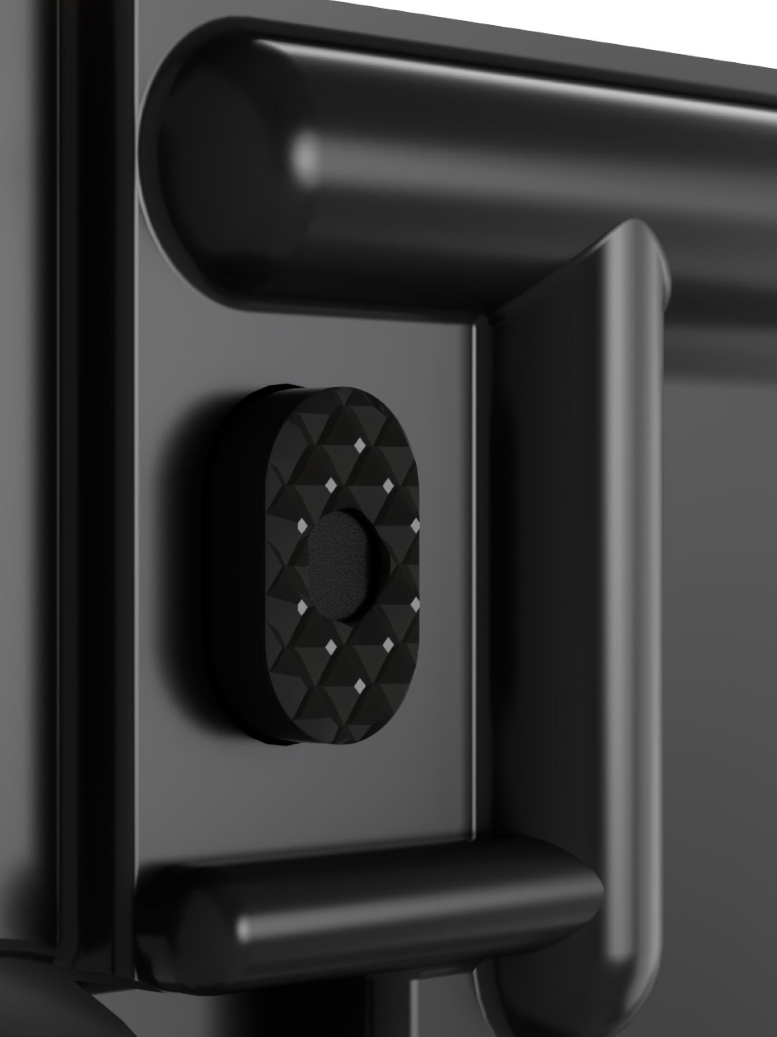 Эллипсоидная форма с рифлёной поверхностью для надёжного нажатия даже в перчатках.