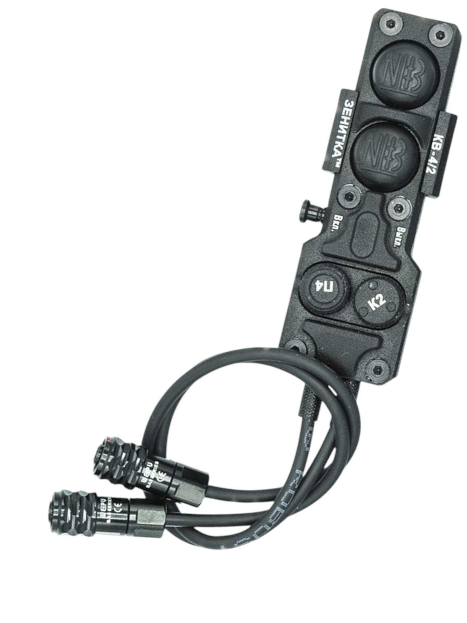 Алюминиевый сплав DТ6Кнопка выносная КВ-4/2 с креплением на планку Пикатинни предназначена для одновременного управления фонарём Клещ-2 и ЛЦУ Перст-4.