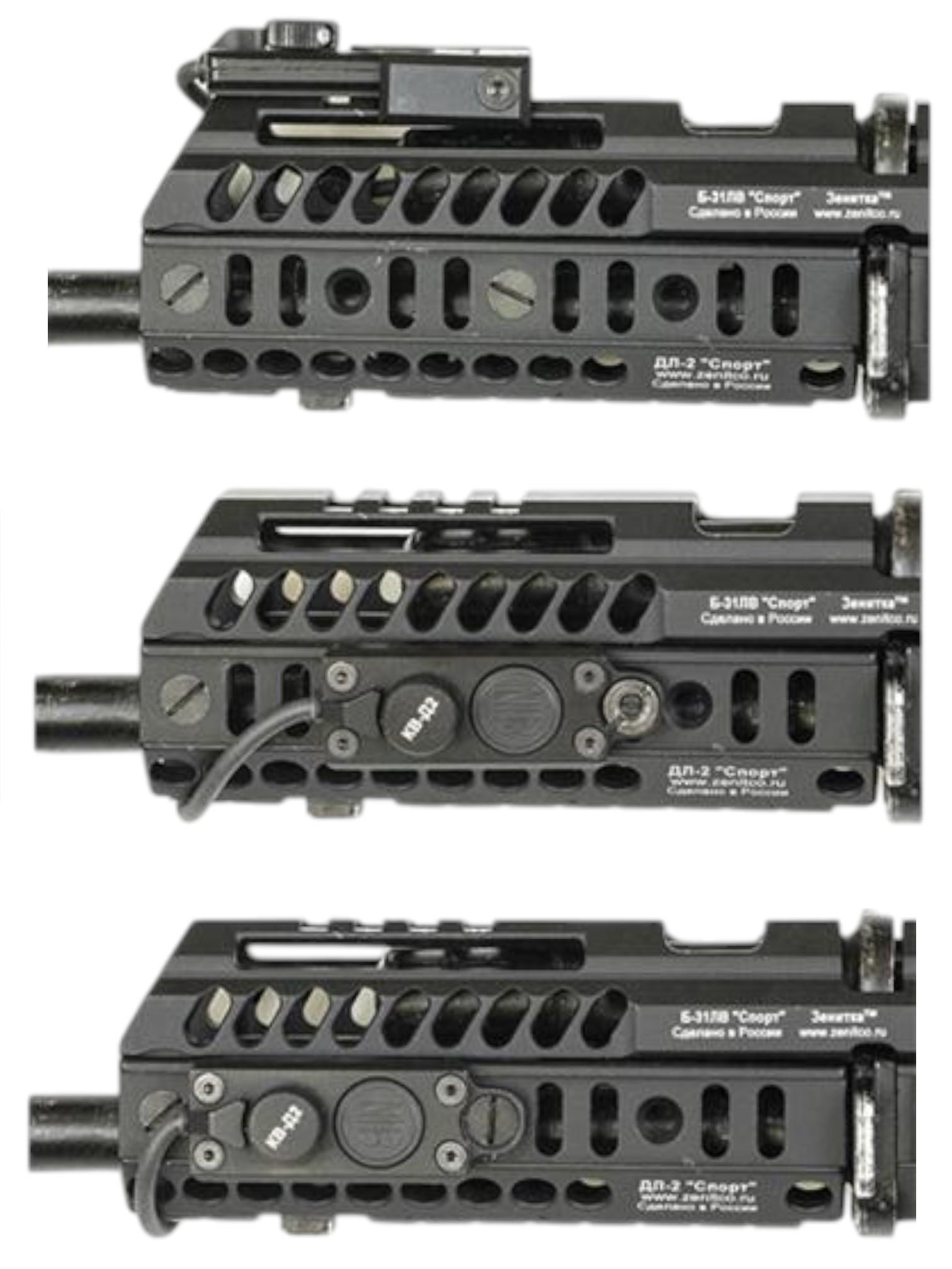 - Планку Пикатинни — с использованием дополнительного переходника, включающего две прижимные планки, центральный зажим и стопор.