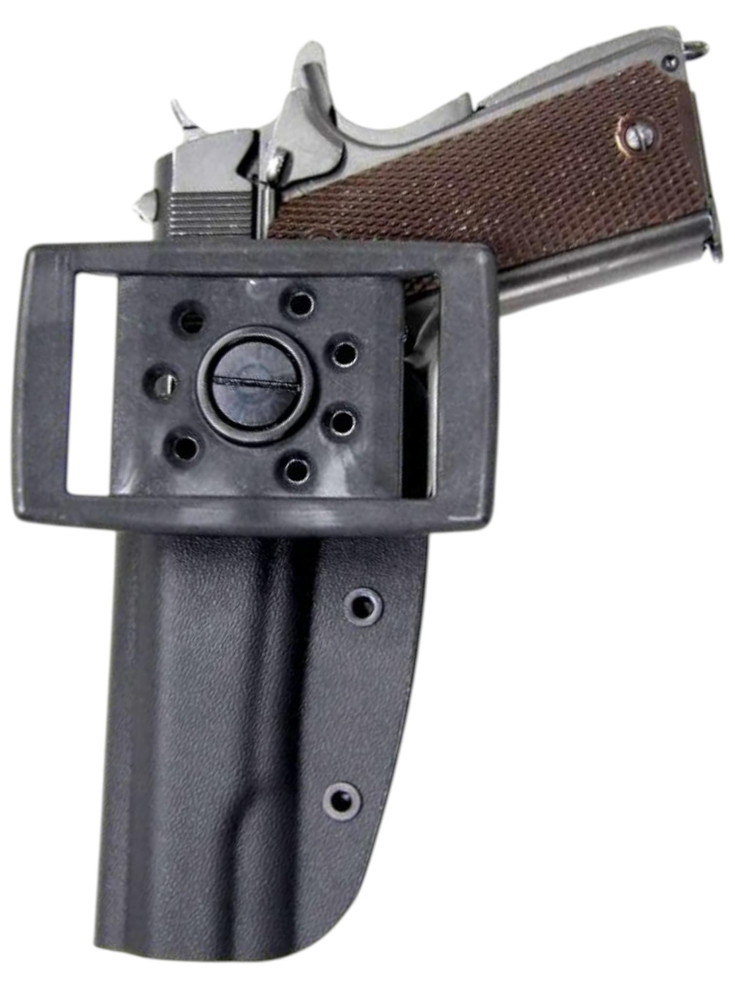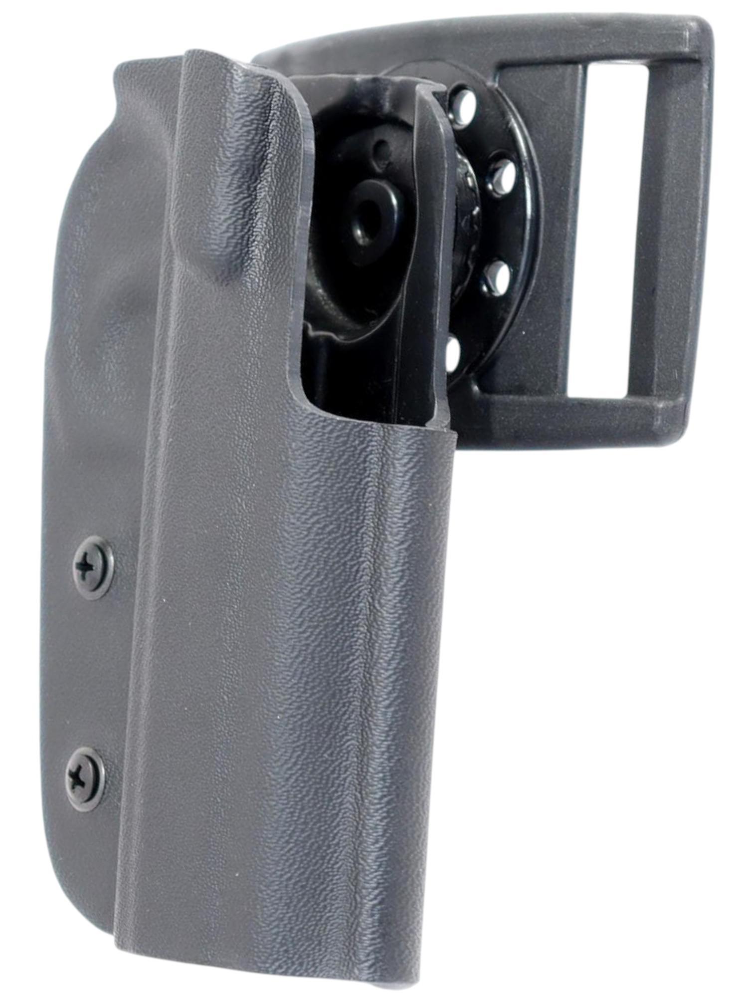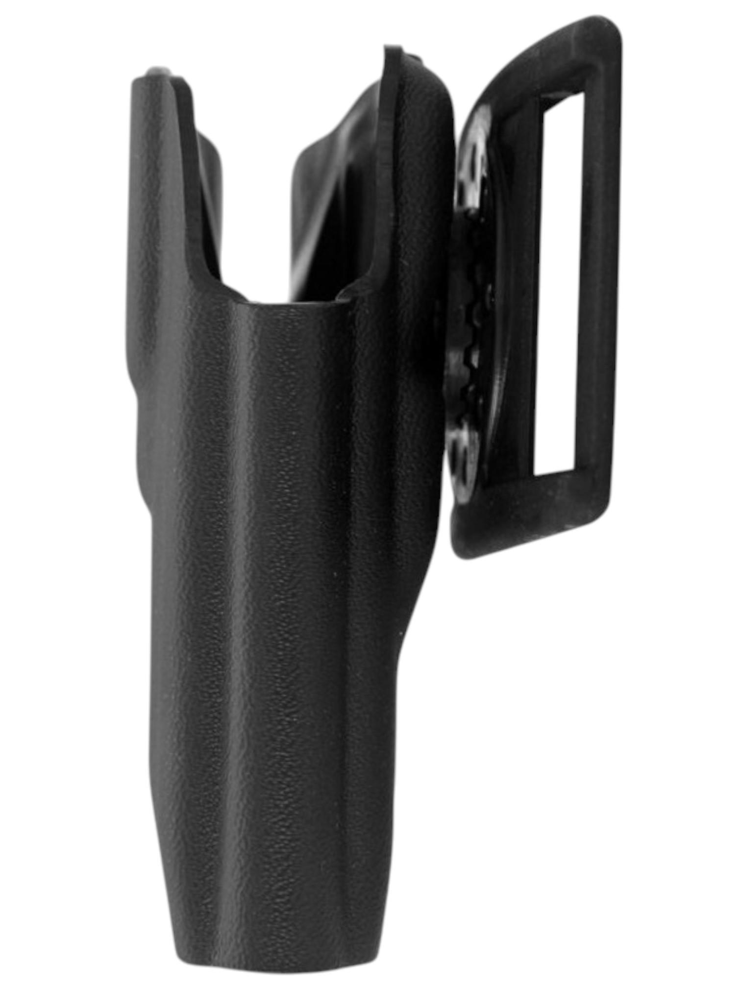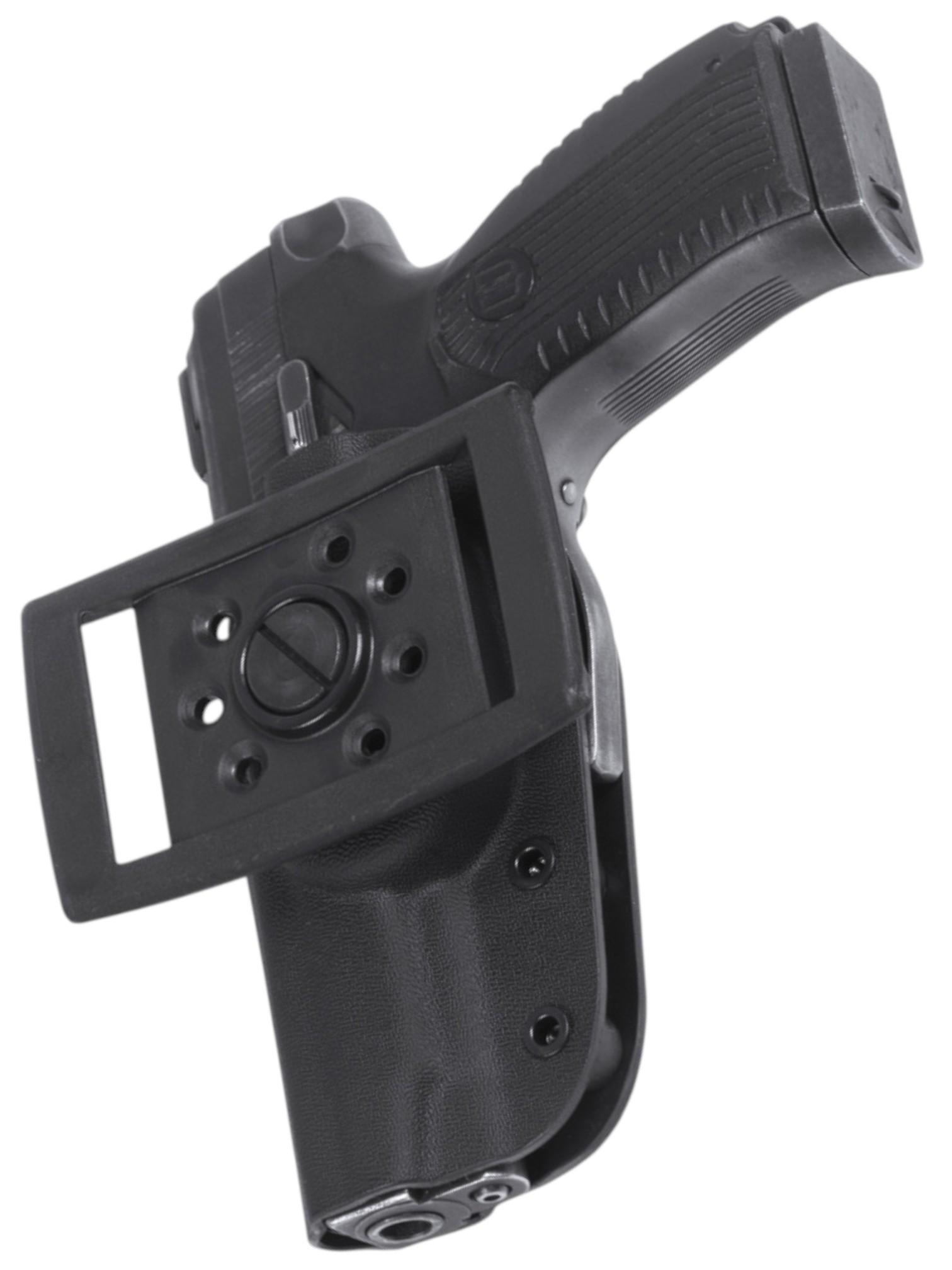 Кобура выполнена из ударопрочного АВС пластика. Имеет регулировку усилия удержания пистолета в кобуре.