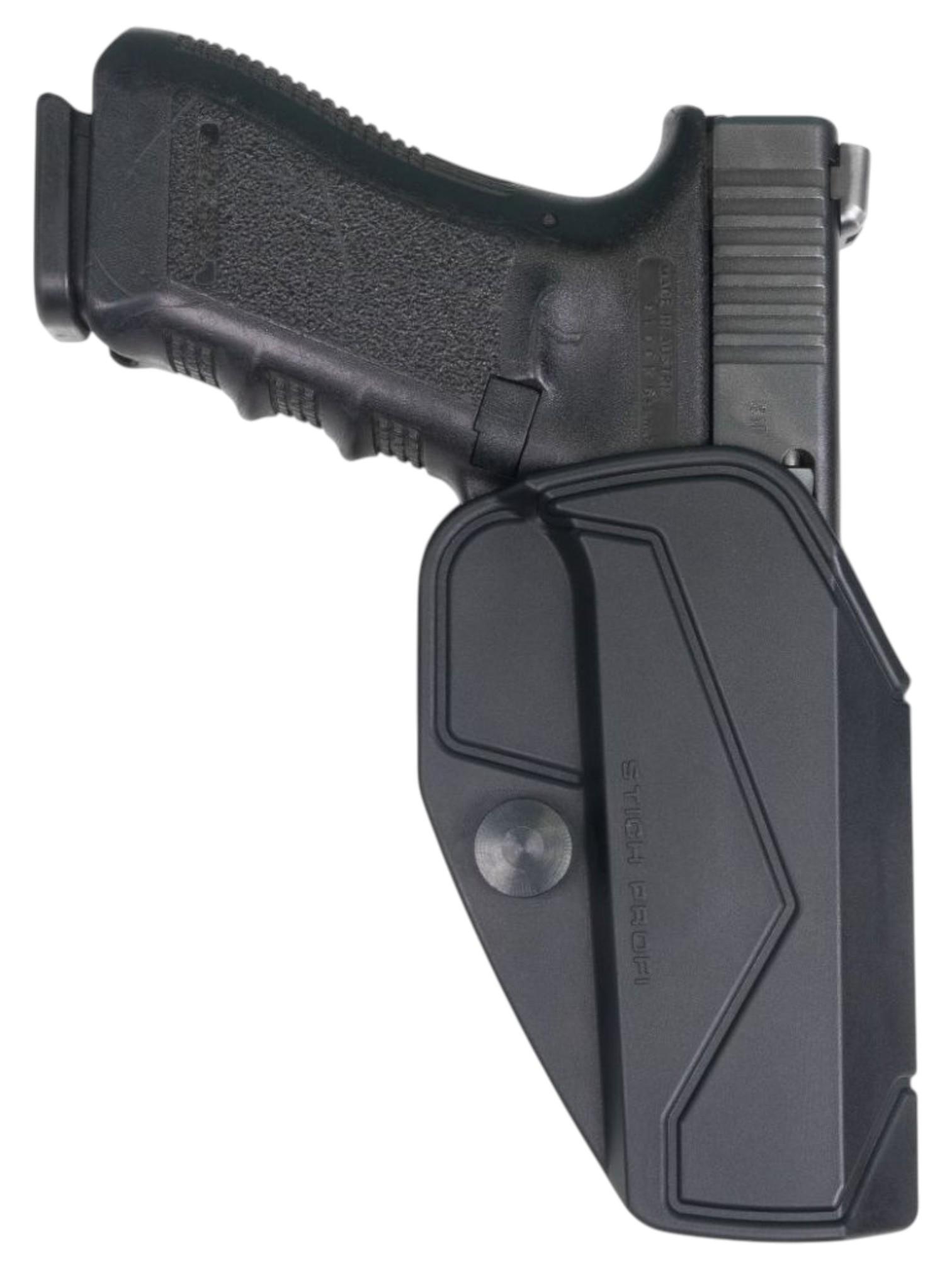 Кобура выполнена из высокопрочного, устойчивого к перепадам температур пластика. Кобура имеет удобный механизм регулировки плотности фиксации пистолета, не требующий инструментов. За счет отсутствия дополнительного хлястика фиксации извлечение оружия происходит намного быстрее, чем из кожаной кобуры.