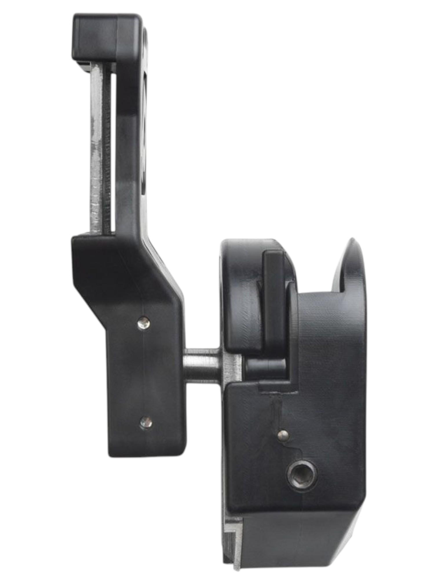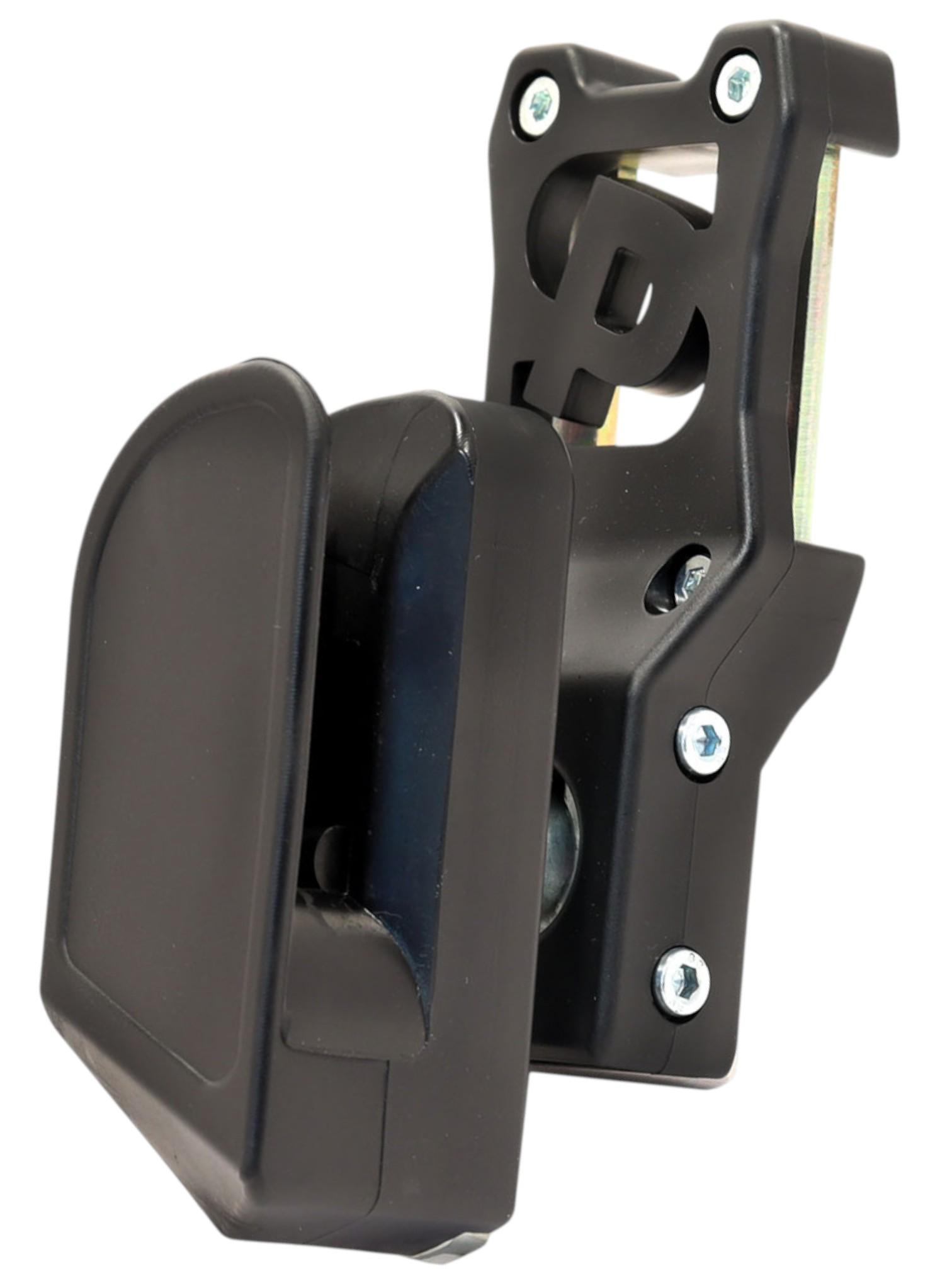 Кобура оснащена шарниром с запирающим механизмомна винтах. Таким образом обеспечивается жёсткость, устойчивость крепления и возможность менять положение кобуры относительно ремня (вплоть до 90°).
