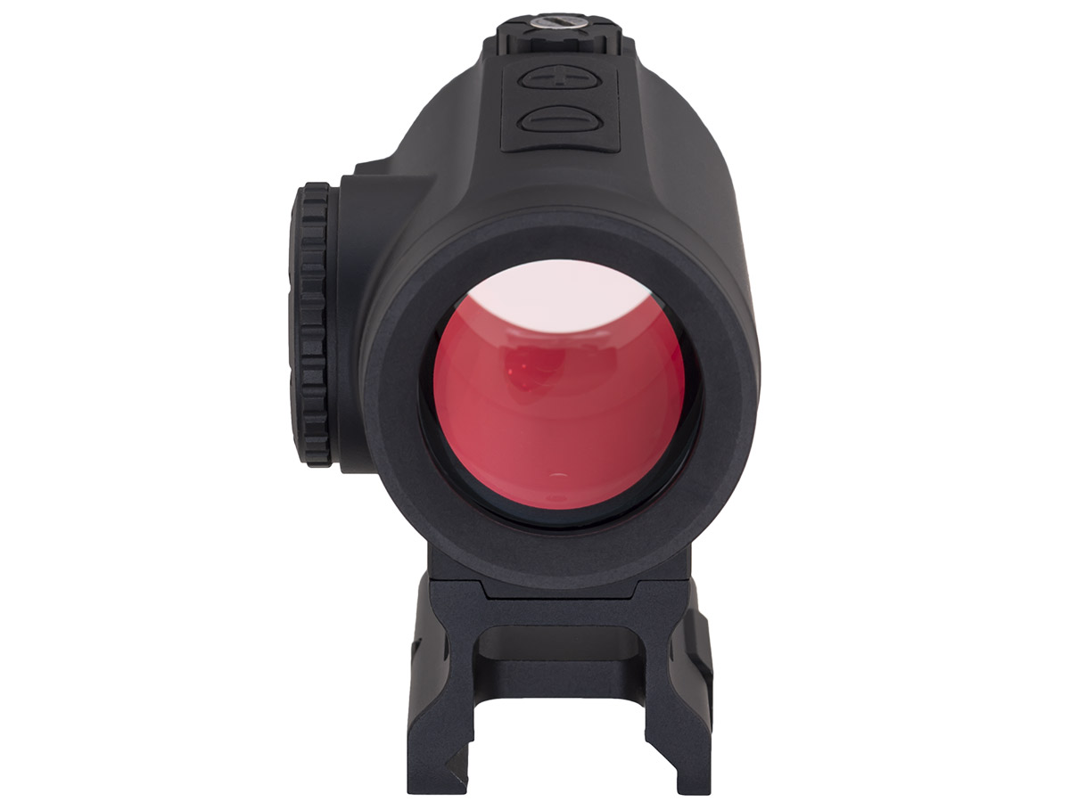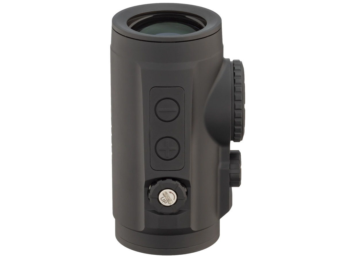 - Прицел оснащён кнопочным управлением яркостью с 10 режимами: 8 уровней для дневного освещения и 2 уровня для приборов ночного видения. Короткие нажатия изменяют яркость, а удержание — включает и выключает прицел.