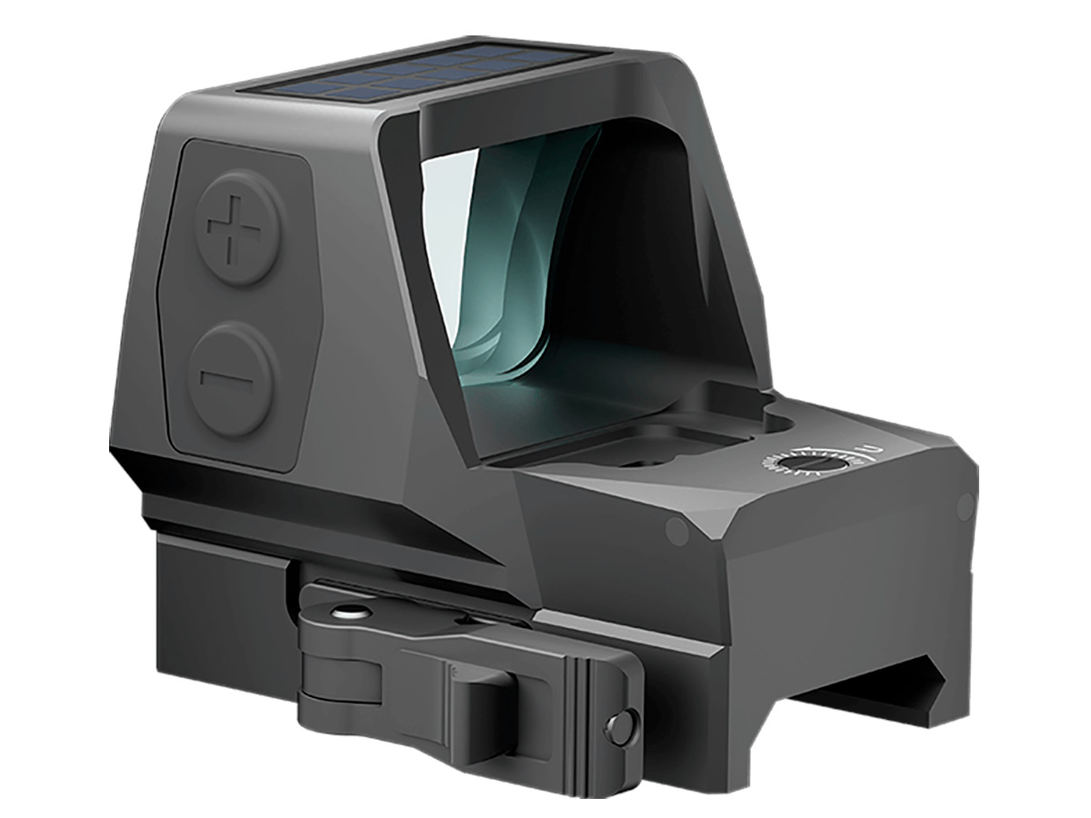 Вивер/ПикатинниОткрытый коллиматорный прицел Vector Optics Frenzy Plus 22x32 Solar — компактная модель с солнечной панелью, впечатляющим временем автономной работы до 80 000 часов, тремя сменными прицельными марками MRS. Устанавливается на планку Вивер/Пикатинни с помощью интегрированного быстросъёмного кронштейна, может быть установлен на карабины, ружья, арбалеты и пневматическое оружие. Прибор обладает простой, но проработанной оптической системой, исключающей возникновение визуальных искажений. Гарантируя простоту прицеливания, она позволяет поражать на коротких дистанциях даже движущиеся с большой скоростью цели.
