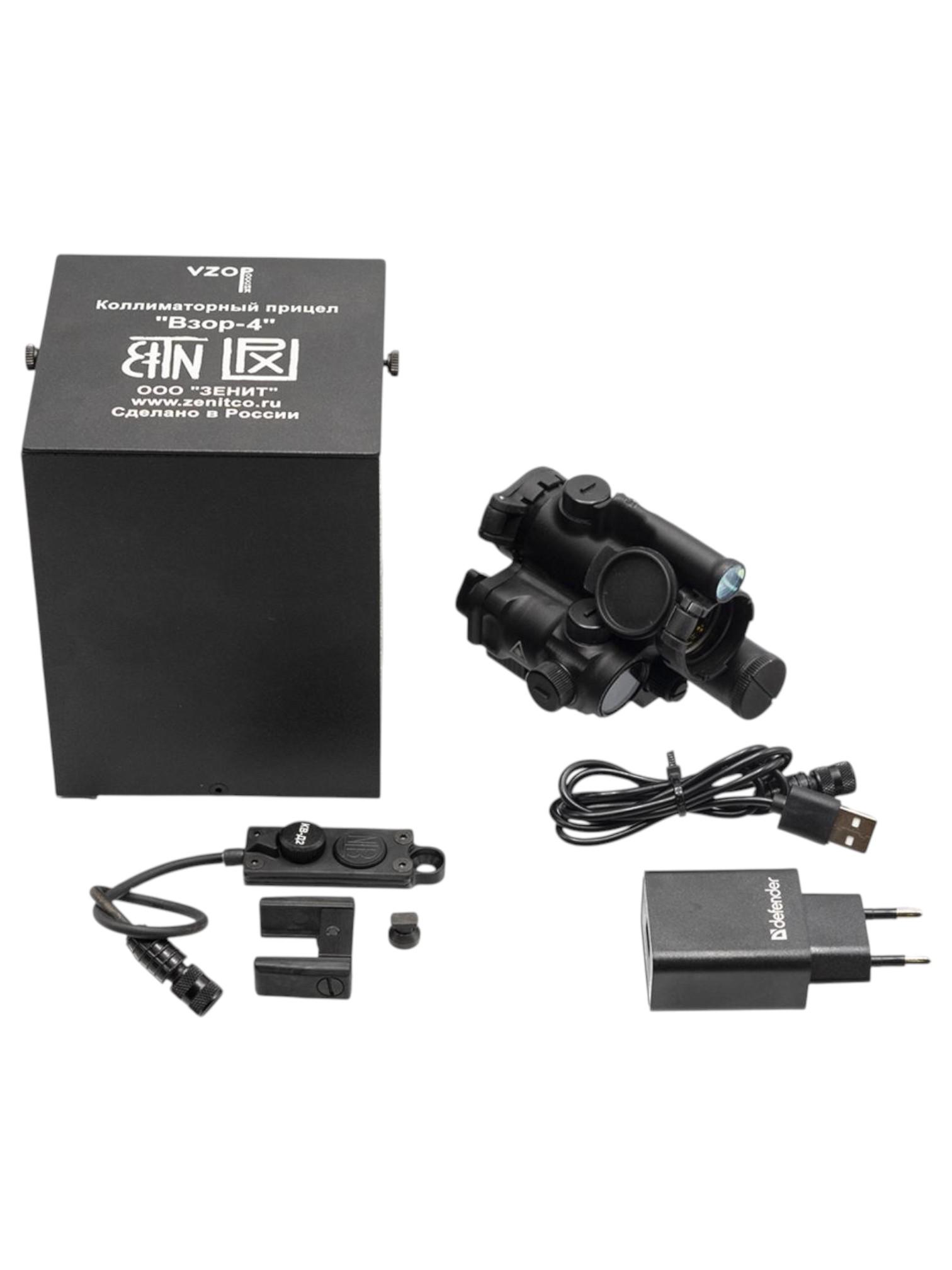 КрасныйКоллиматорный прицел «Взор-4» является комбинированным прибором, объединяющим в себе коллиматорный прицел, двухдиапазонный ЛЦУ и ИК-осветитель.