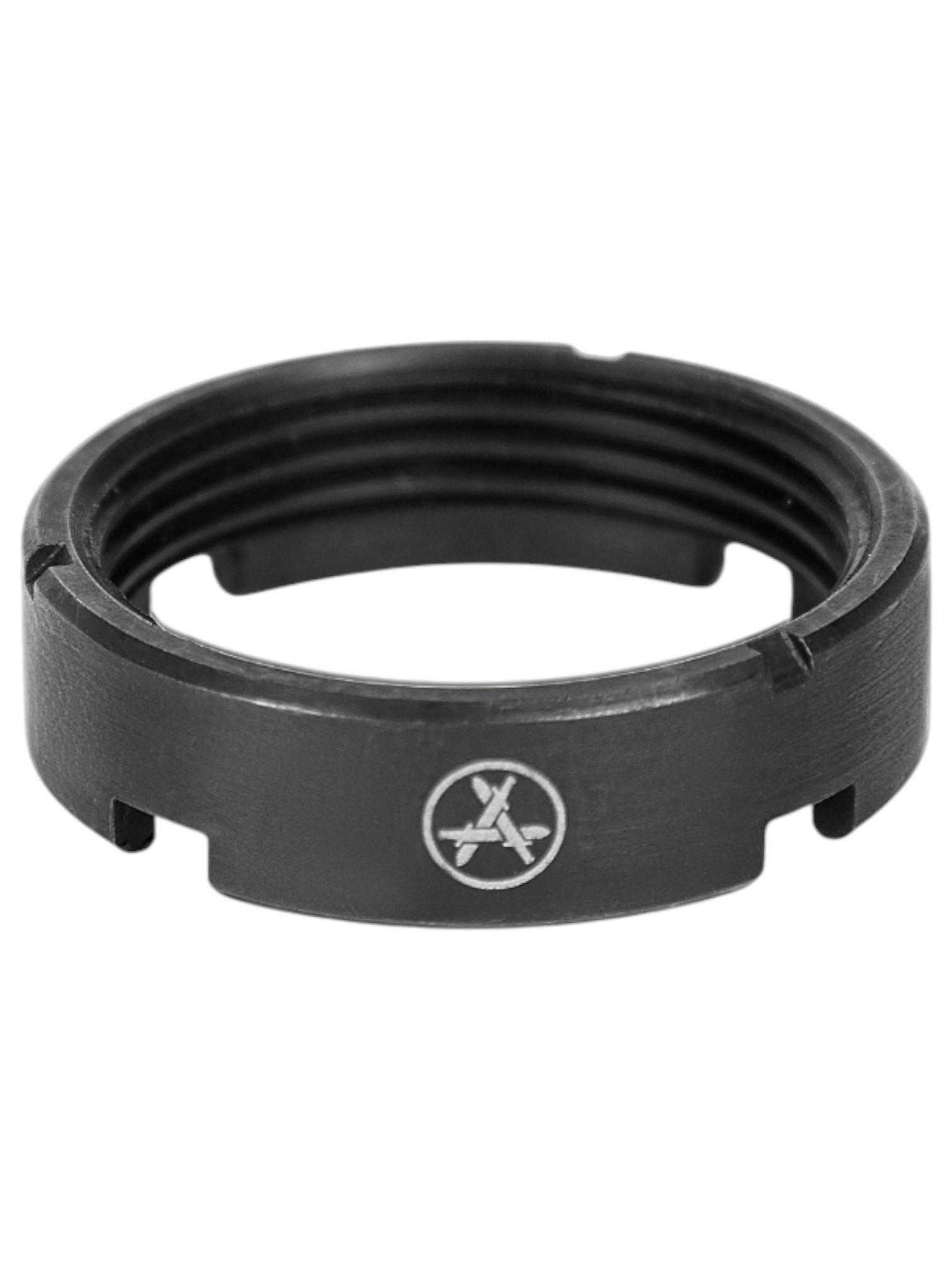 Контргайка служит для предотвращения прокручивания направляющей трубы приклада путем ее надежной фиксации в ствольной коробке или в адаптере приклада.