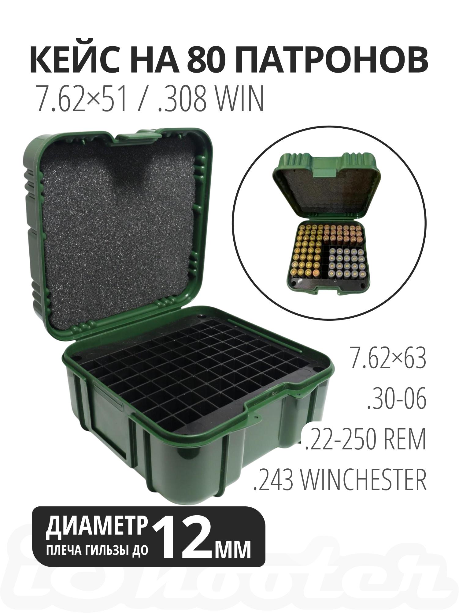 Коробка (кейс) для 80 патронов 7.62, 30-06, .308Win, 243, 22-250, A-elite