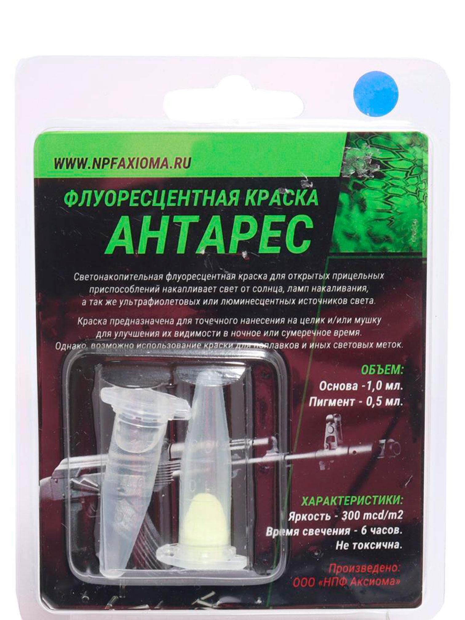 Краска предназначена для точечного нанесения на целик и/или мушку с целью улучшения их видимости в условиях ночи или сумерек. Ее также можно использовать для покраски поплавков и других световых меток.