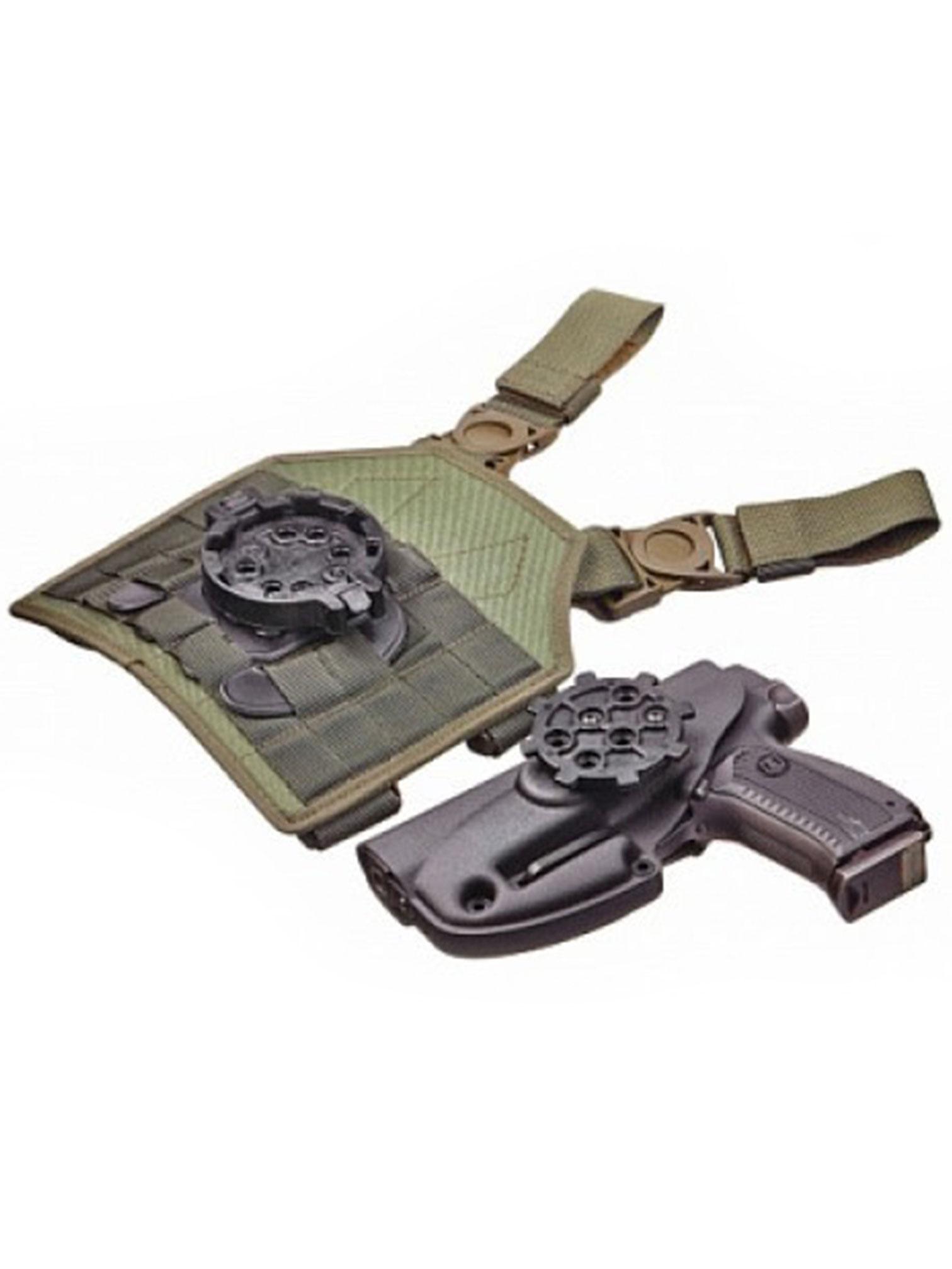 MOLLEБыстросъемный адаптер «Мельница» для крепления пластиковых кобур в любом месте под различным углом. Адаптер подходит к пластиковым кобурам с креплением teck-lock.