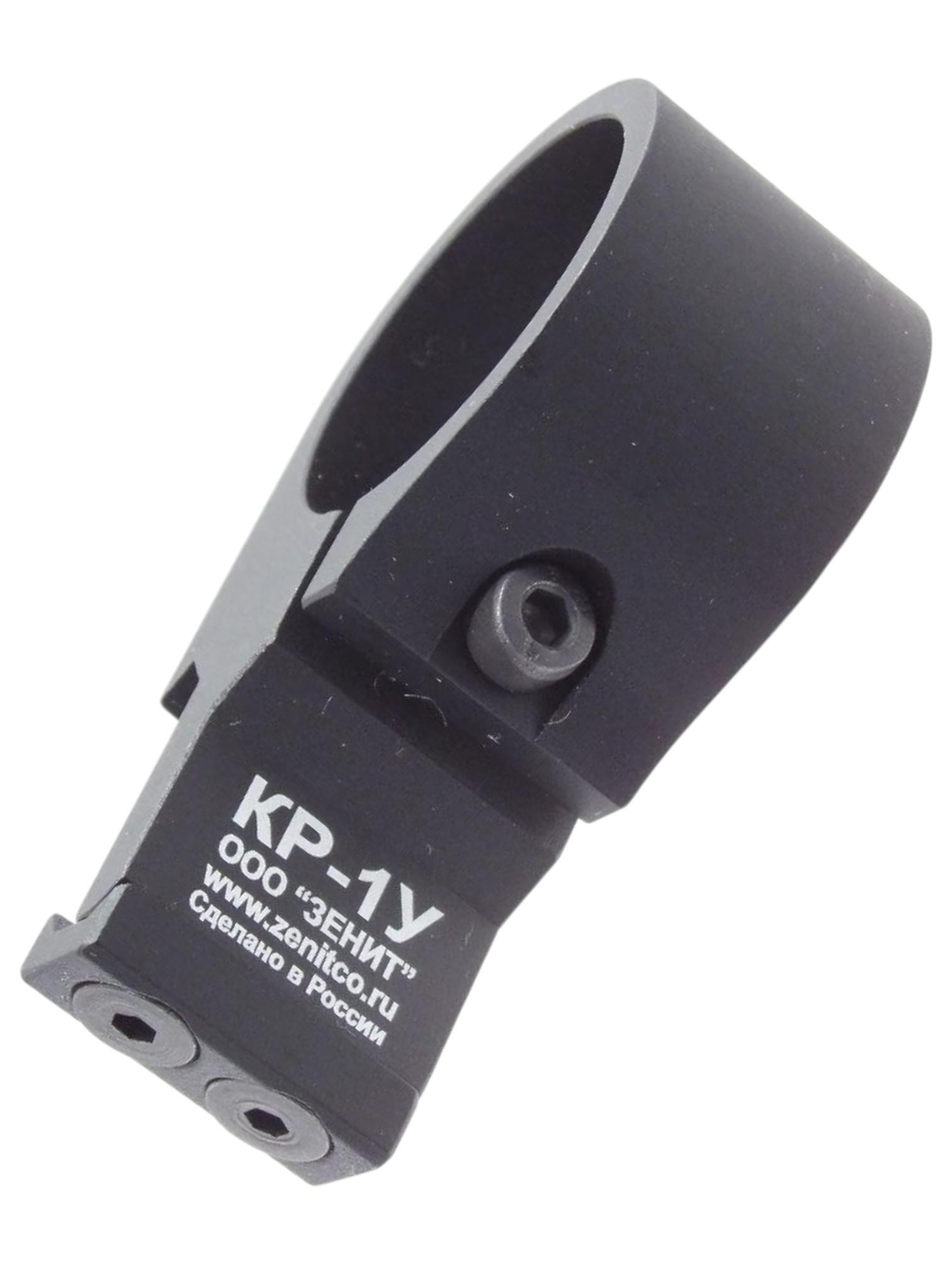 АлюминийКрепление КР-1У изготовлено из сплава алюминия Д16Т с покрытием черного цвета. КР-1У предназначено для выноса фонарей "Зенитка-2" и "Зенитка-2Д" за планку Пикатинни.