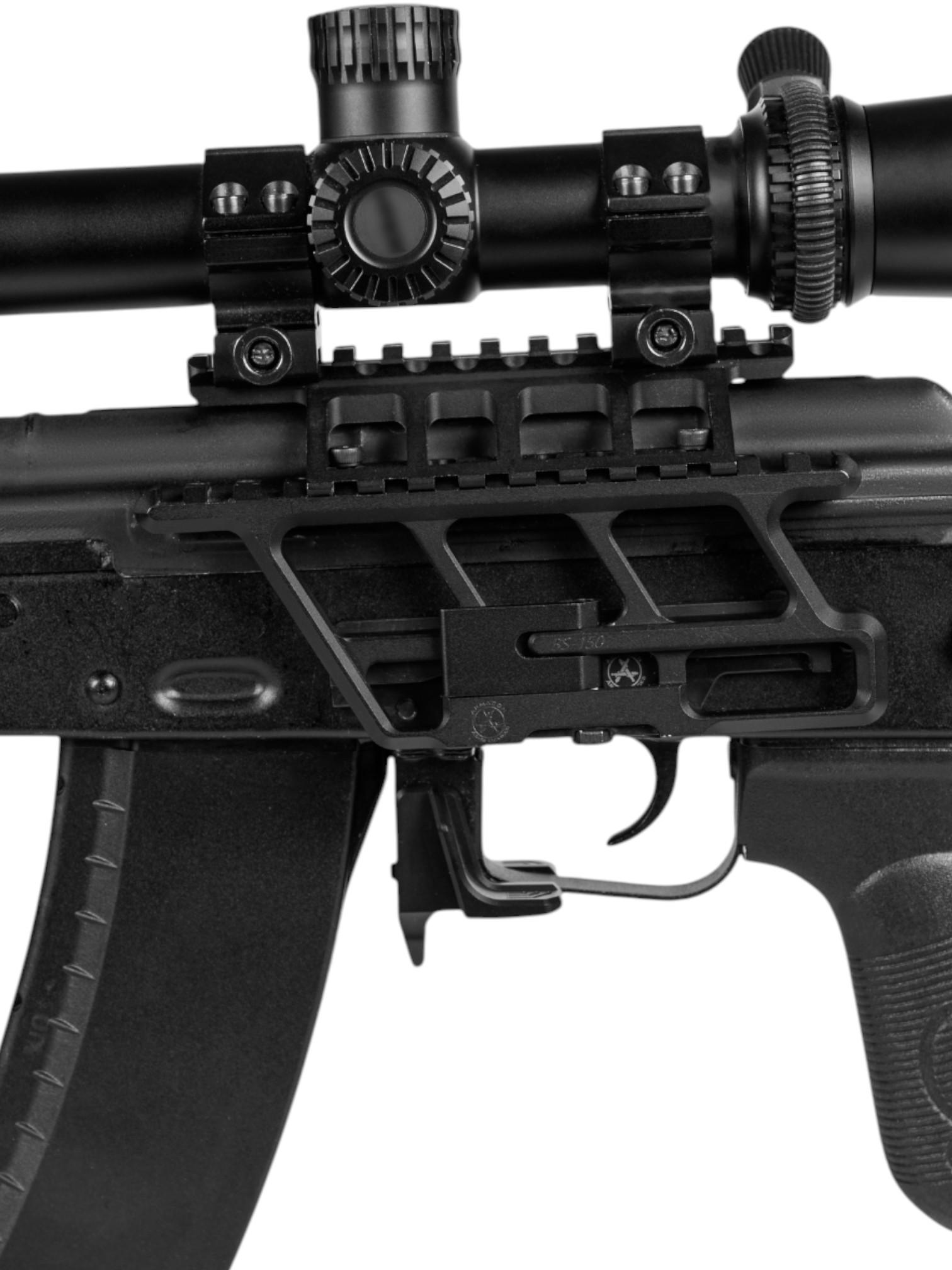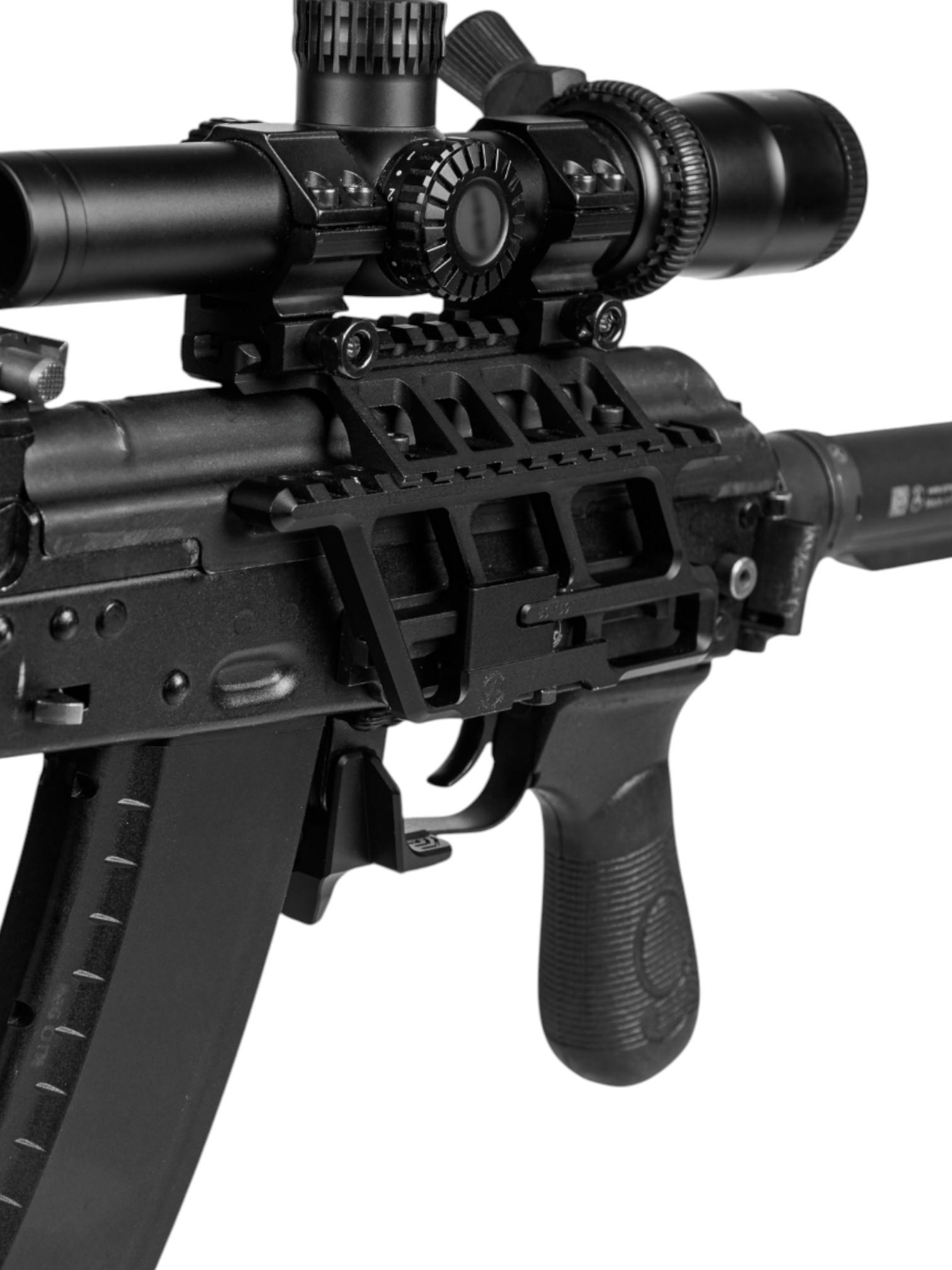 Конструкция предполагает возможность установки прицела прямо на кронштейн, без необходимости использования родной установочной базы. Также возможна заменить верхнюю часть кронштейна на планку Пикатинни либо кольца для оптики (ожидаются в продаже). Таким образом это решение позиционируется как универсальное и пригодное к использованию с разнообразным обвесом.