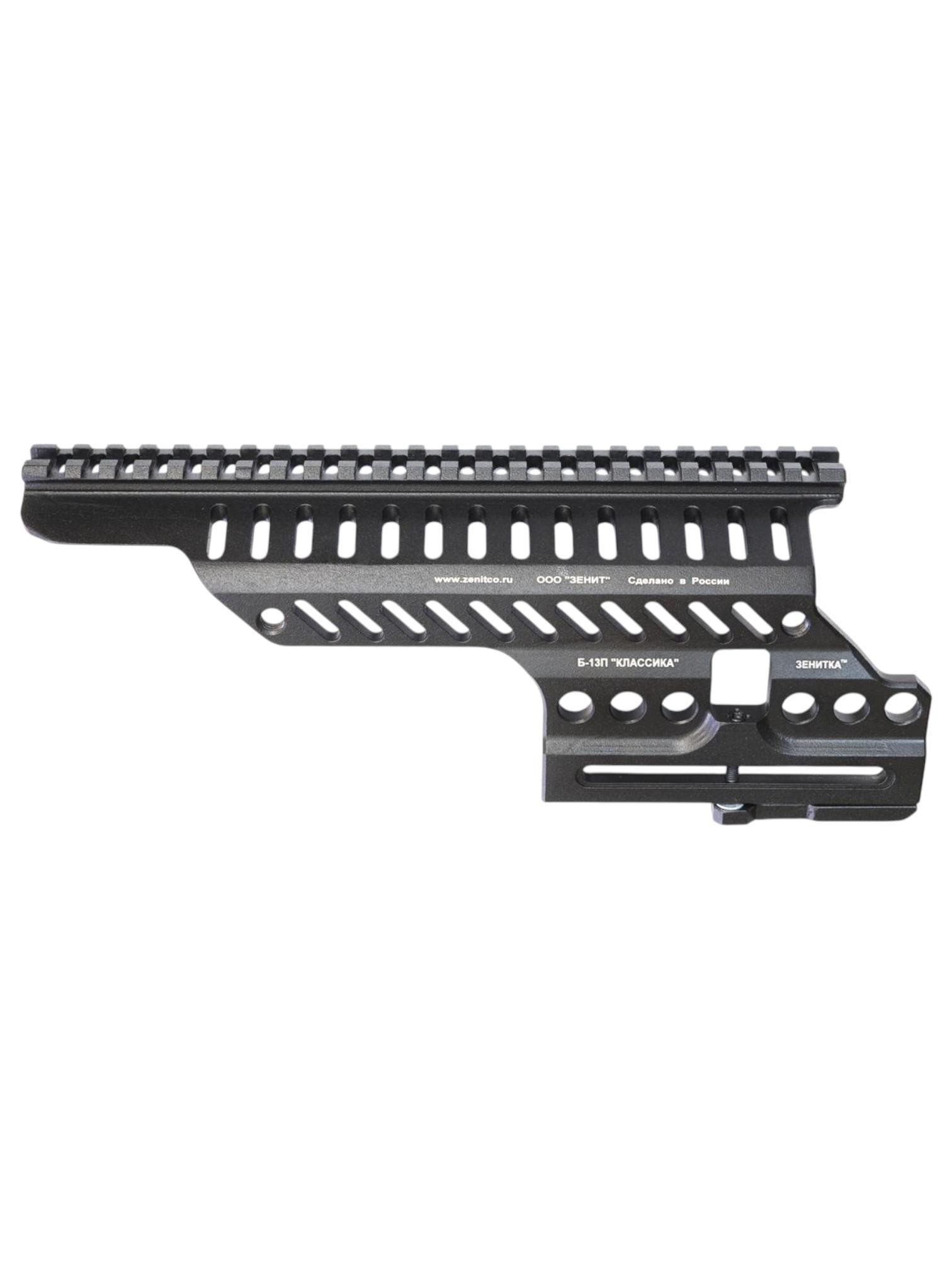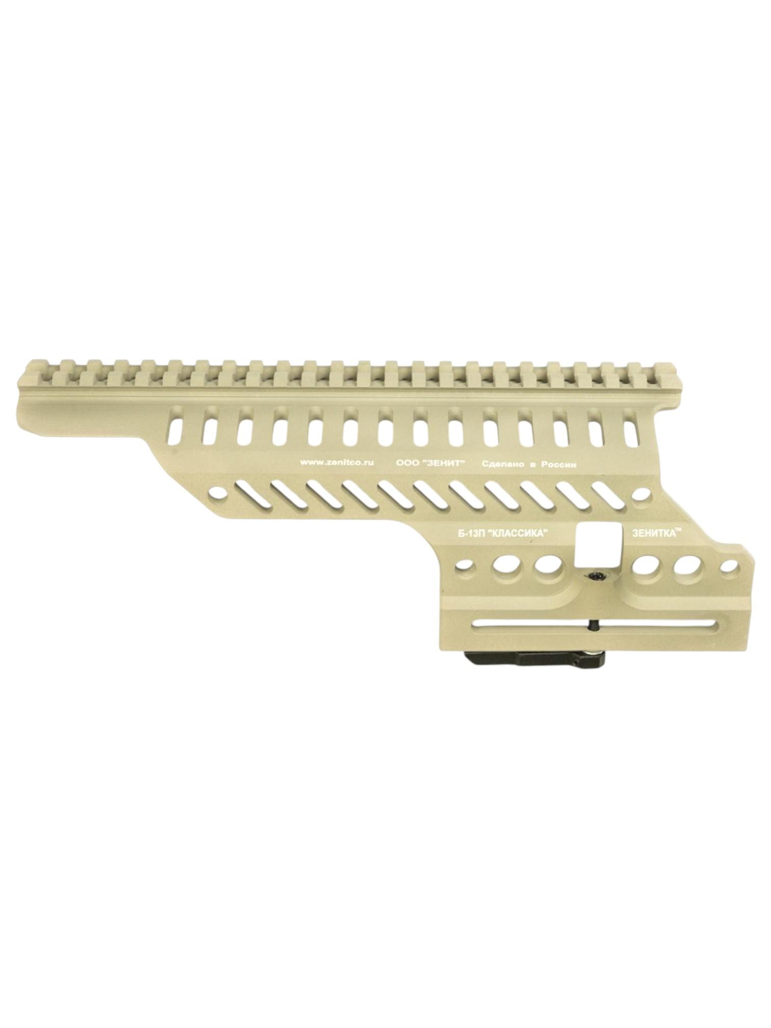 Кронштейн над ствольной коробкой Б-13П является цельнофрезерованным изделием, изготовленным из сплава Д16Т с покрытием черного цвета или цвета пустыня.