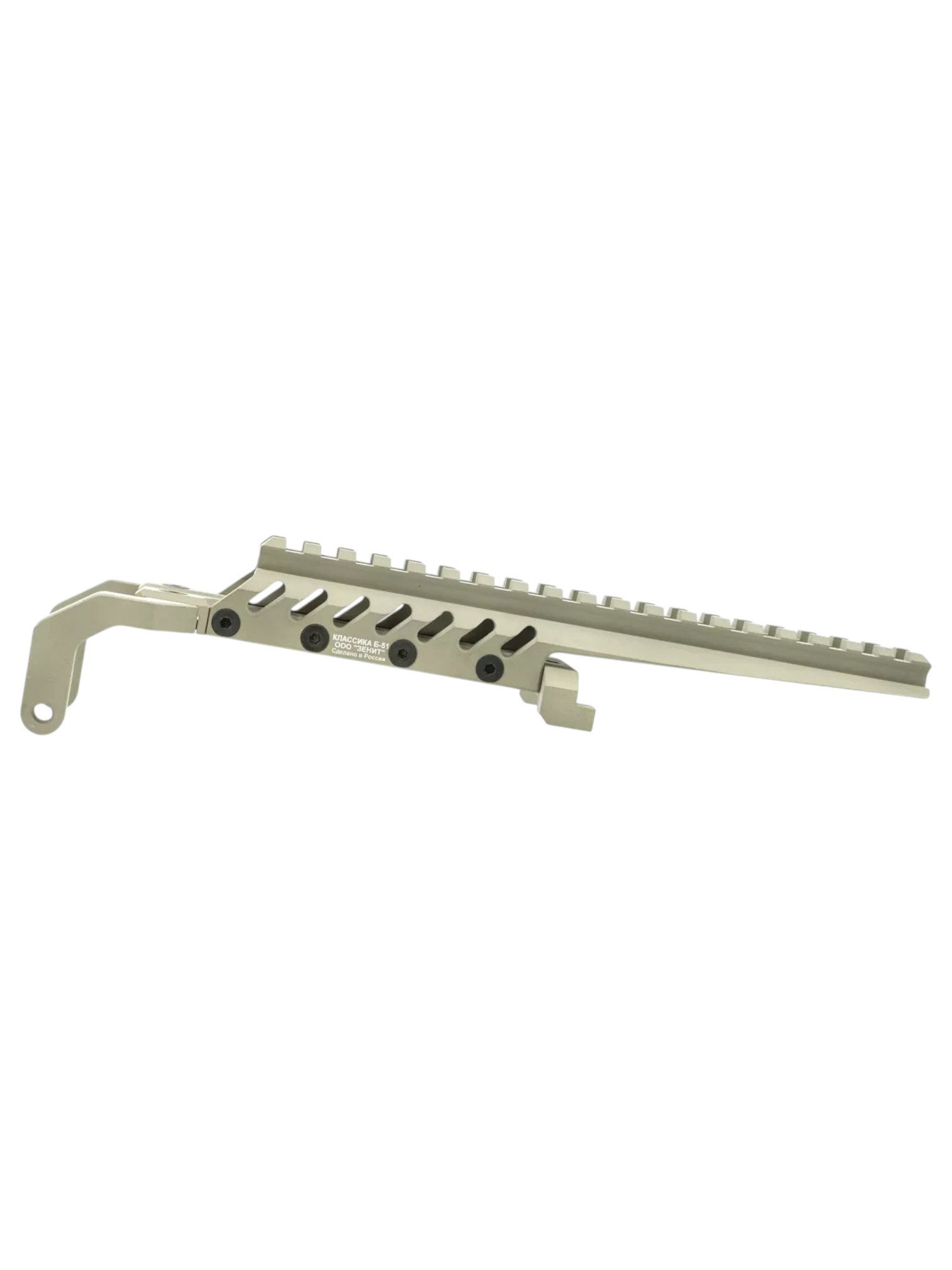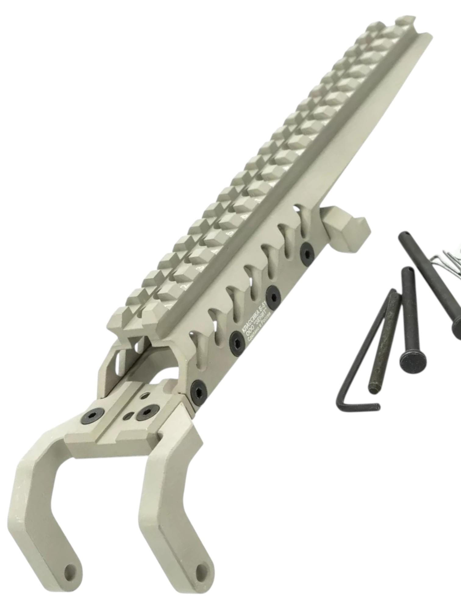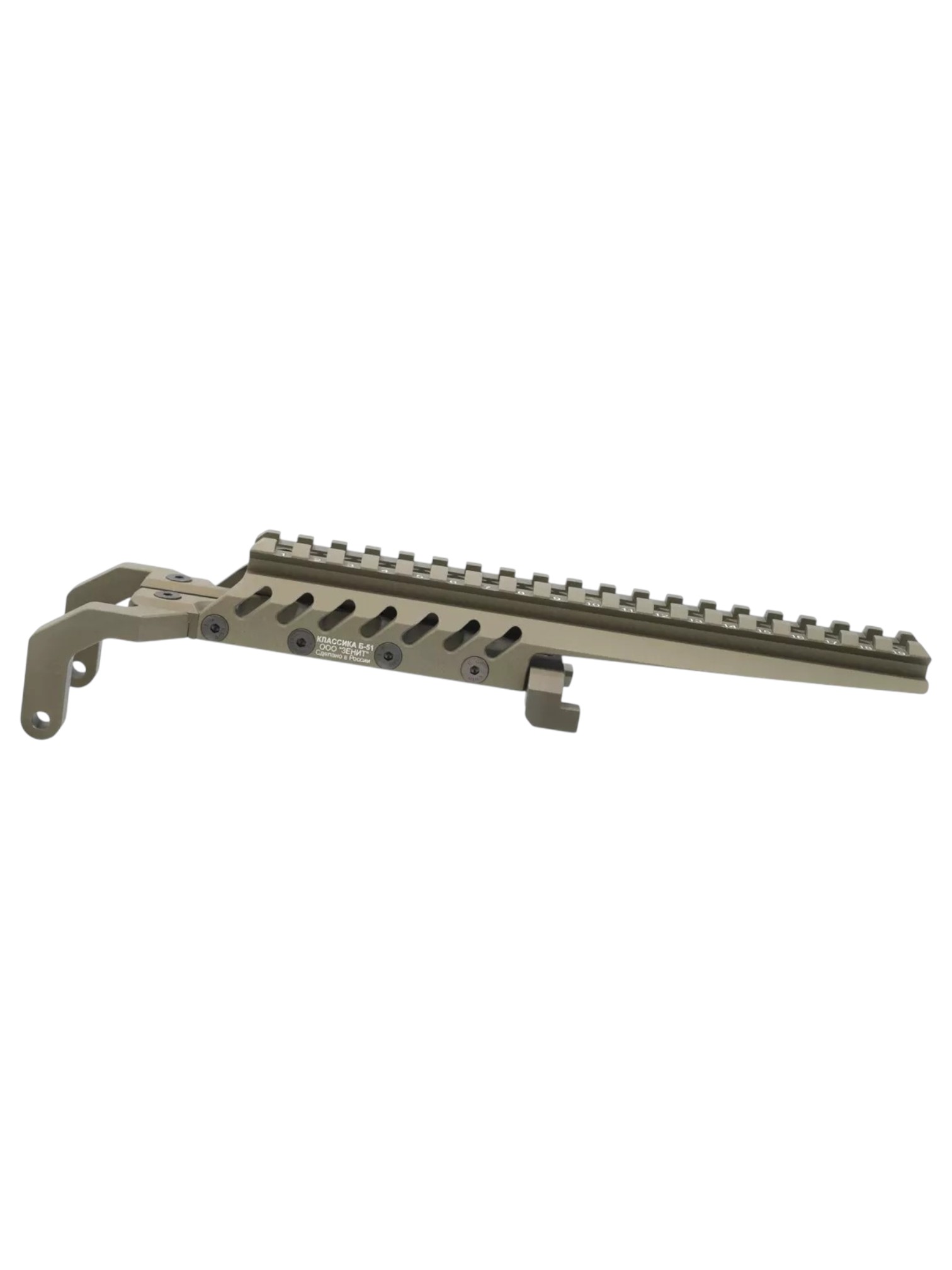 - Кронштейн над крышкой ствольной коробки пулемета Калашникова Б-51 является фрезерованным изделием, изготовленным из сплава алюминия Д16Т с покрытием черного или песочного цвета.