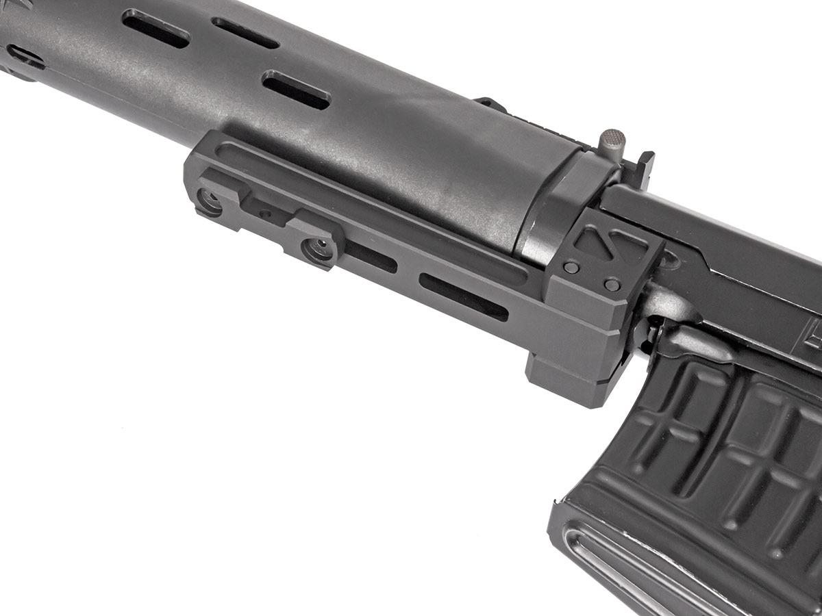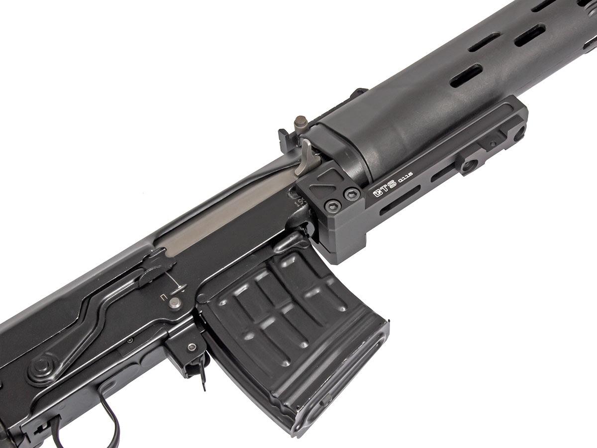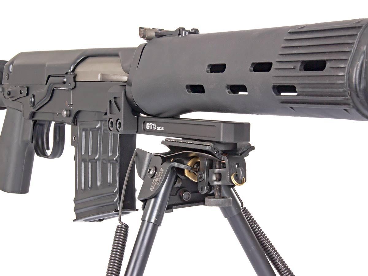 Кронштейн GTS Q.115 крепится к винтовке СВД / Тигр в выборки на боковых поверхностях ствольной коробки.