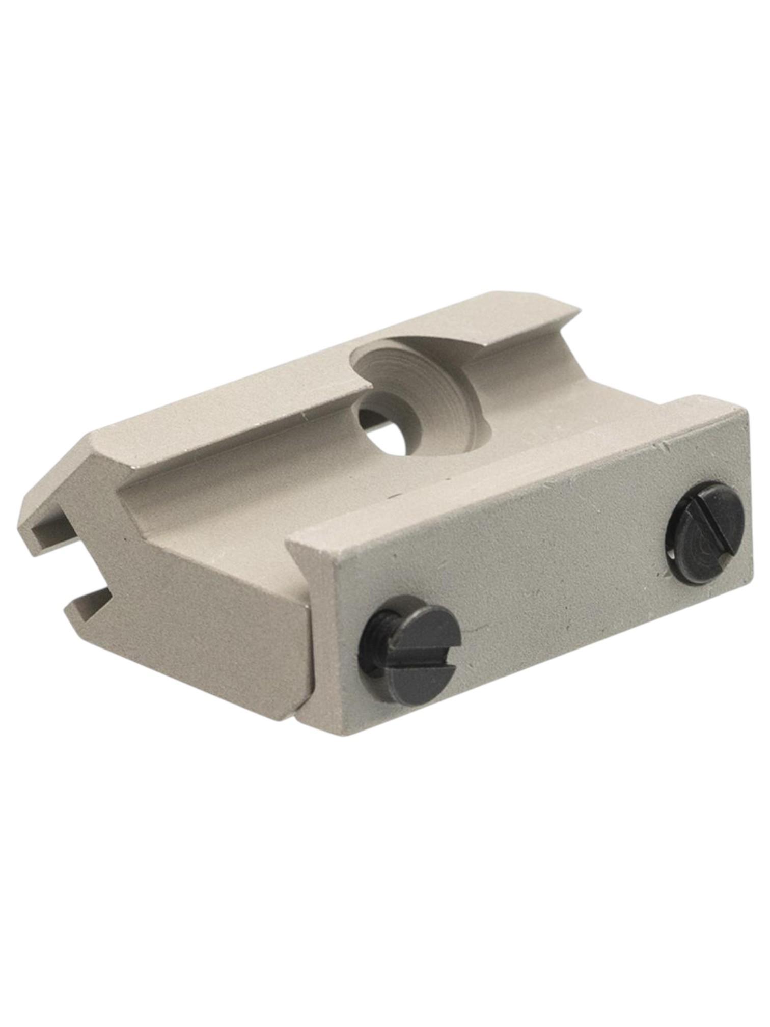 Монтируется на планку Пикатинни с помощью прижимной планки и двух винтов.