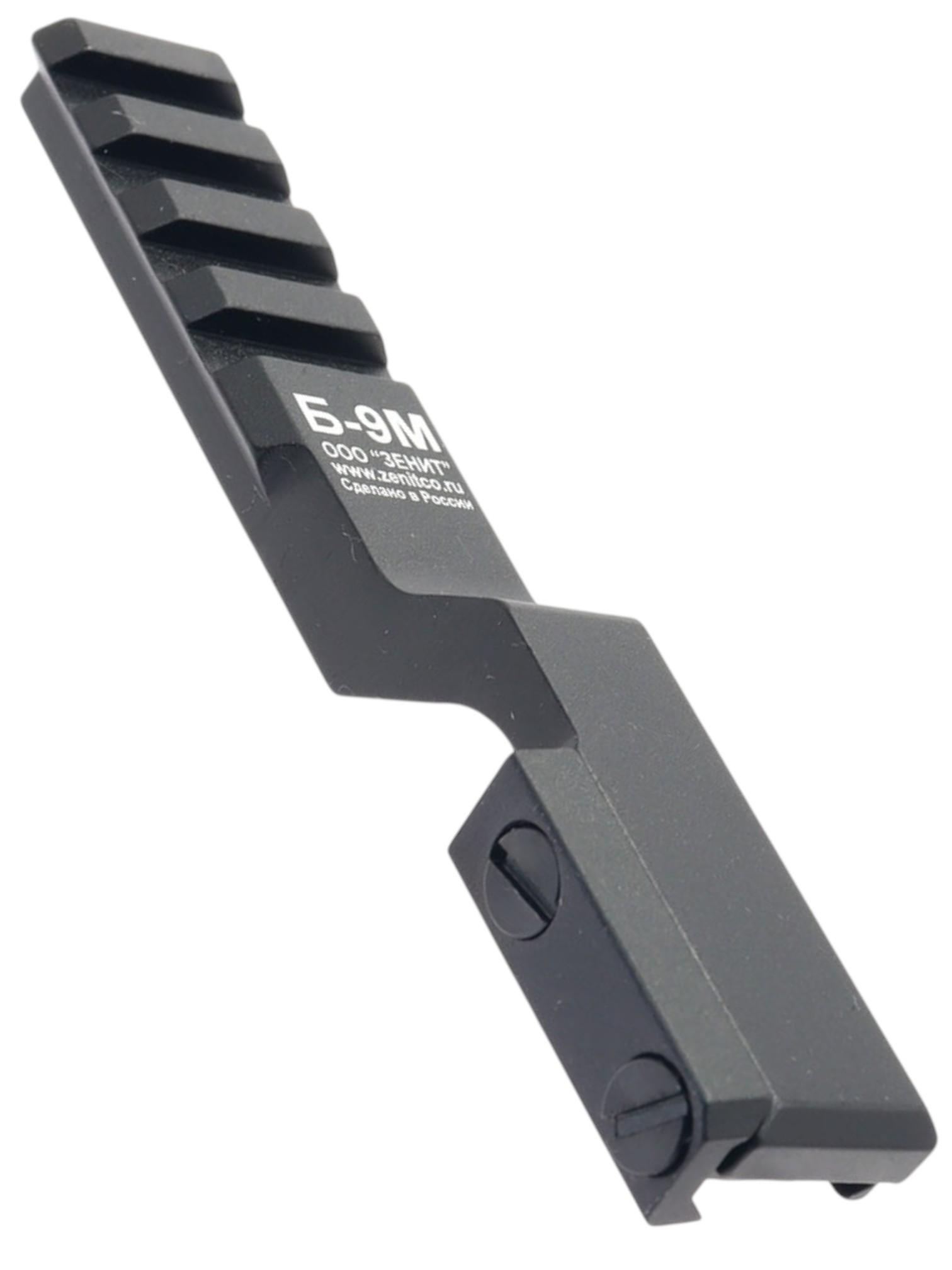 Кронштейн Б-9М ппозволяет установить фонари серии Клещ (https://ishooter.ru/preset/fonari-zenit) и ЛЦУ максимально близко к стволу оружия.