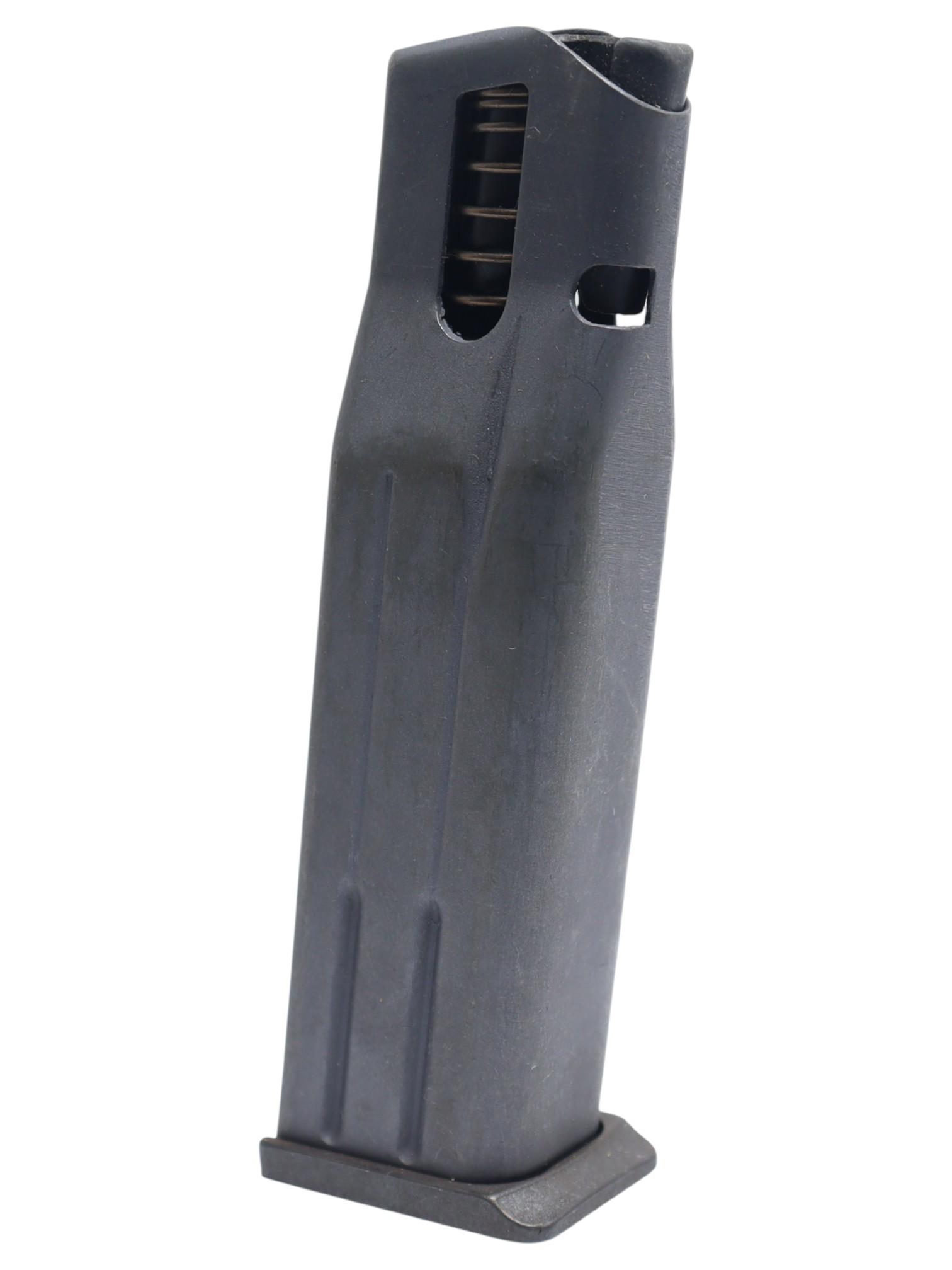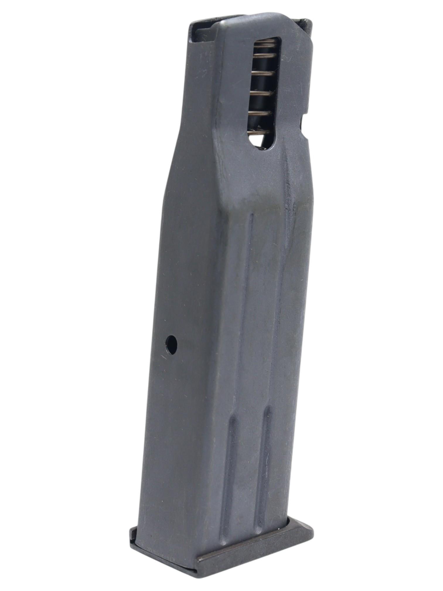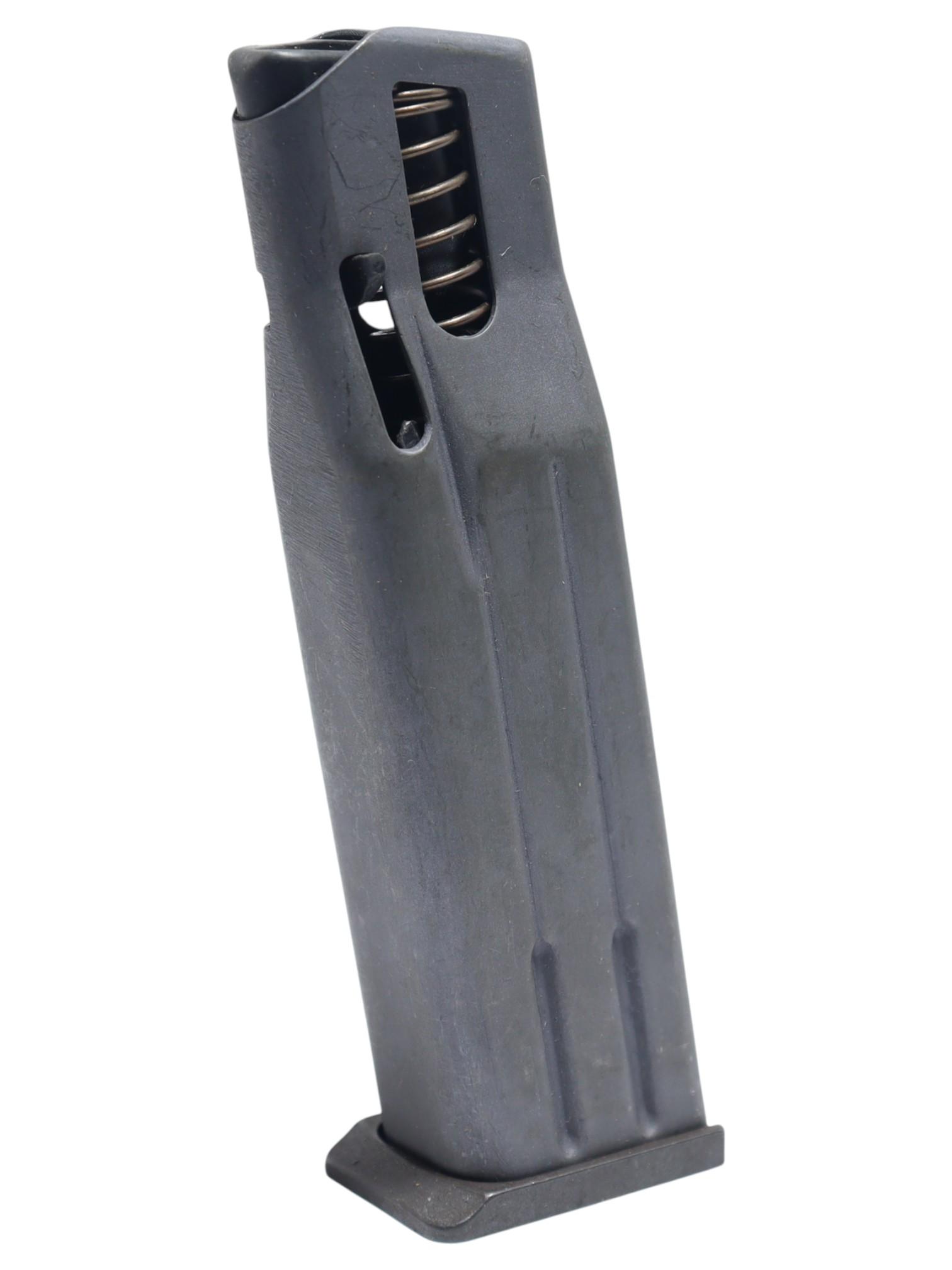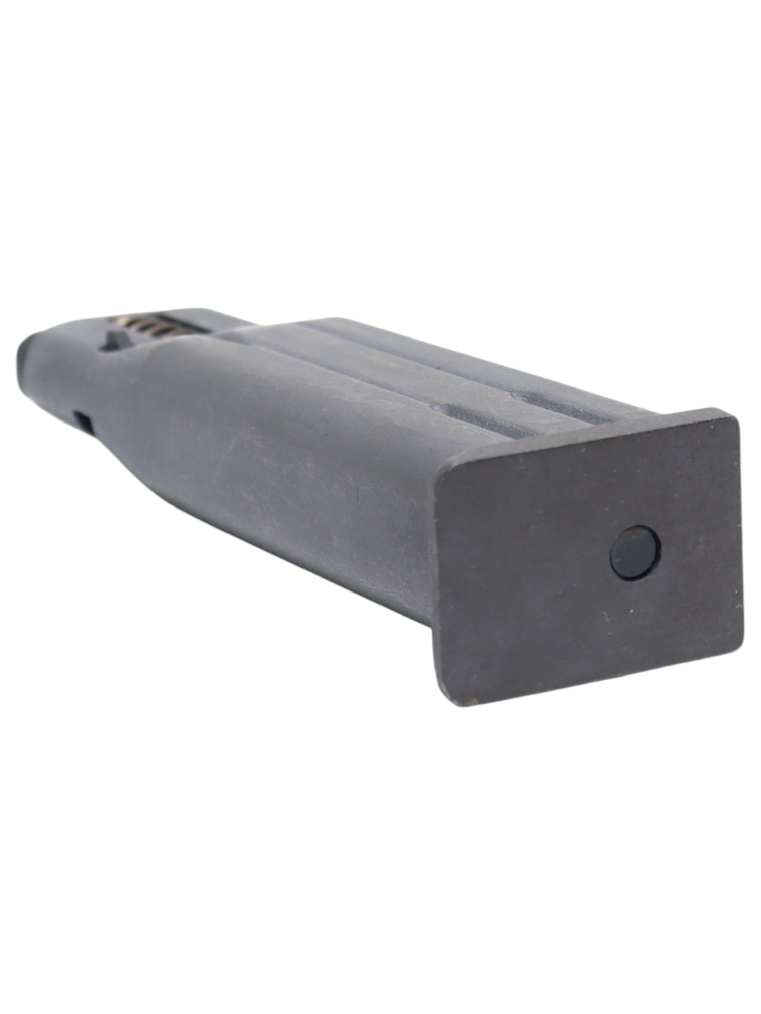Стальной магазин для патронов формата 9 mm PA. Подходит для пистолетов с кнопочной защёлкой магазина (внешняя кнопка на корпусе магазина).