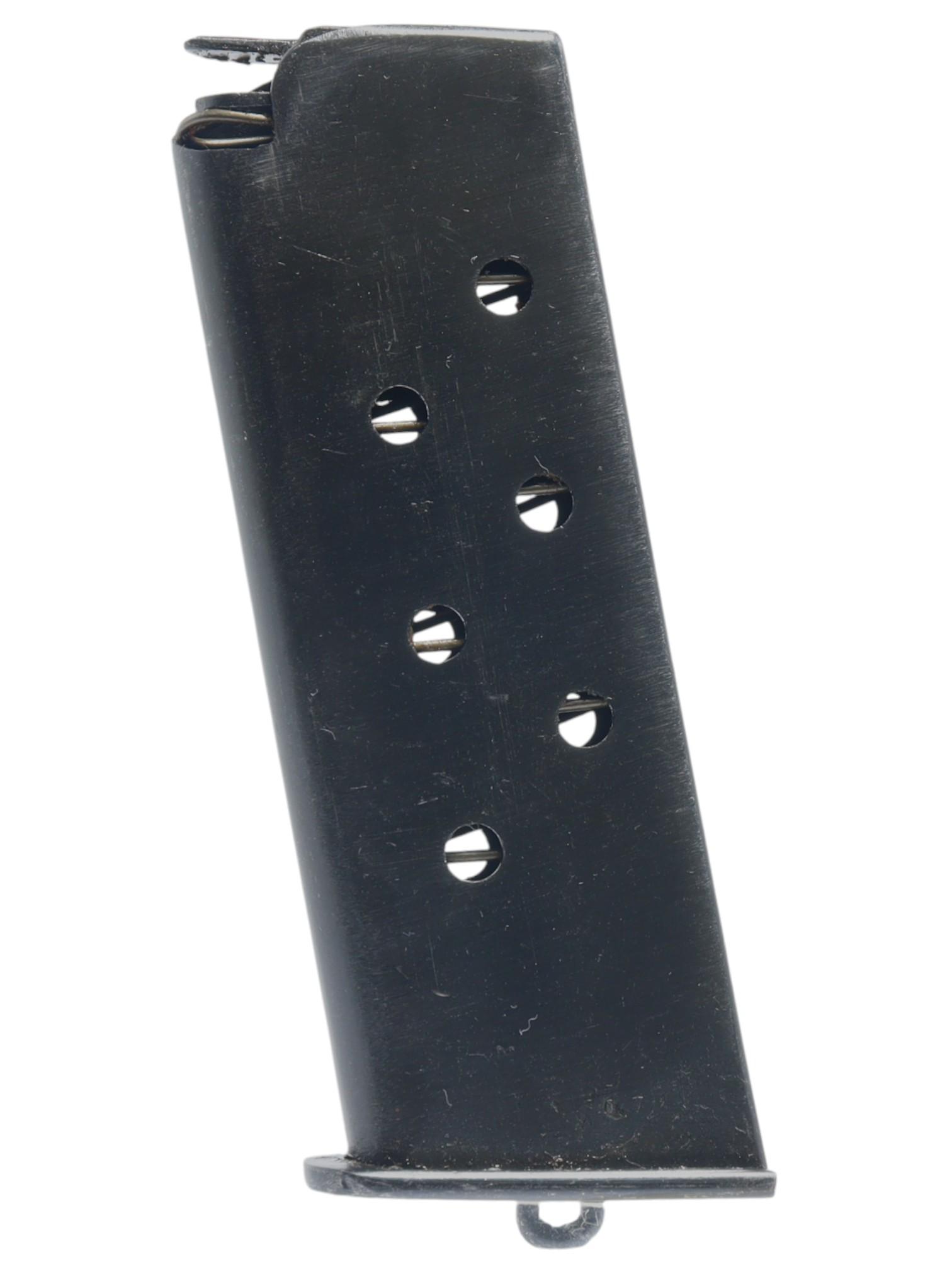 Конструкция полностью соответствует штатному образцу: магазин рассчитан на 8 патронов 7,62×25, имеет жёсткий корпус и надёжную пружину.