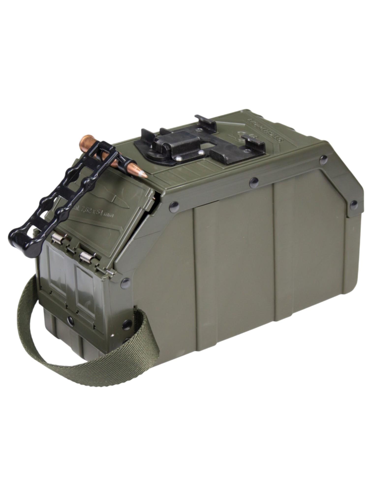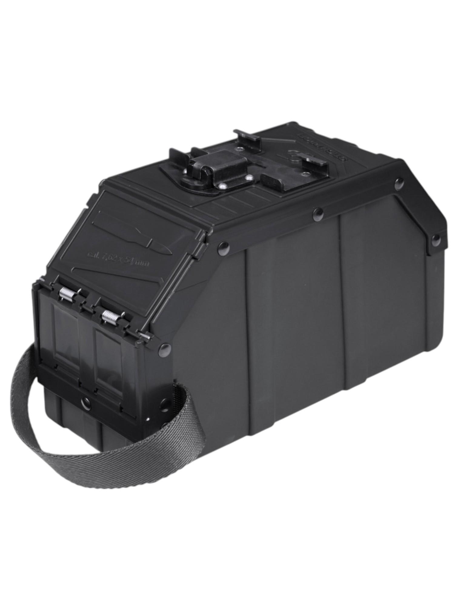 Вместимость — 100 патронов, обеспечивает длительную и бесперебойную работу. Благодаря использованию инновационных материалов, короб значительно снижает звуки металлического лязга, что повышает удобство использования.