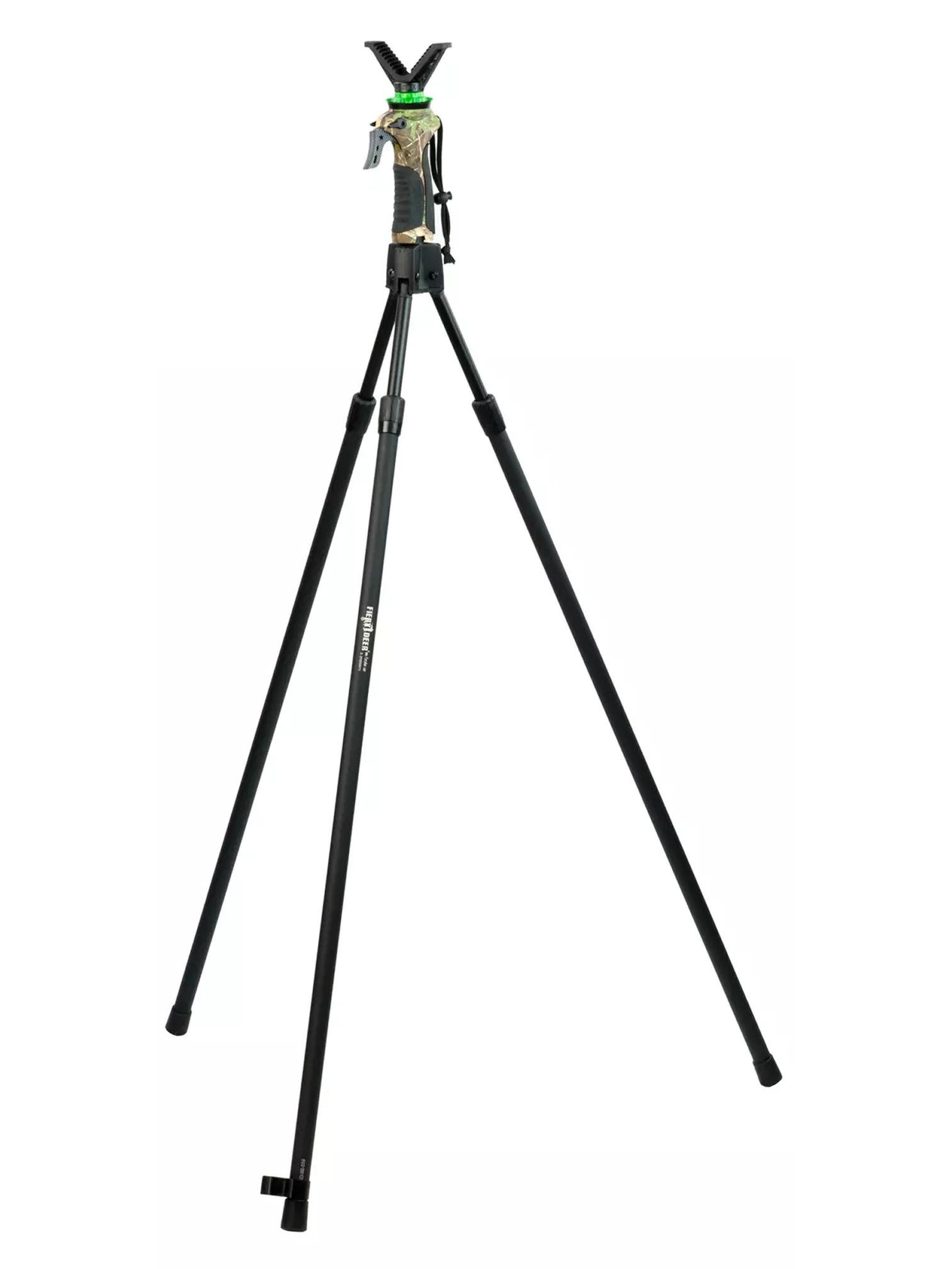 Система быстрого выдвижения ног активируется одним нажатием на триггер. Высота регулируется в диапазоне от 90 до 180 см, позволяя стрелять как сидя, так и стоя. Надёжный механизм фиксации исключает случайное складывание опоры.