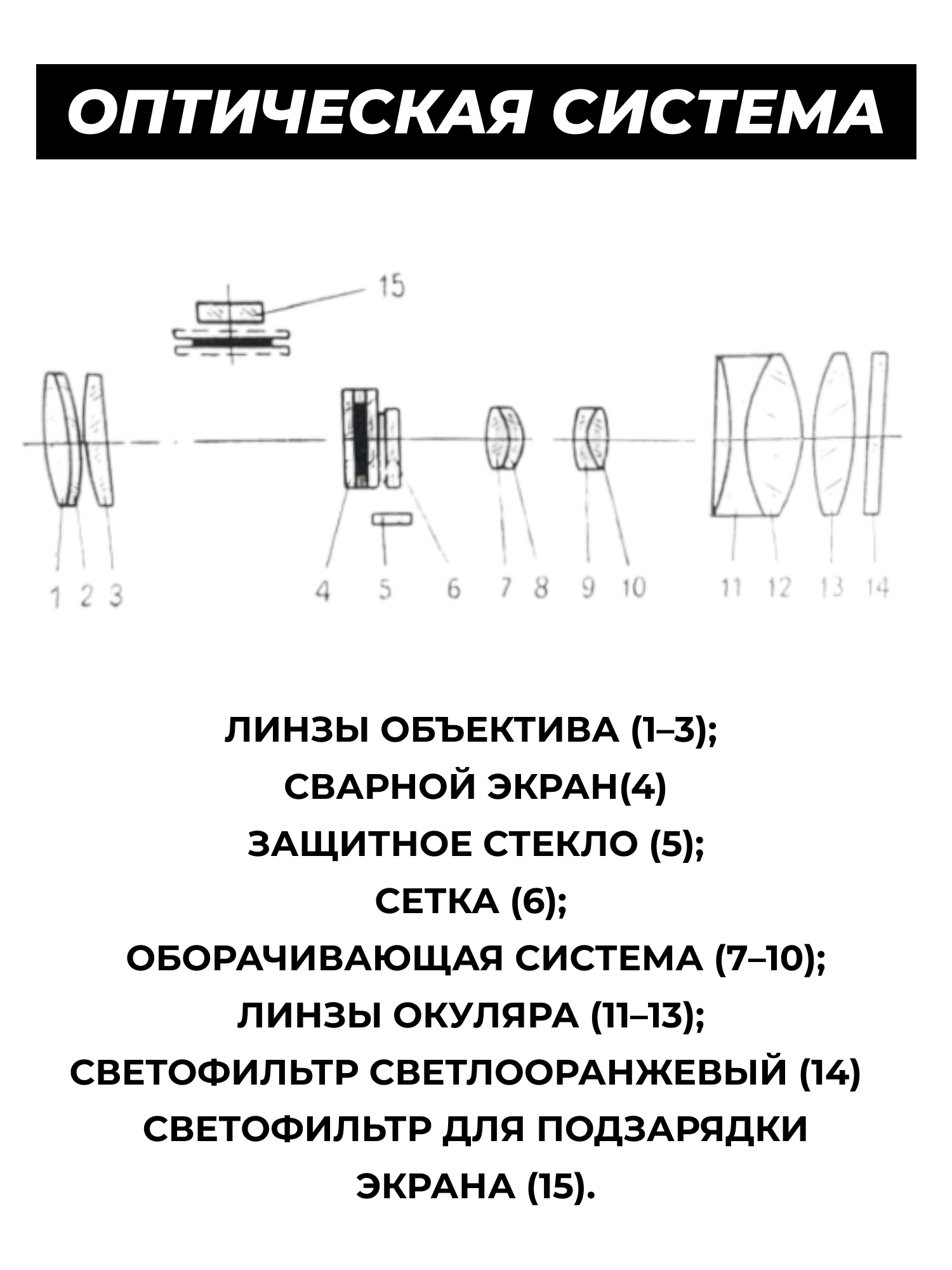 Оптическая система (см. фото) представляет собой монокулярную телескопическую систему с постоянным увеличением.
