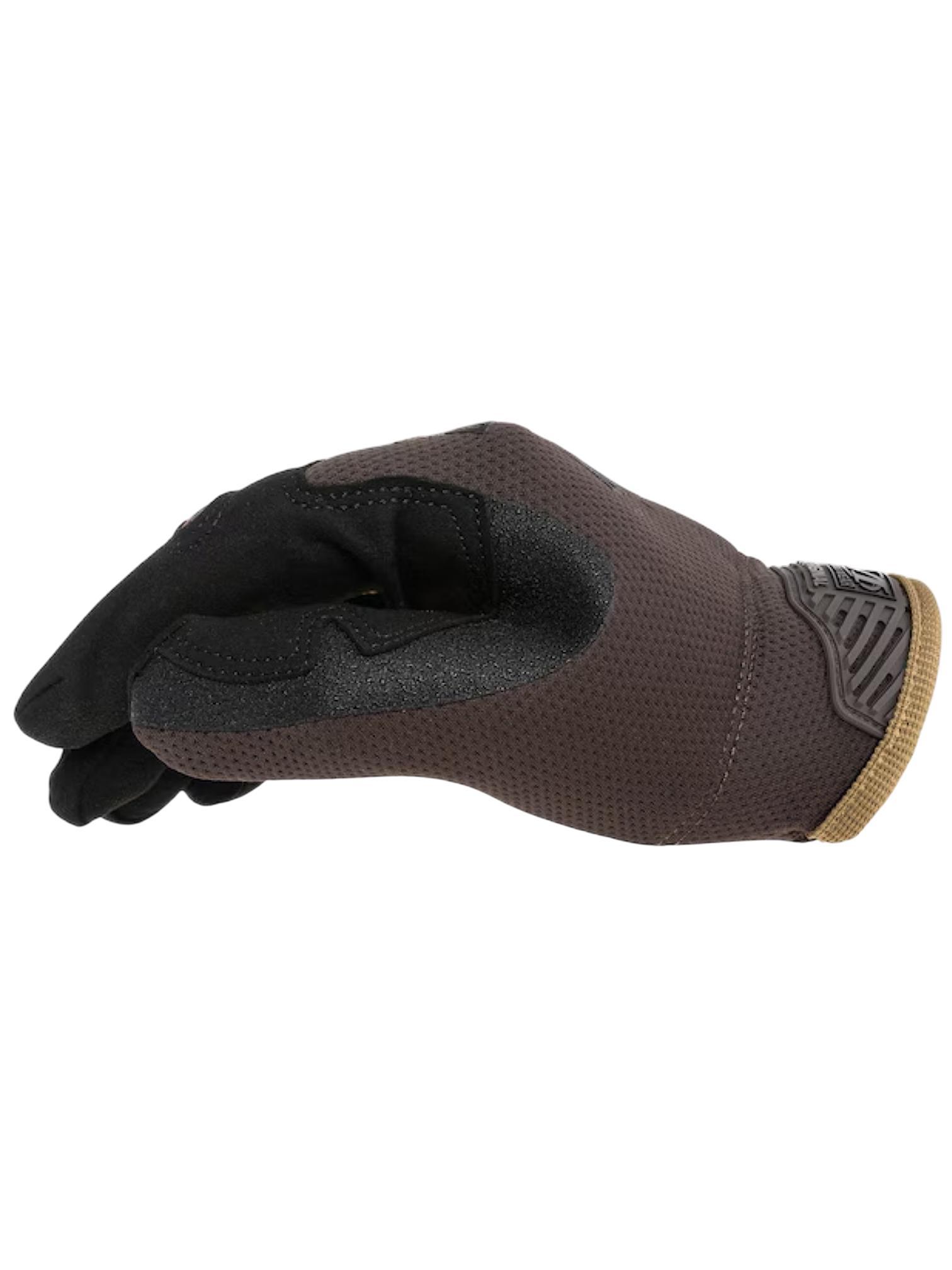 Ладонь изготовлена из износостойкого синтетического материала для уверенного контроля инструмента или оружия. Можно пользоваться смартфоном или планшетом, не снимая перчатки - пальцы поддерживают работу с сенсорными экранами. Зона большого и указательного пальцев усилена дополнительным слоем для долговечности.