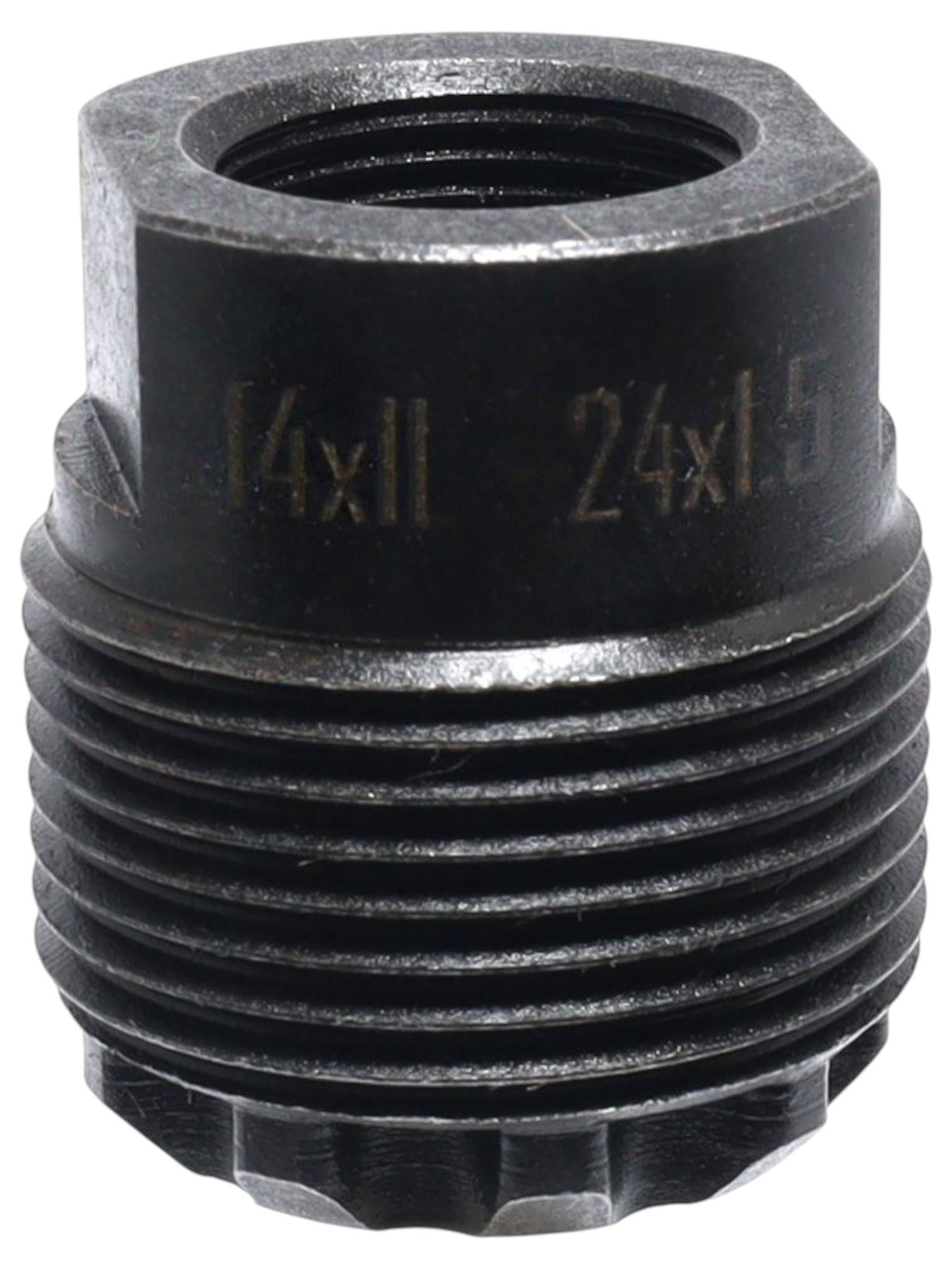 СтальПереходник с резьбы М14х1 левая на М24х1,5, предназначен для монтажа на ствол дульных устройств более поздних моделей.