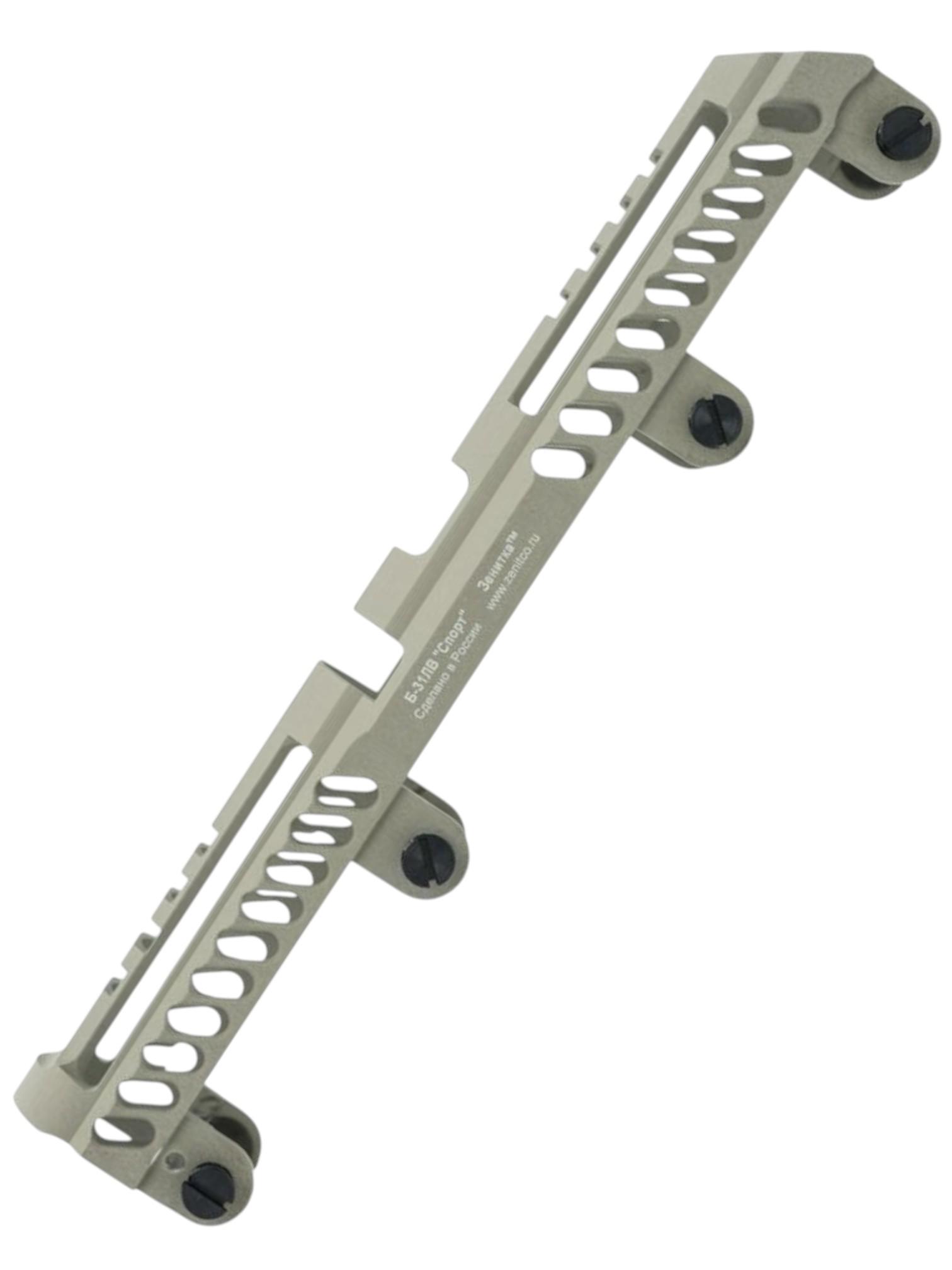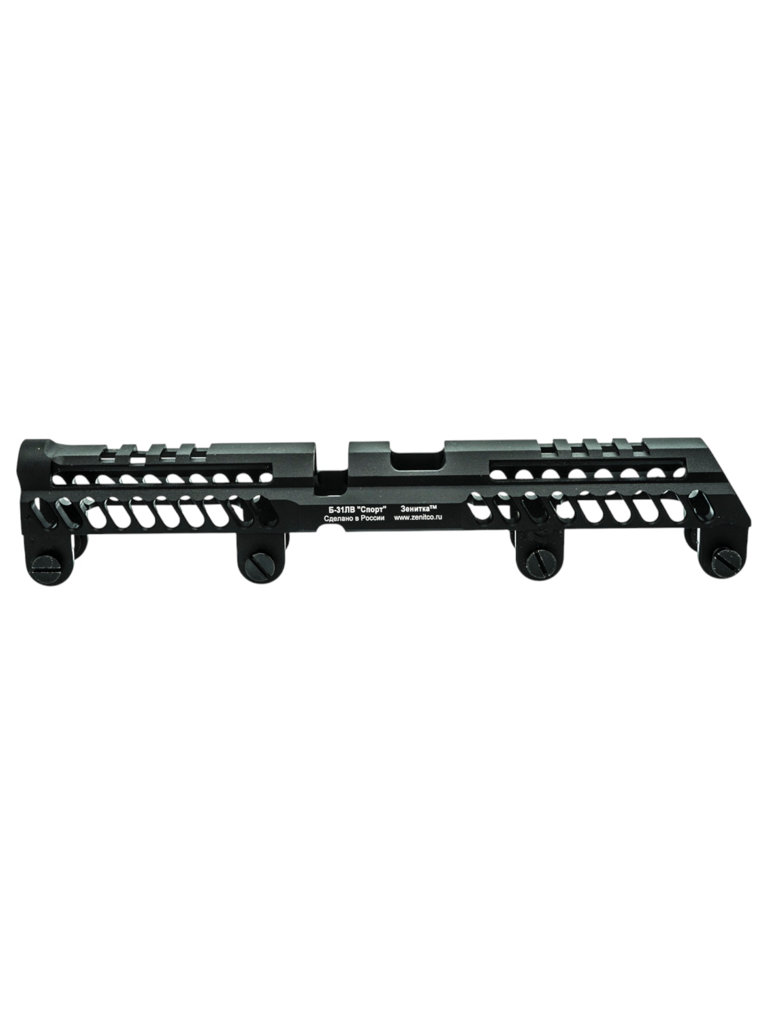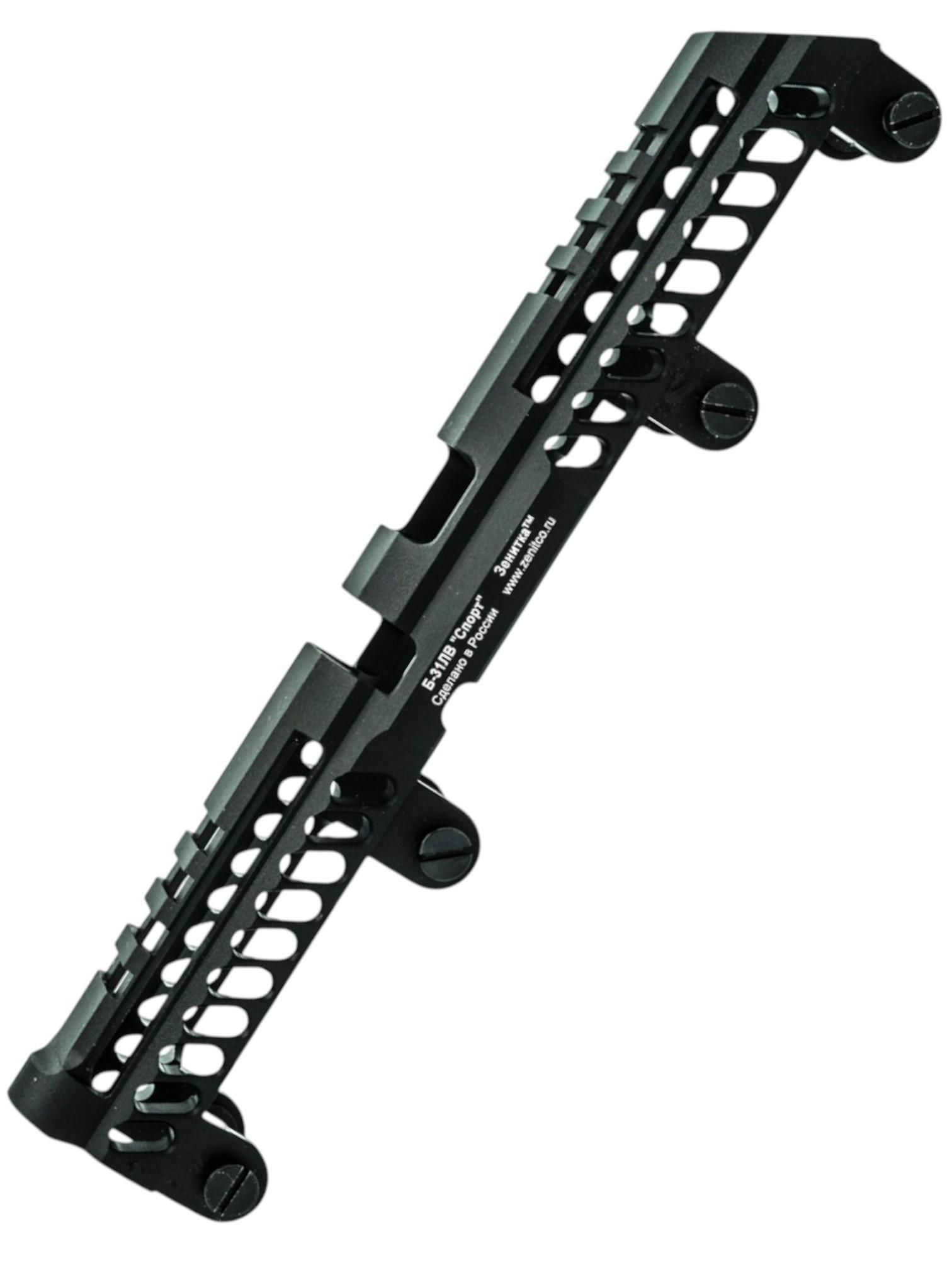 - Для Сайга-9 в комплекте "Спорт-2": крепится на цевьё Б-21Л и ДЛ-2 с помощью восьми винтов, формирует планку Пикатинни над стволом и газовой камерой карабина.