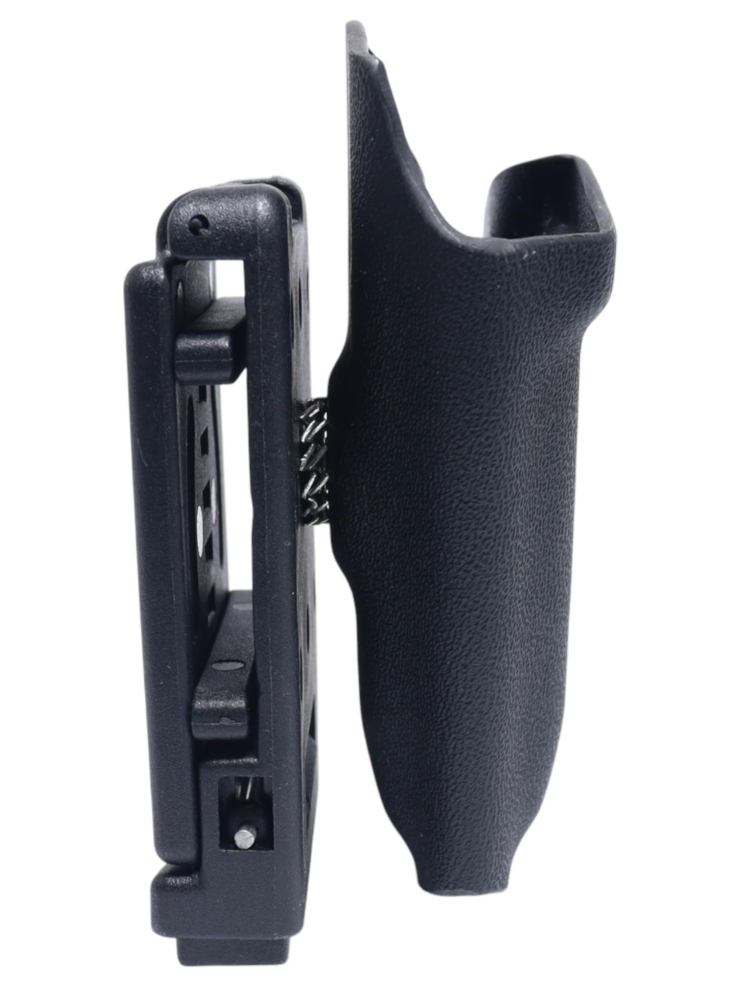 - Закрытая форма держит магазин в стакане и не мешает быстрой перезарядке.