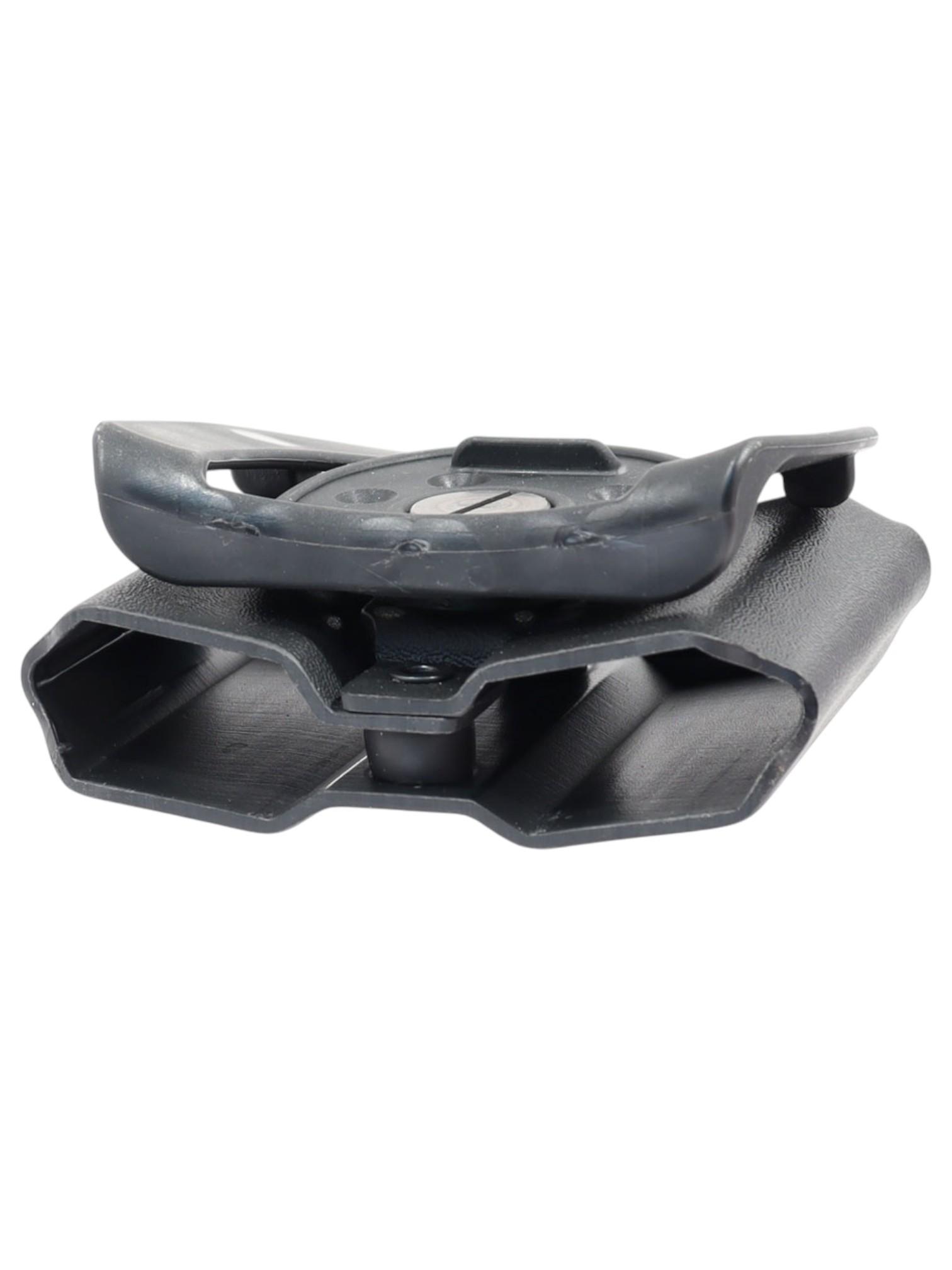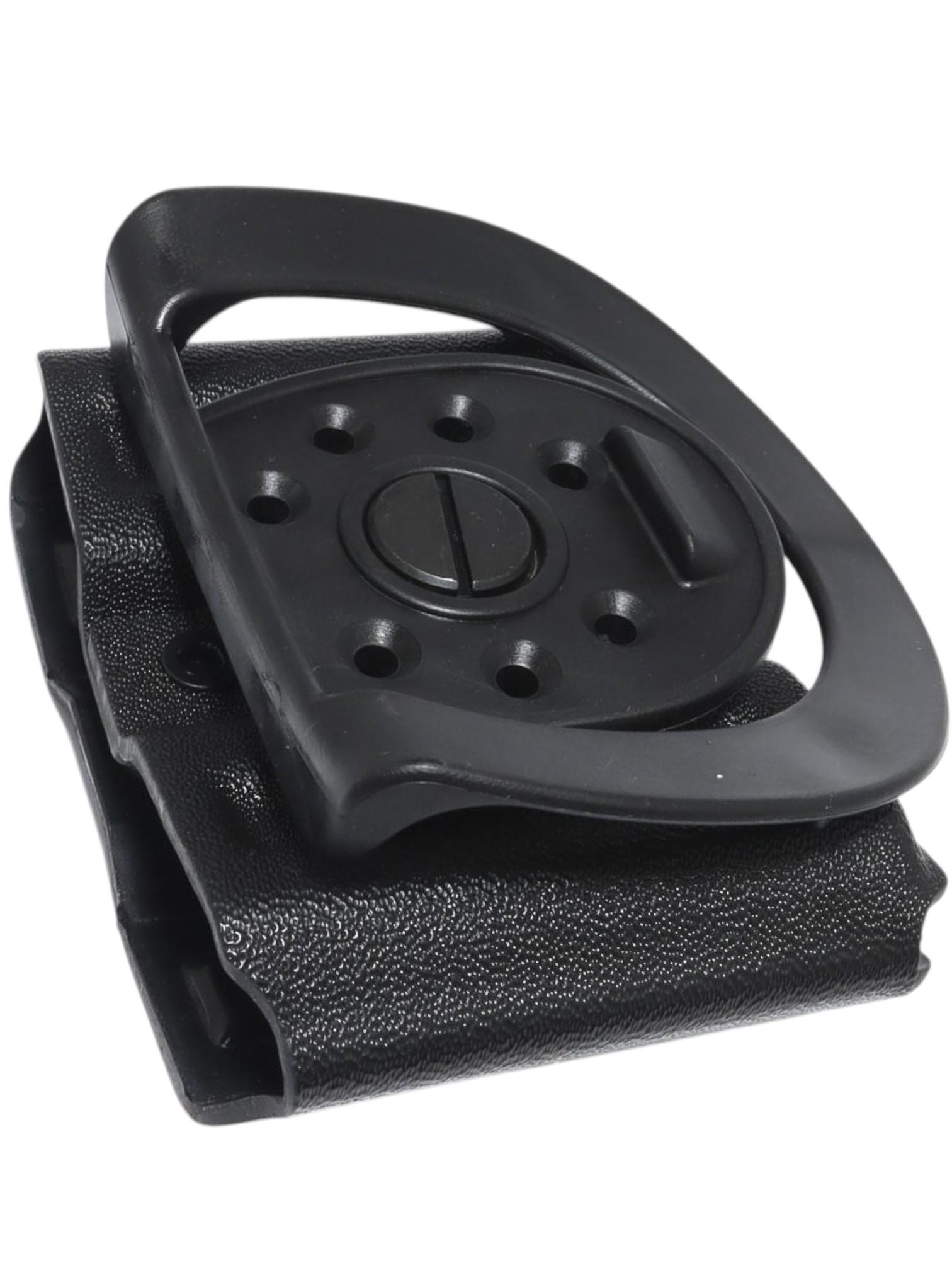 Выполнен из высокопрочного пластика. Конструкция крепления на ремень обеспечивает плотную фиксацию паучера на ремне и возможность регулировки угла наклона на любой угол, в пределах 360 градусов. Так же крепление на ремень обеспечивает быстрое снятие и одевание паучера на ремень без снятия ремня. Магазин удерживается в паучере за счет его конструкции, сила сжатия регулируется винтами.