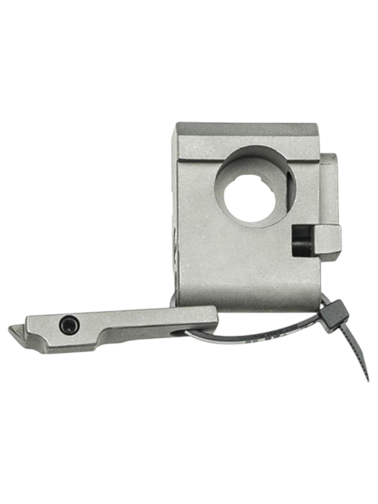 - При помощи молотка и выколотки выбить штатную ось из петли штатного механизма сложения. Ось выбивается снизу вверх с сторону крышки ствольной коробки в соответствии со штатной инструкцией по полной разборке оружия.