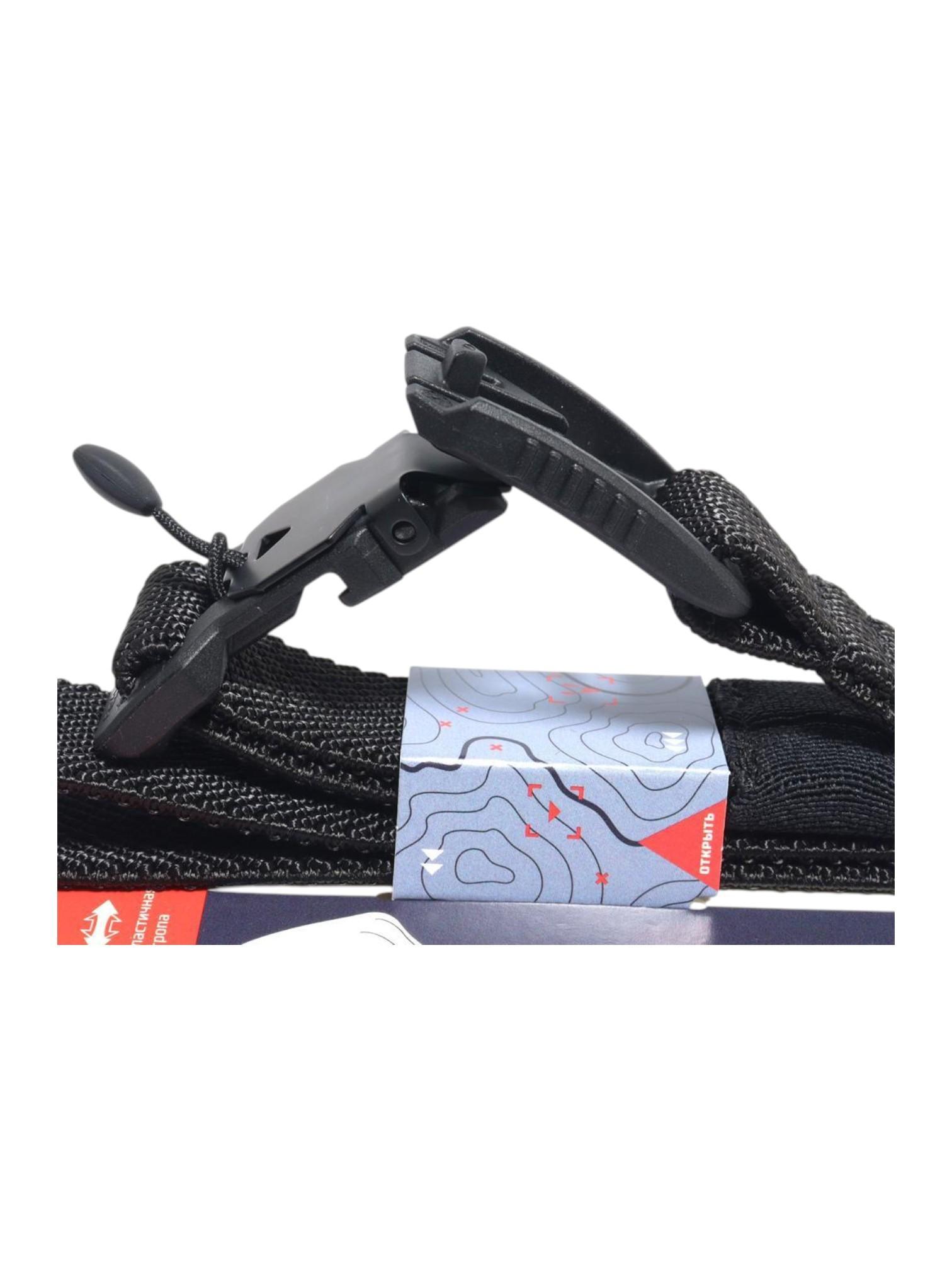 Пряжка изготовлена из морозостойкого полимера и фиксируется не магнитами, а полимерными зубцами, выдерживающими нагрузку на разрыв до 70 кг.